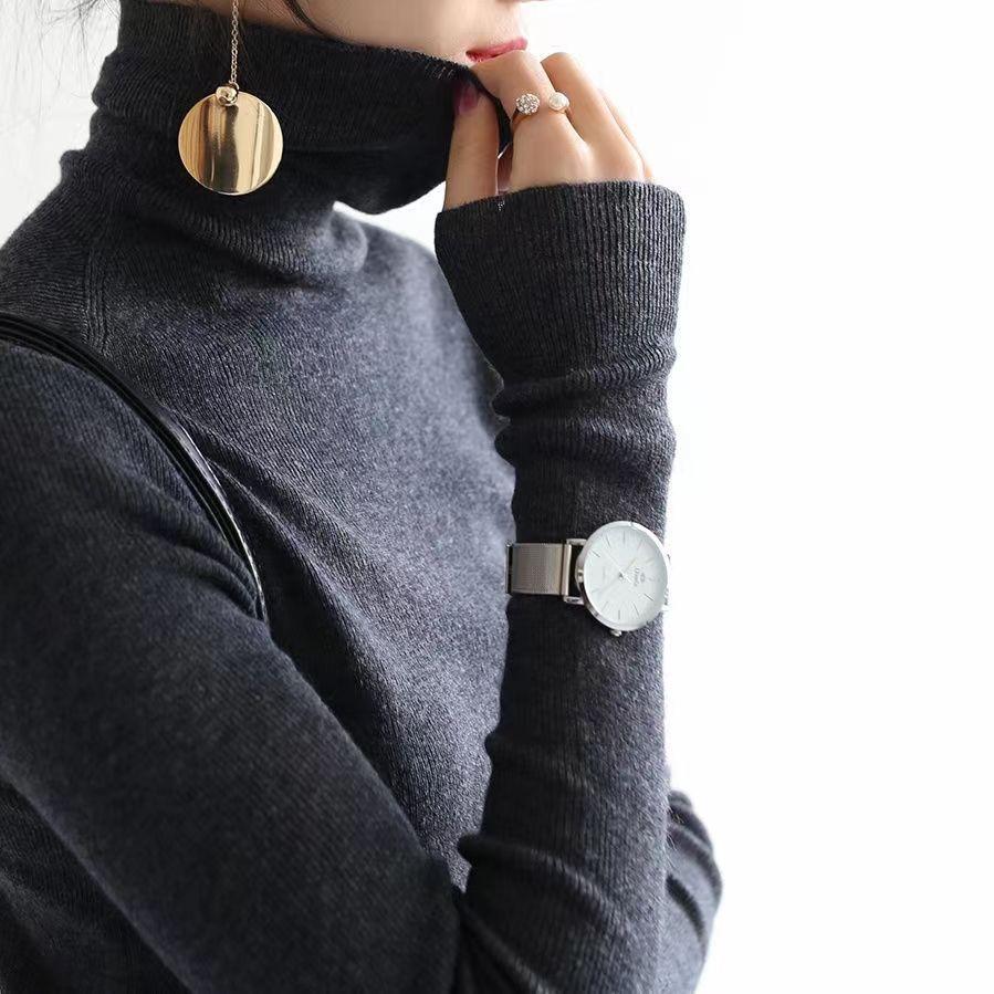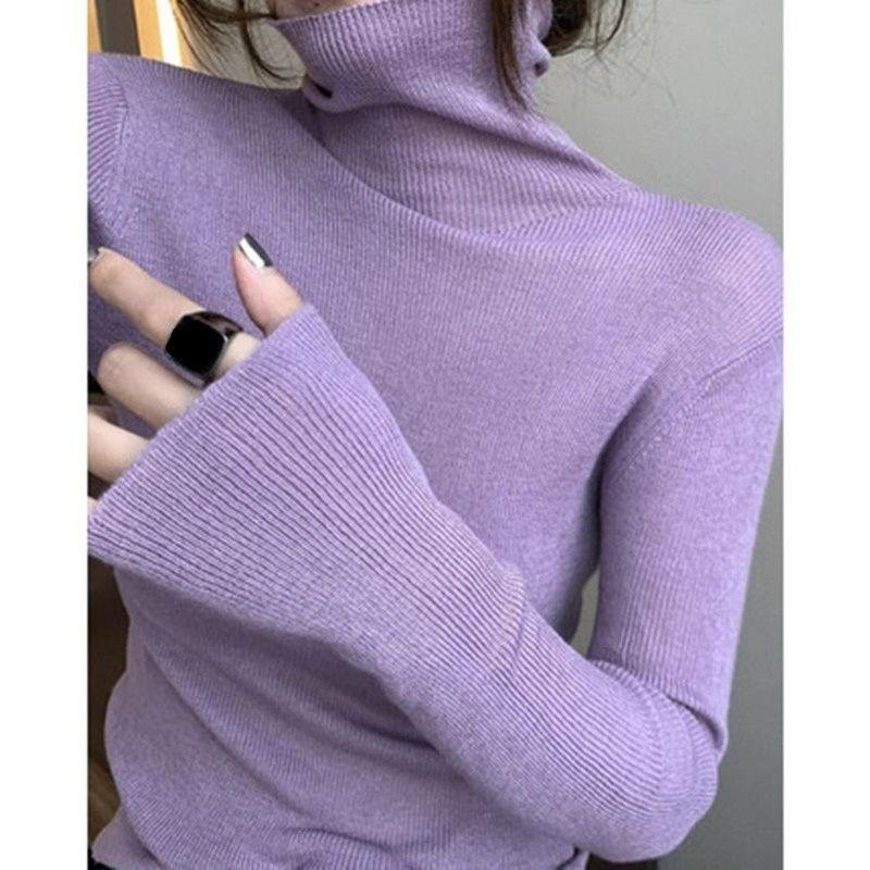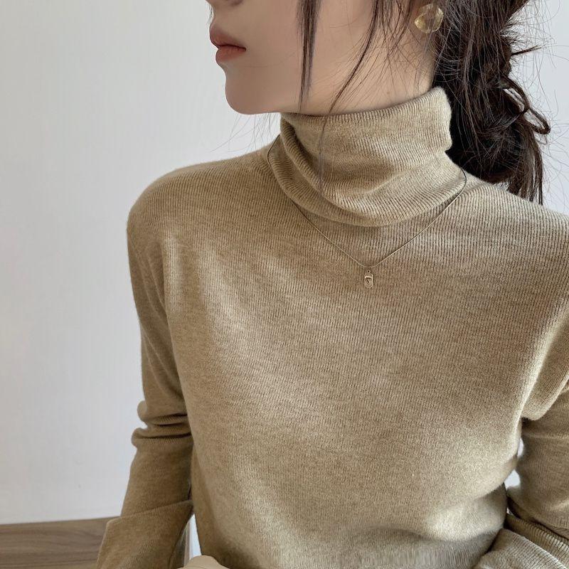 Suéter de punto de ochos de avena con cuello alto, ropa exterior nueva, suéter de punto, top, otoño e invierno, color sólido, para llevar debajo, suéter ajustado para mujer