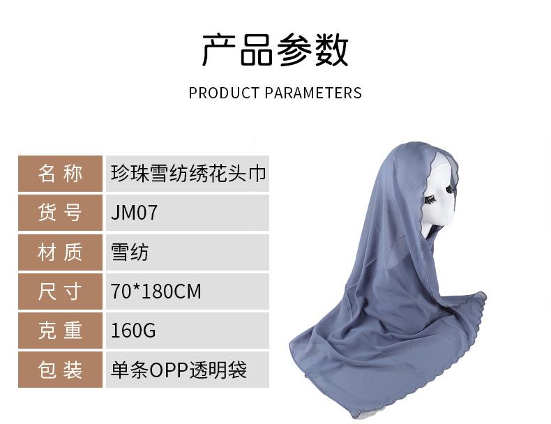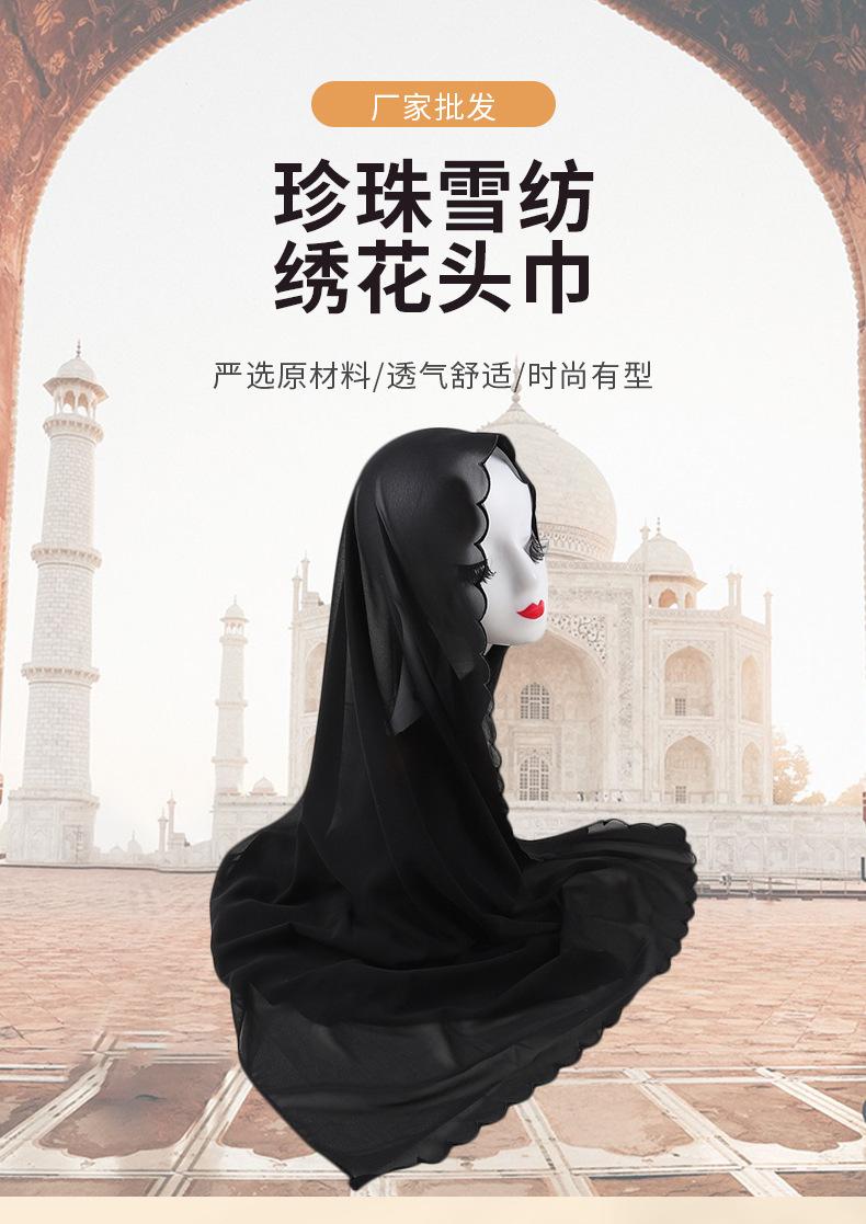 Pañuelo de Cabeza de Perlas de Chifón Bordado de Nuevo Estilo Transfronterizo Bufanda de Encaje Malasio Bordado
