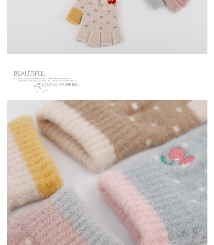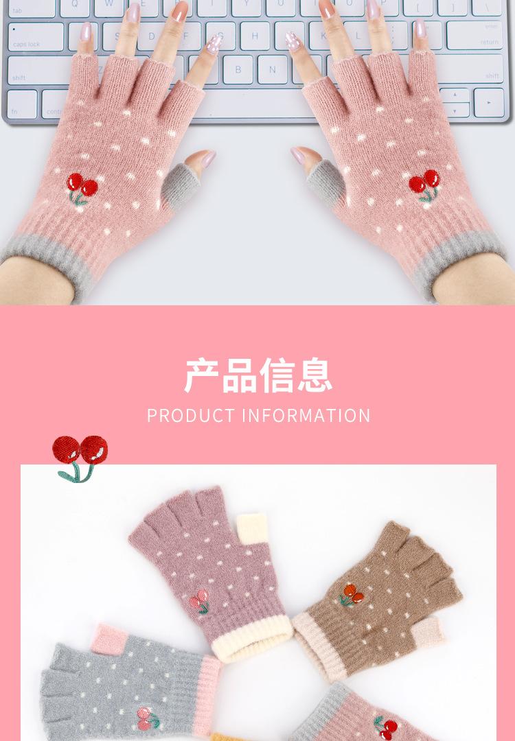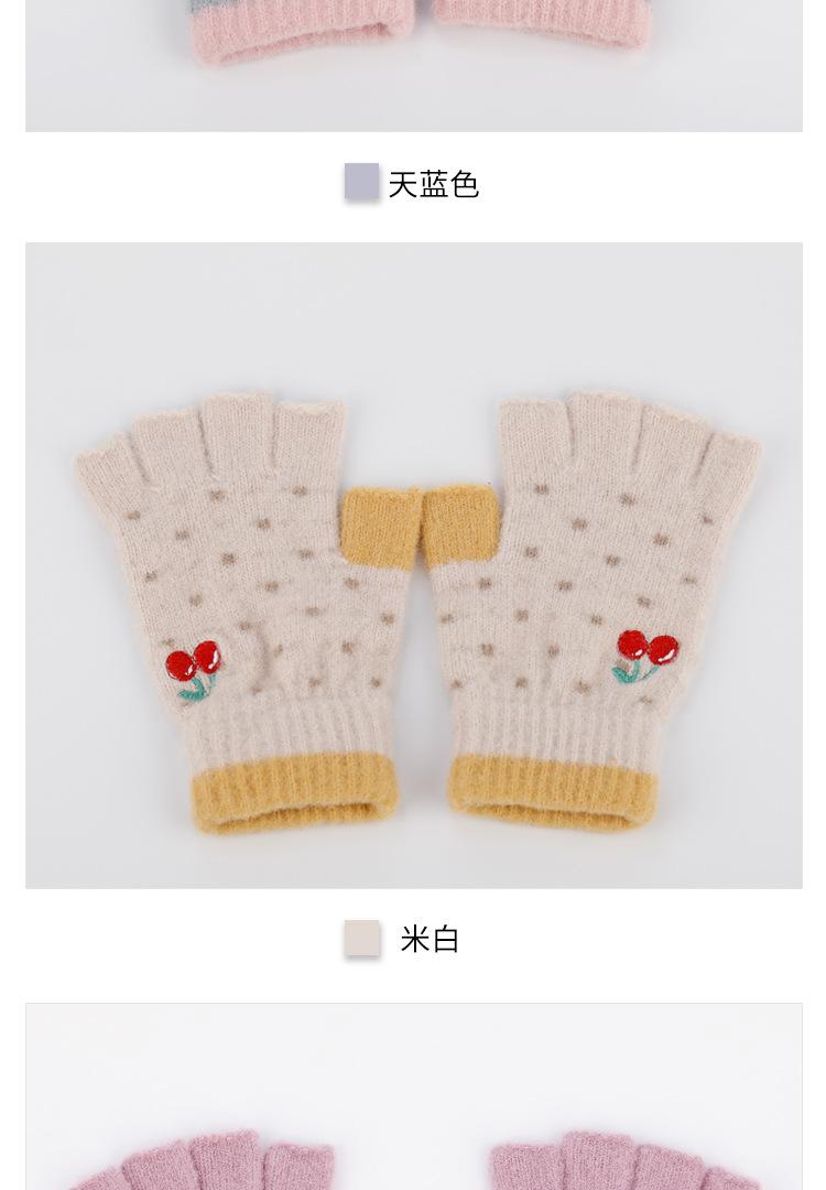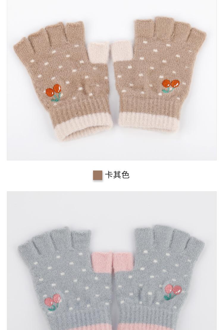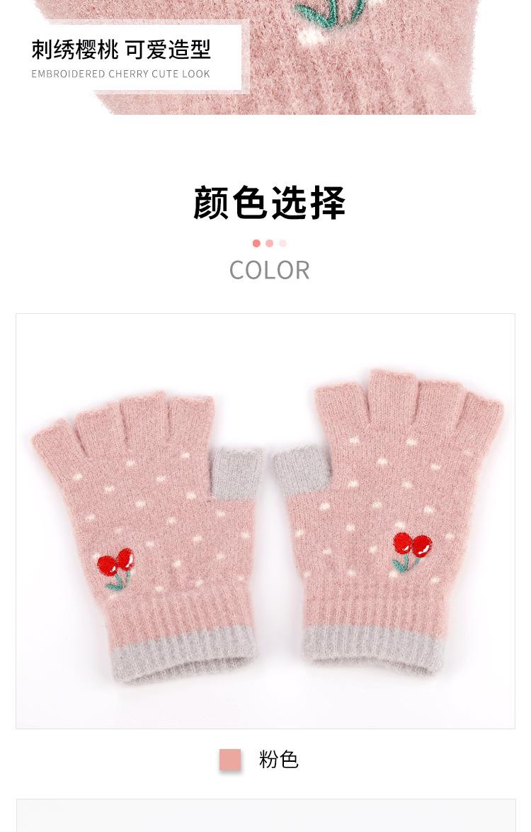 Nuevos Guantes de Medio Dedo para Mujer Invierno a Prueba de Frío y Cálidos sin Dedos Bordado de Cereza de Dibujos Animados Cálidos para Trabajo Escritura