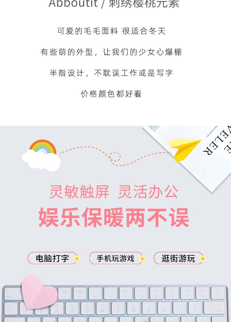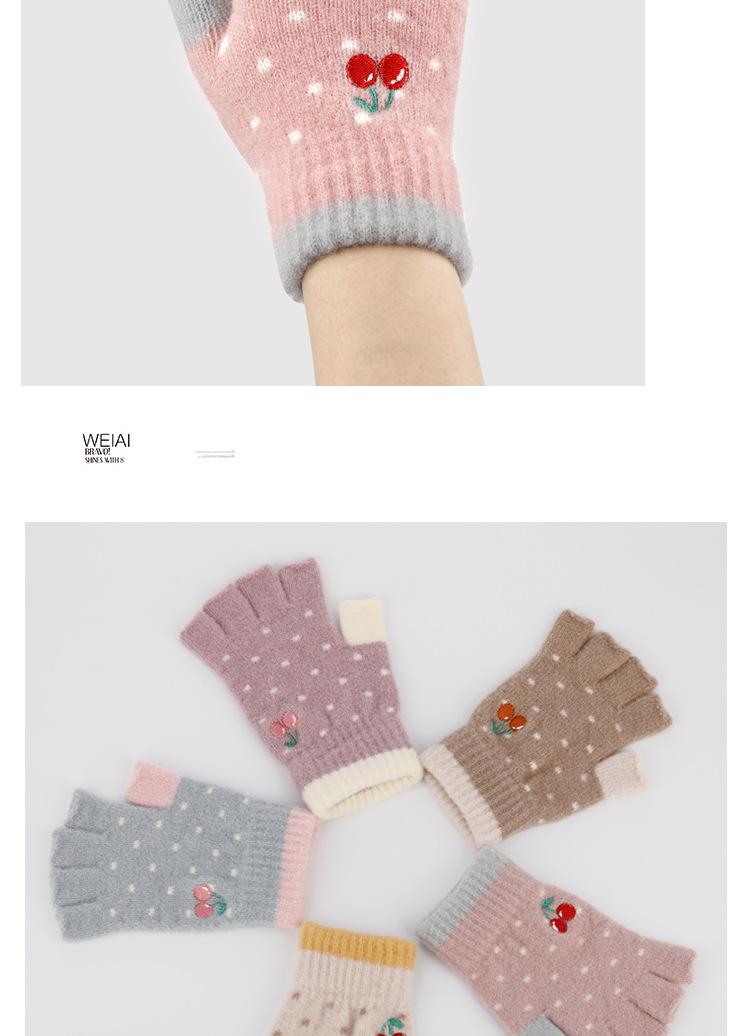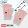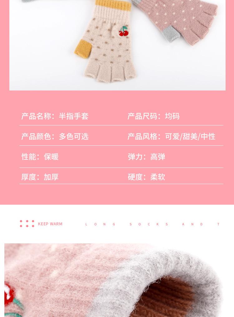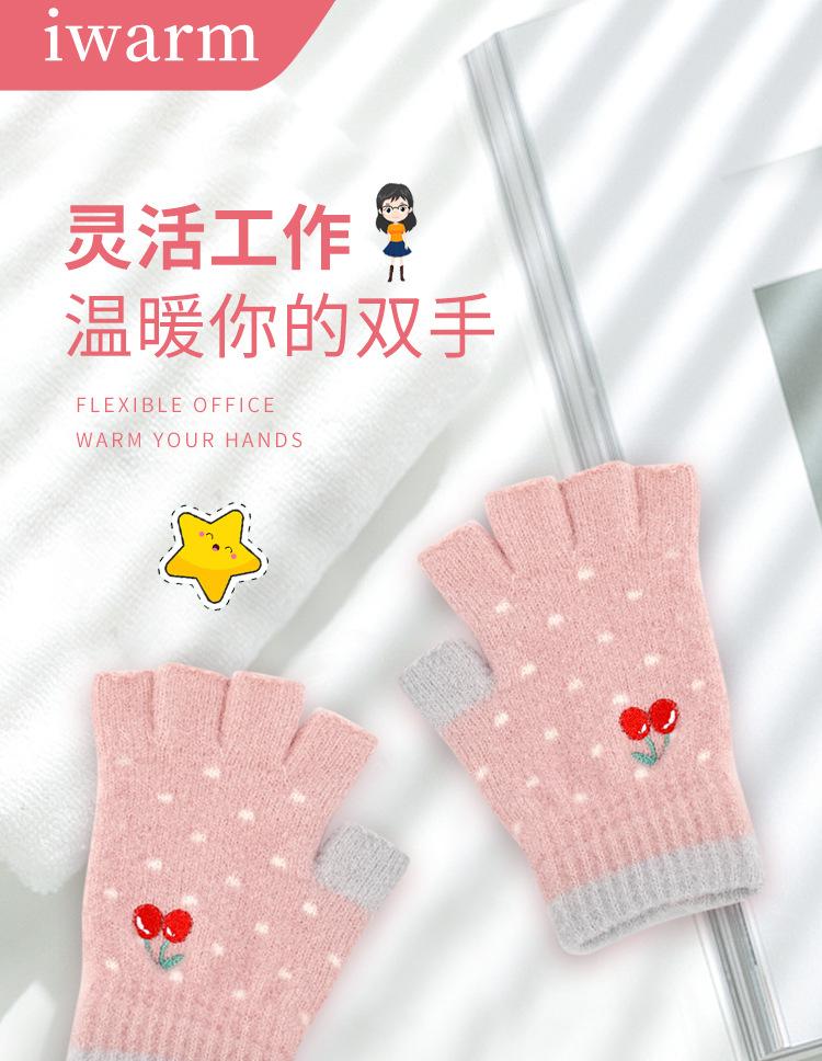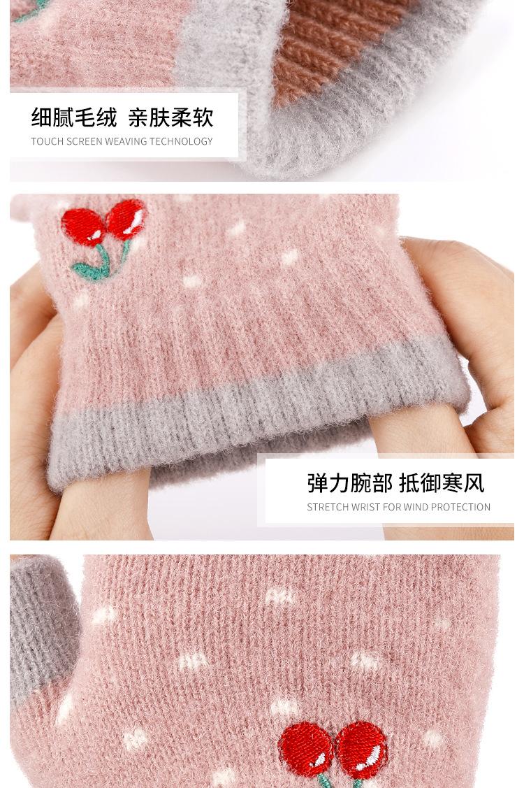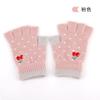 Nuevos Guantes de Medio Dedo para Mujer Invierno a Prueba de Frío y Cálidos sin Dedos Bordado de Cereza de Dibujos Animados Cálidos para Trabajo Escritura