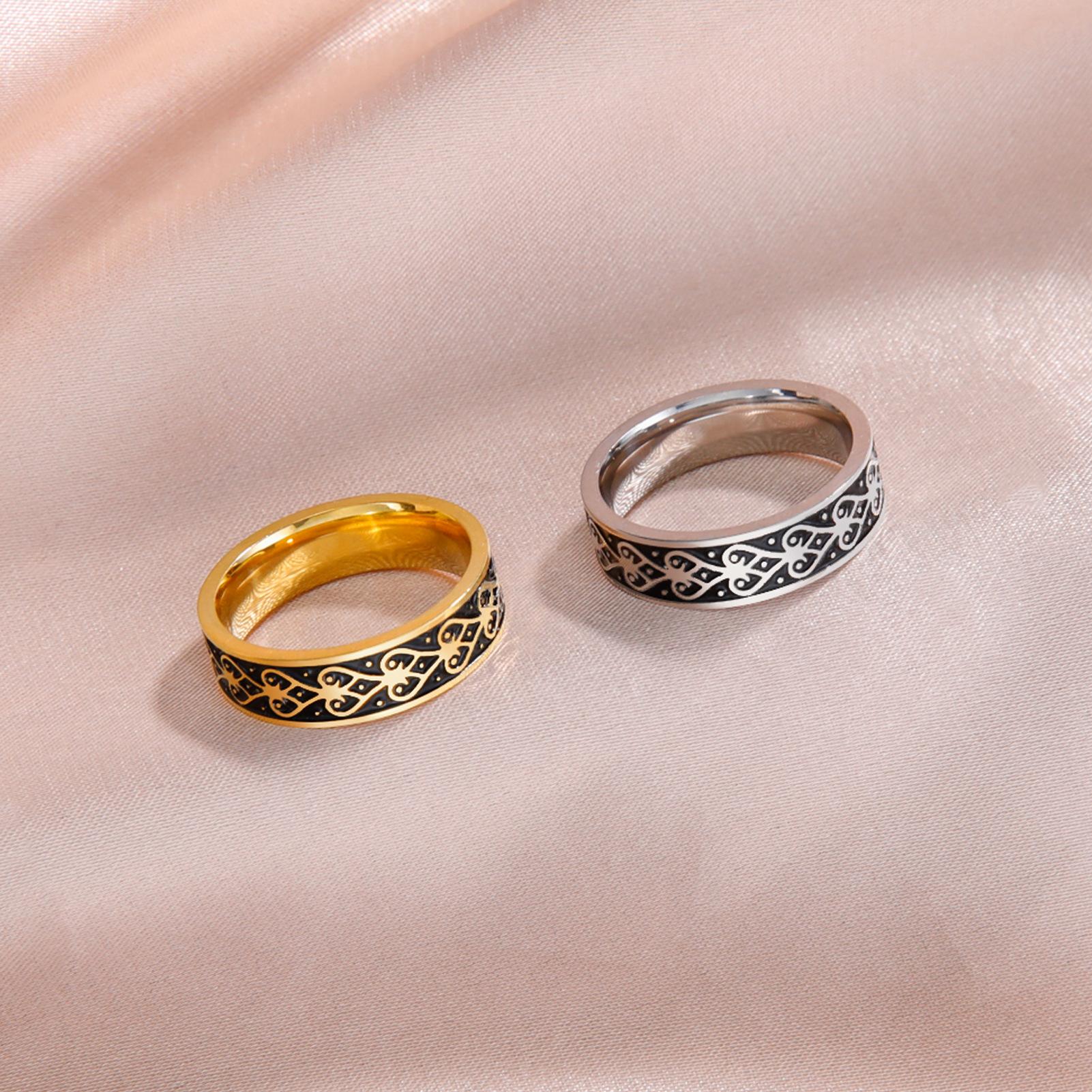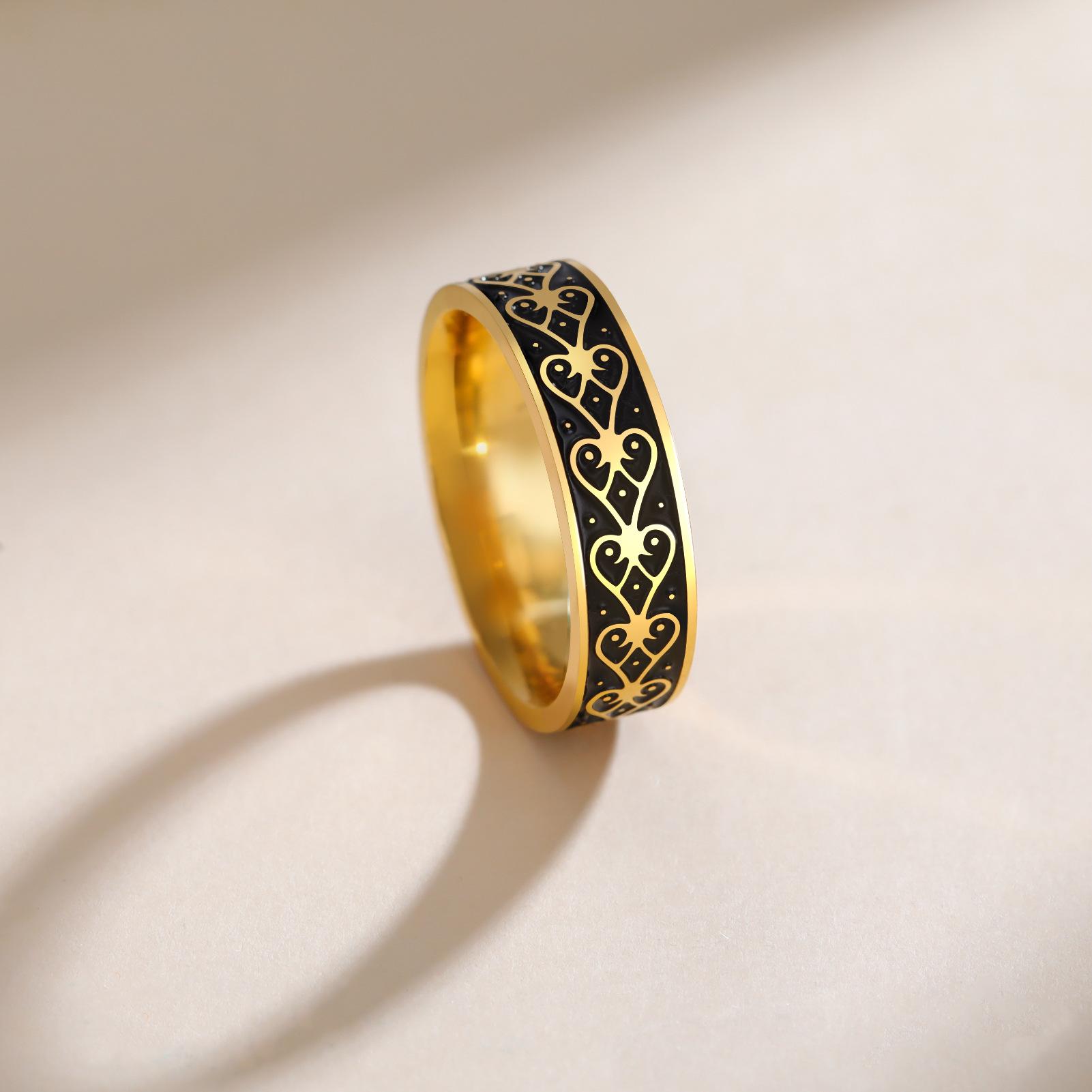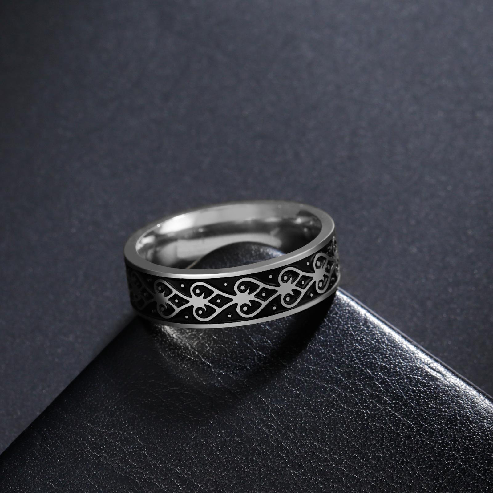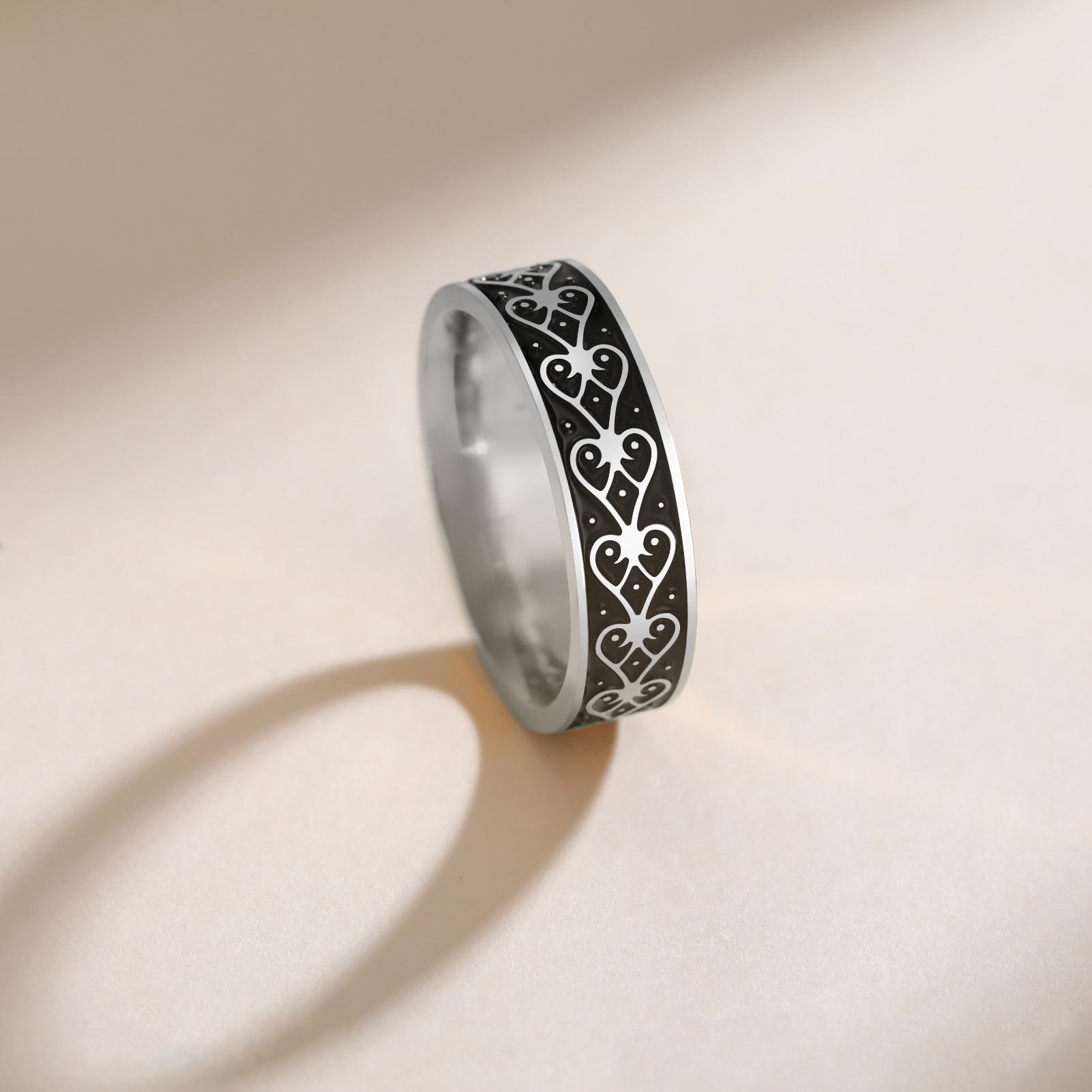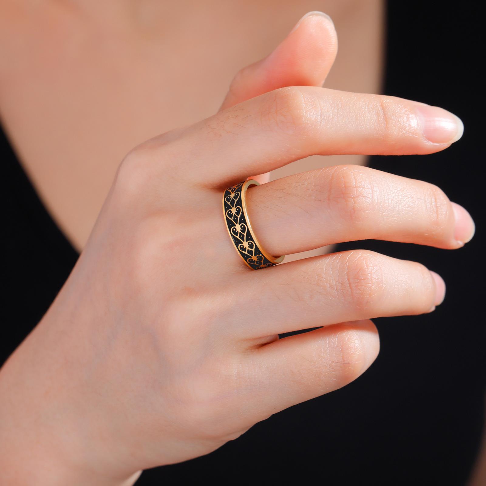 Anillo de Acero Inoxidable Corazón Negro de 6 mm de Ancho Serie al por Mayor de Fabricante Exclusivo de Comercio Electrónico Versátil Más Vendido Europeo y Americano