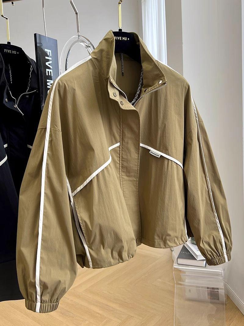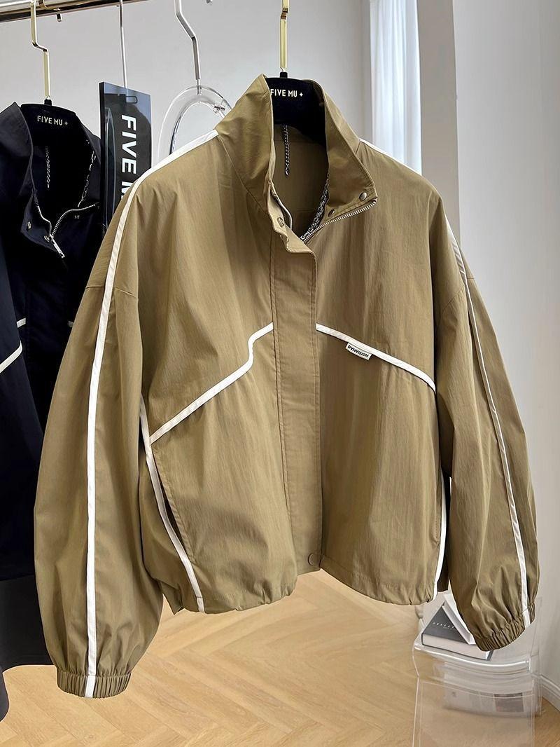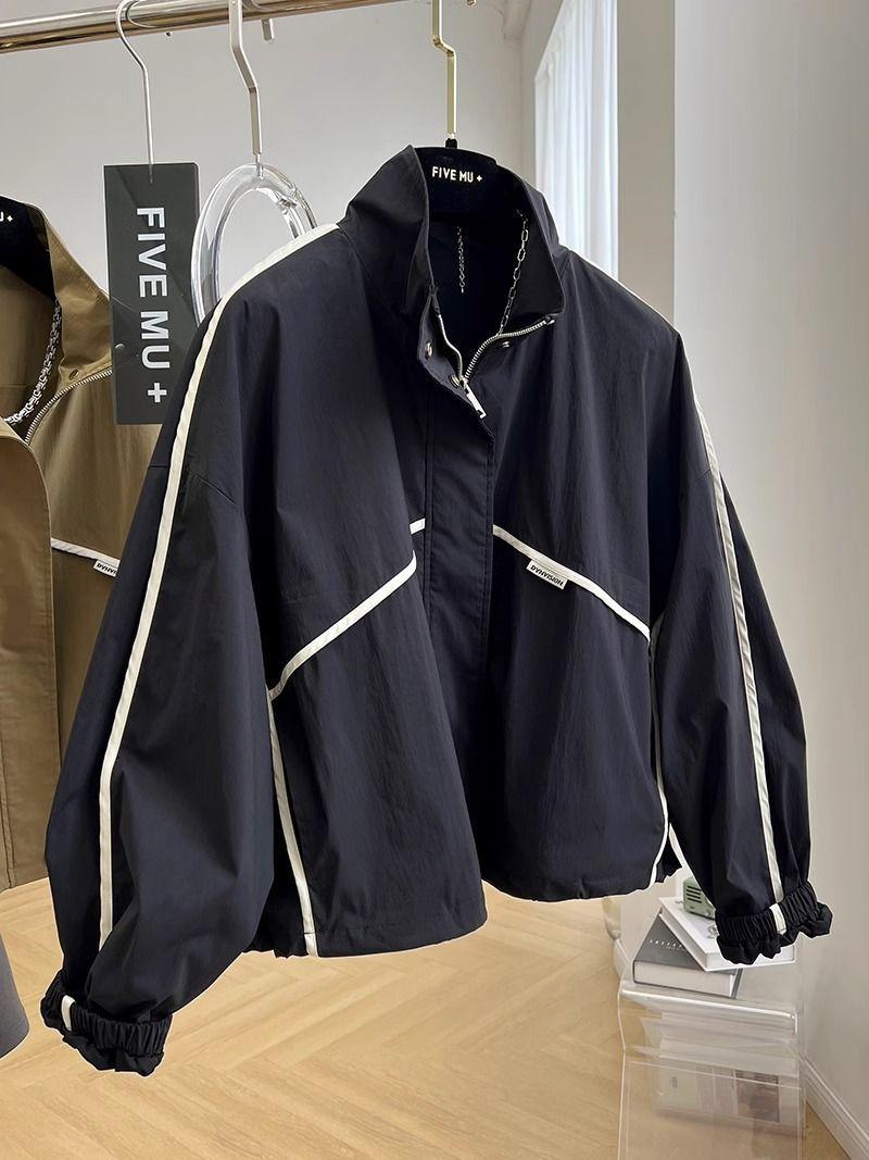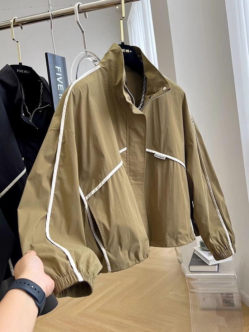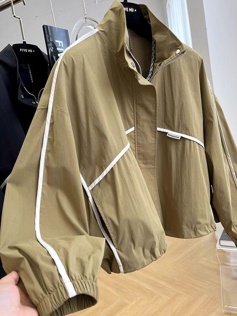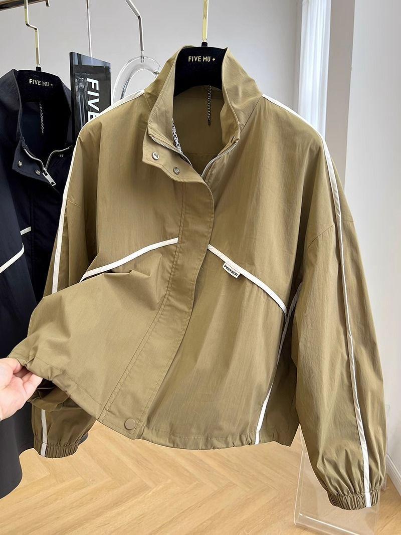 Abrigo corto elegante y moderno con cuello alto para mujer, chaqueta cortavientos fina de primavera y otoño.