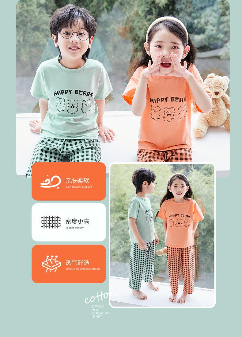 Verano Nuevo Pijama Infantil Manga Corta Algodón Delgado Grande Infantil Dibujos Animados Casual Traje para el Hogar para Niños y Niñas