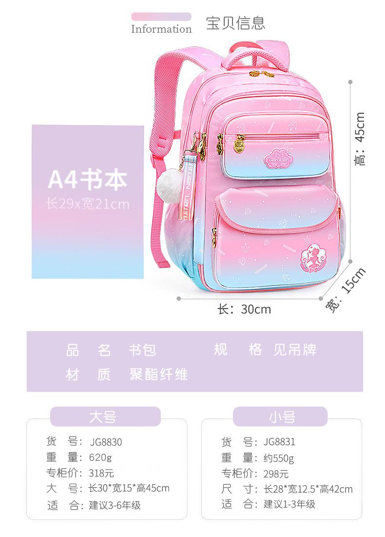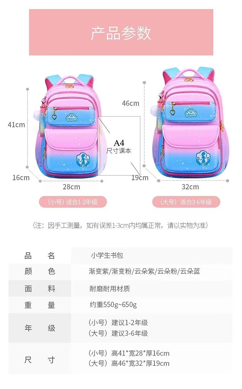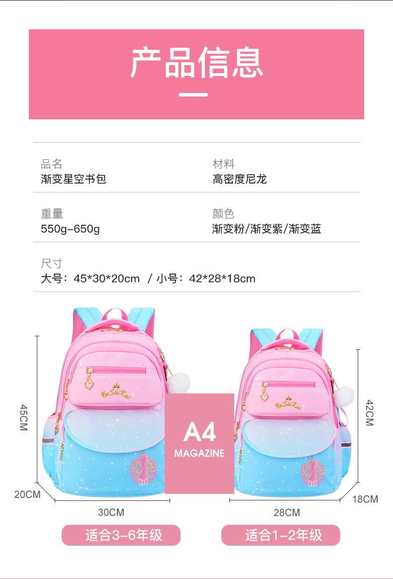 Mochila escolar nueva 2023 para niñas de primaria de primer o tercer grado, súper ligera, con protección para la columna vertebral y reducción de carga.