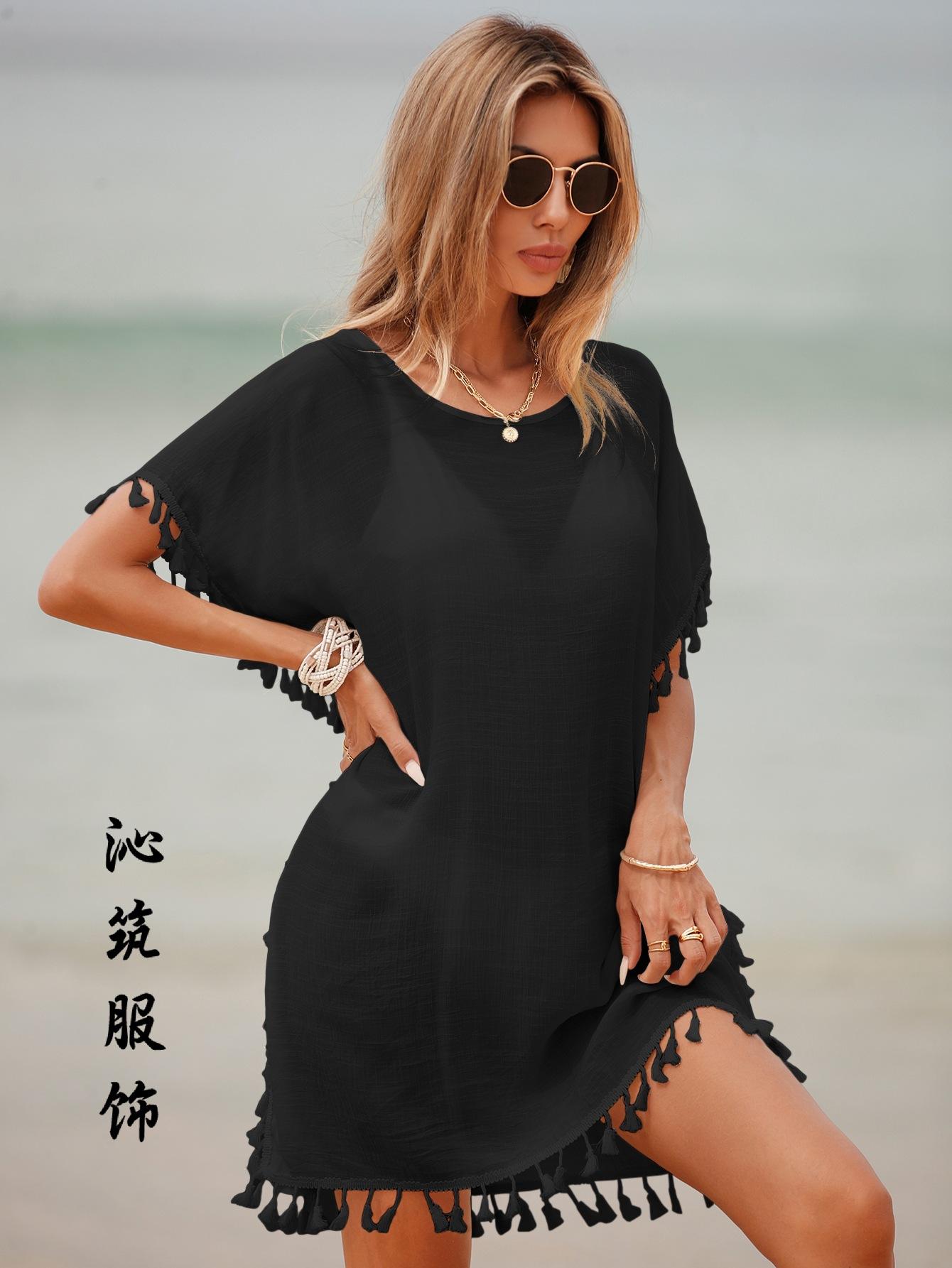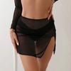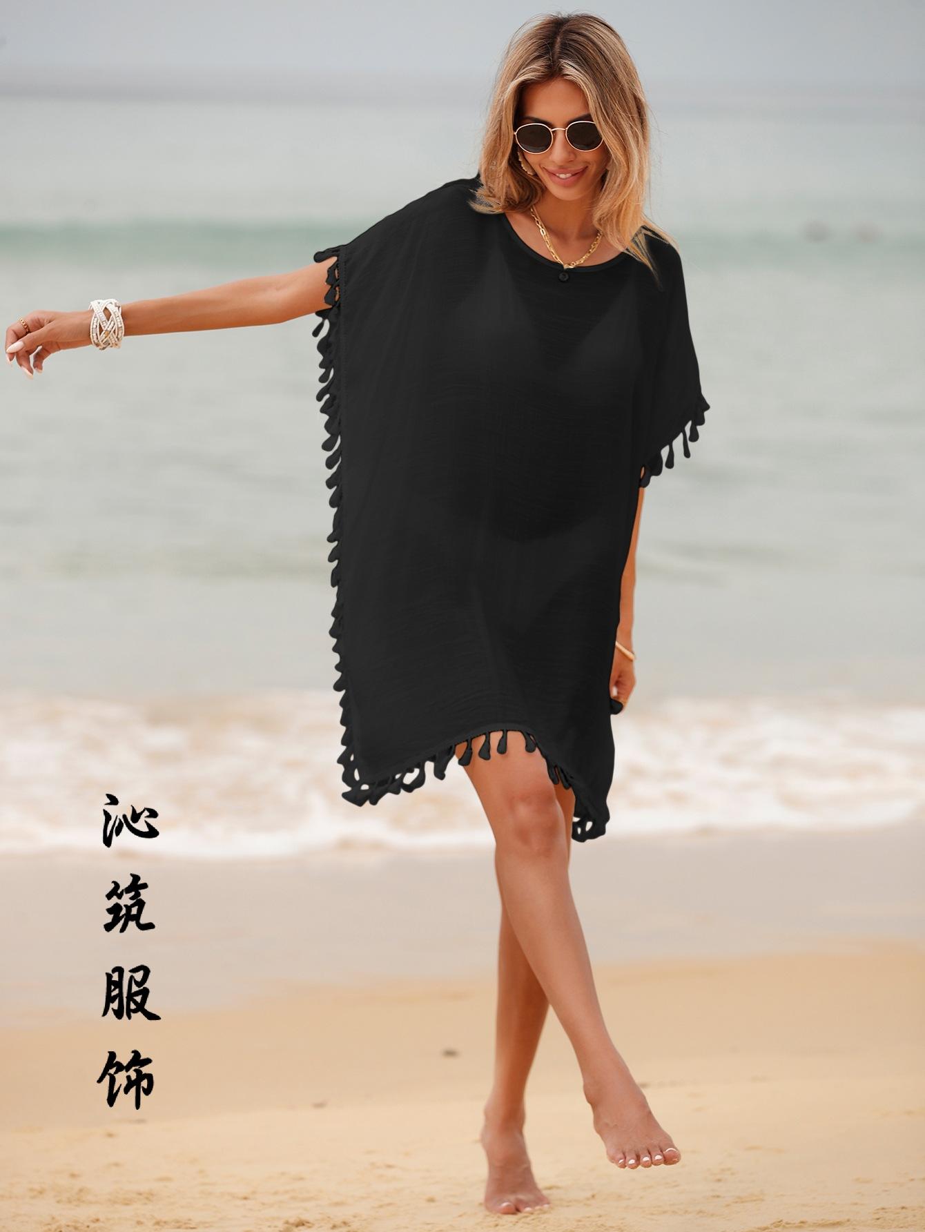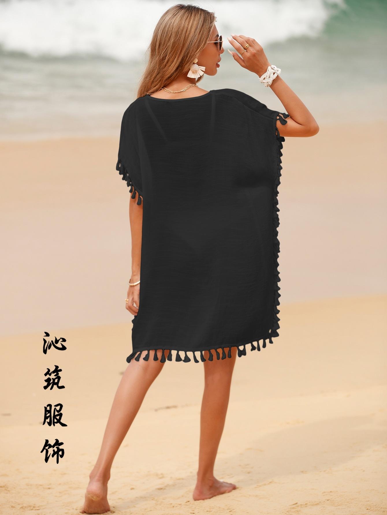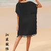 Nuevo Encubrimiento Europeo y Americano de Amazon Vacaciones de Playa Bikini Sexy Camisa de Protección Solar Encubrimiento de Malla con Borlas Negro Falda