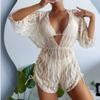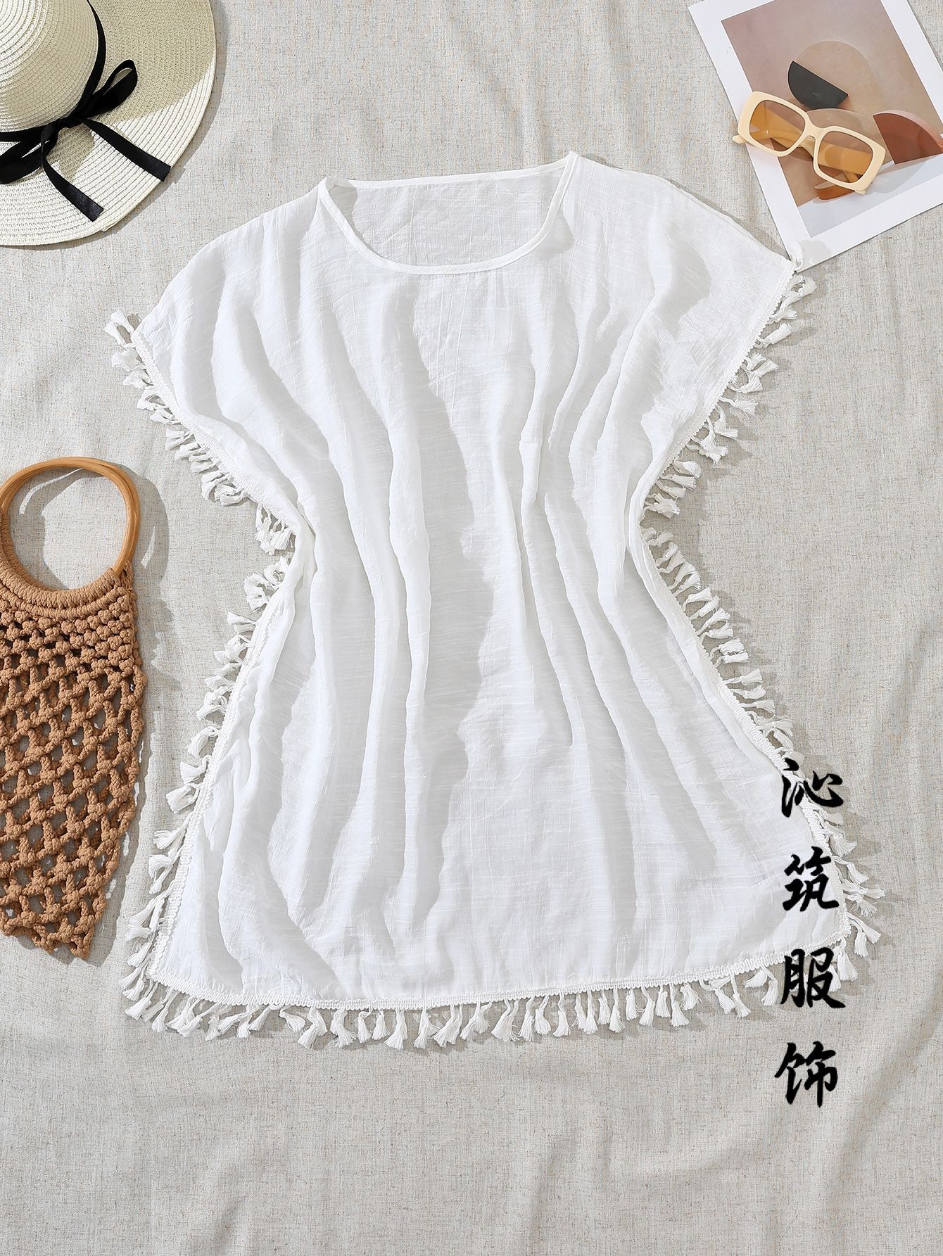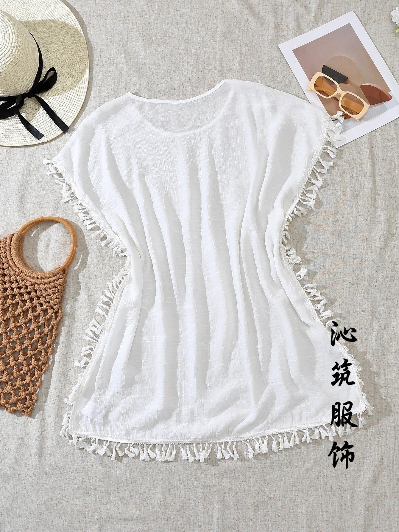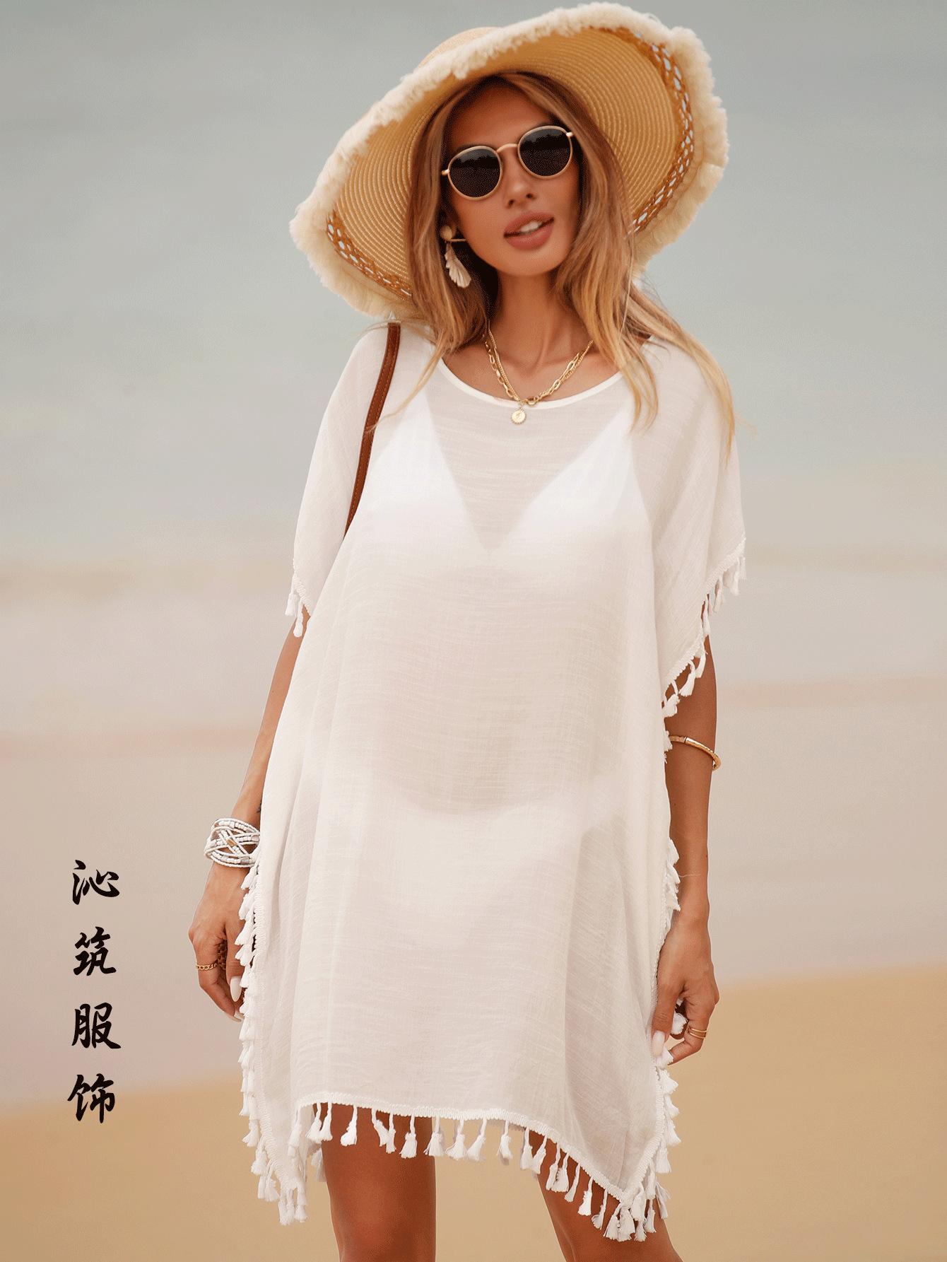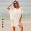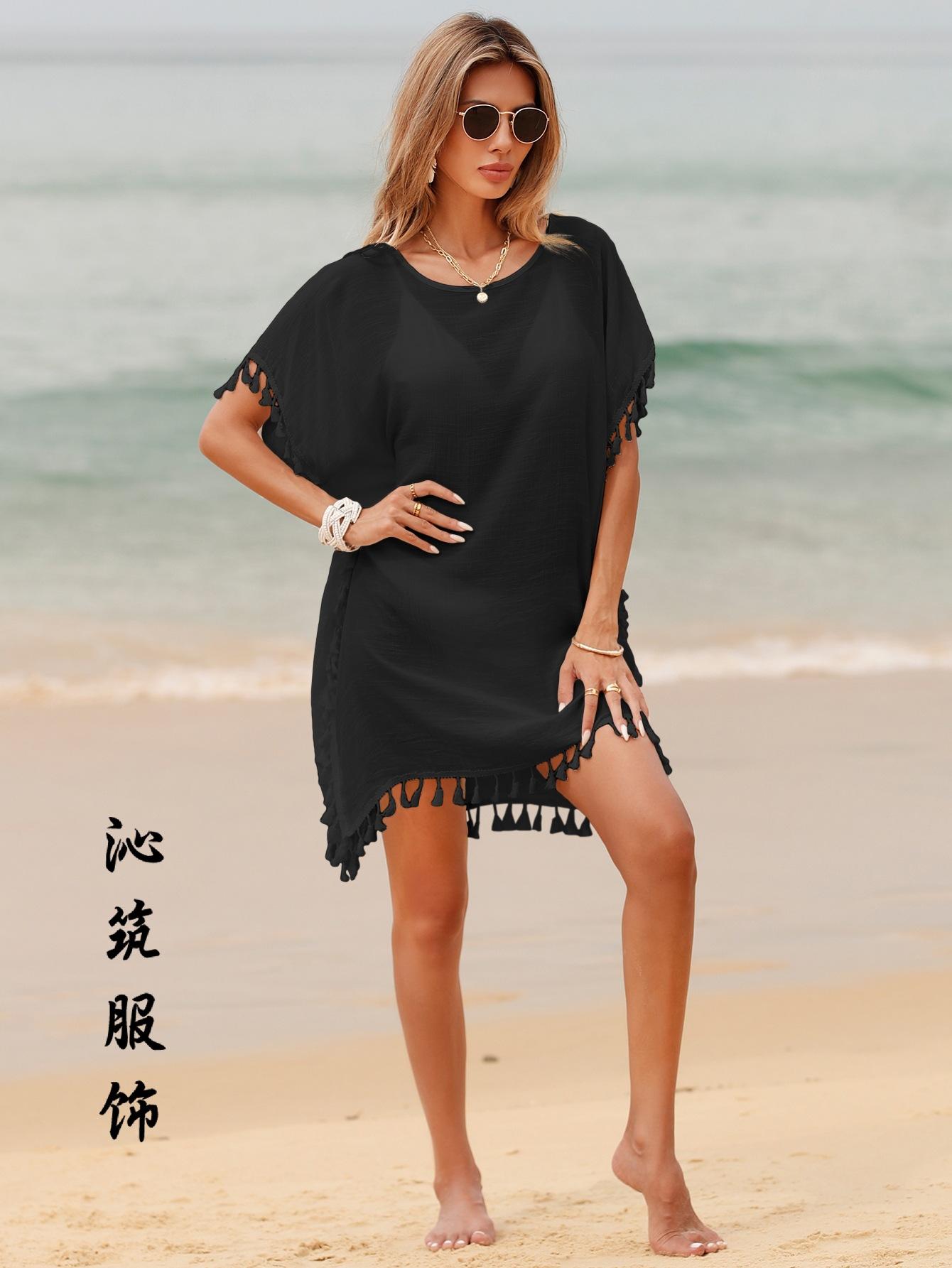 Nuevo Encubrimiento Europeo y Americano de Amazon Vacaciones de Playa Bikini Sexy Camisa de Protección Solar Encubrimiento de Malla con Borlas Negro Falda