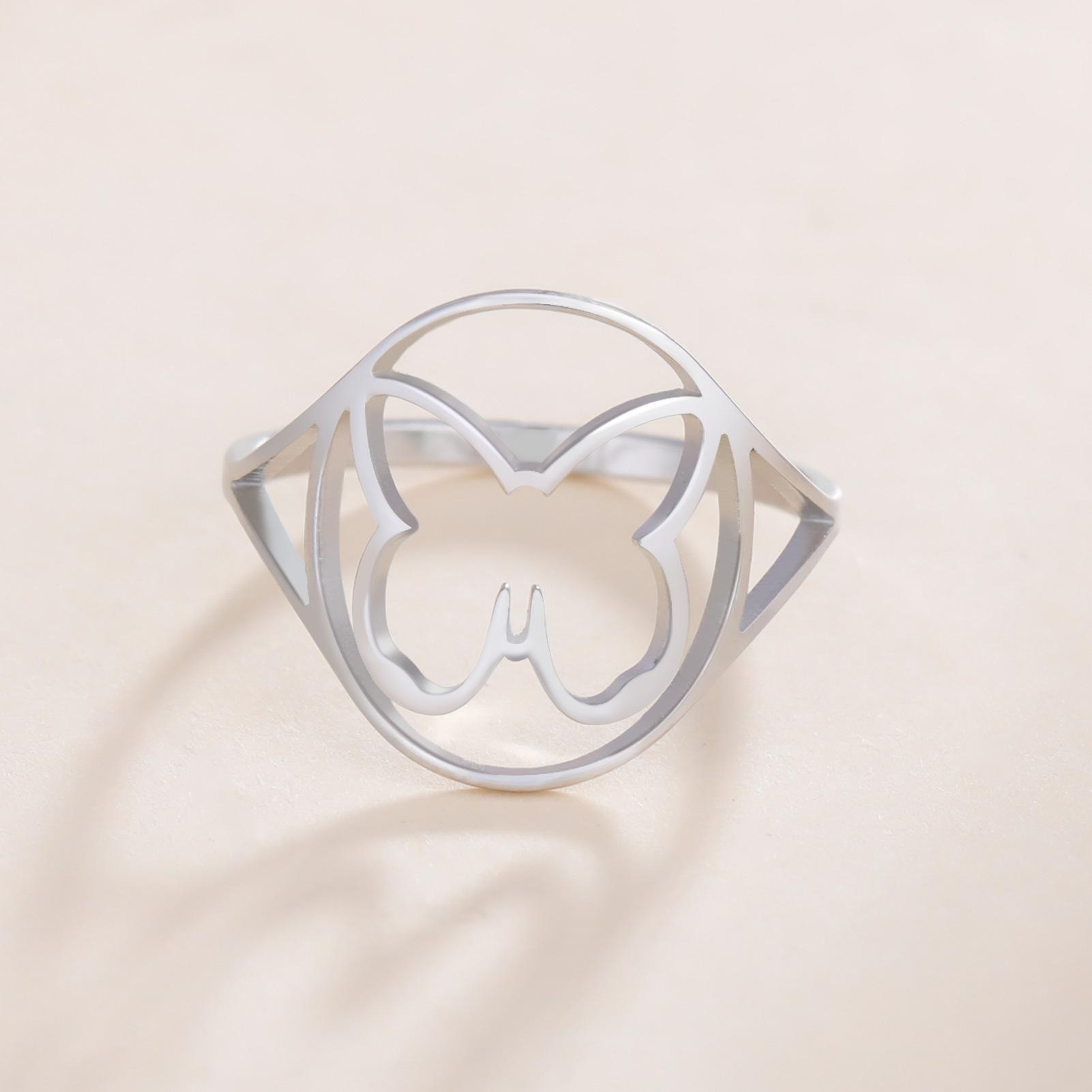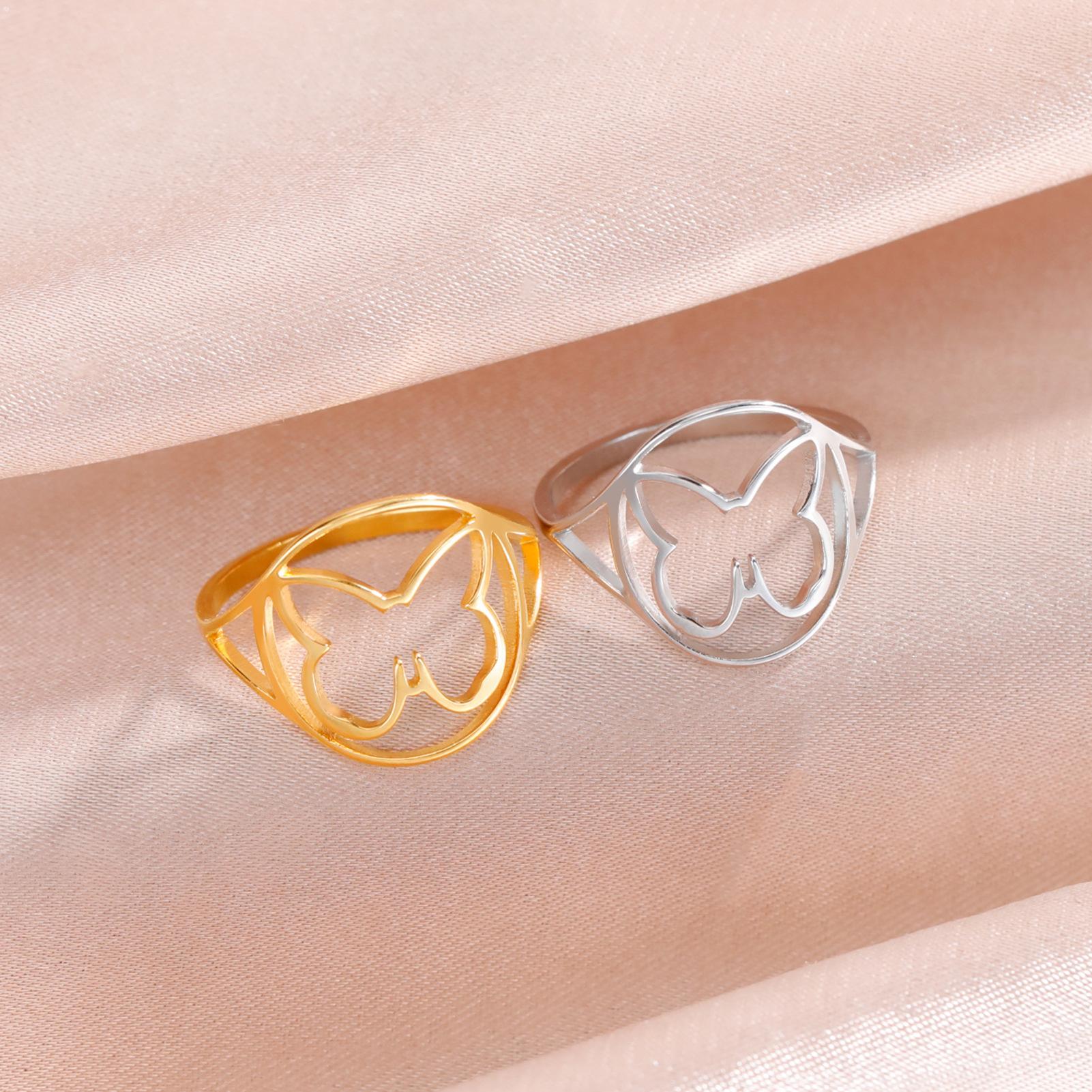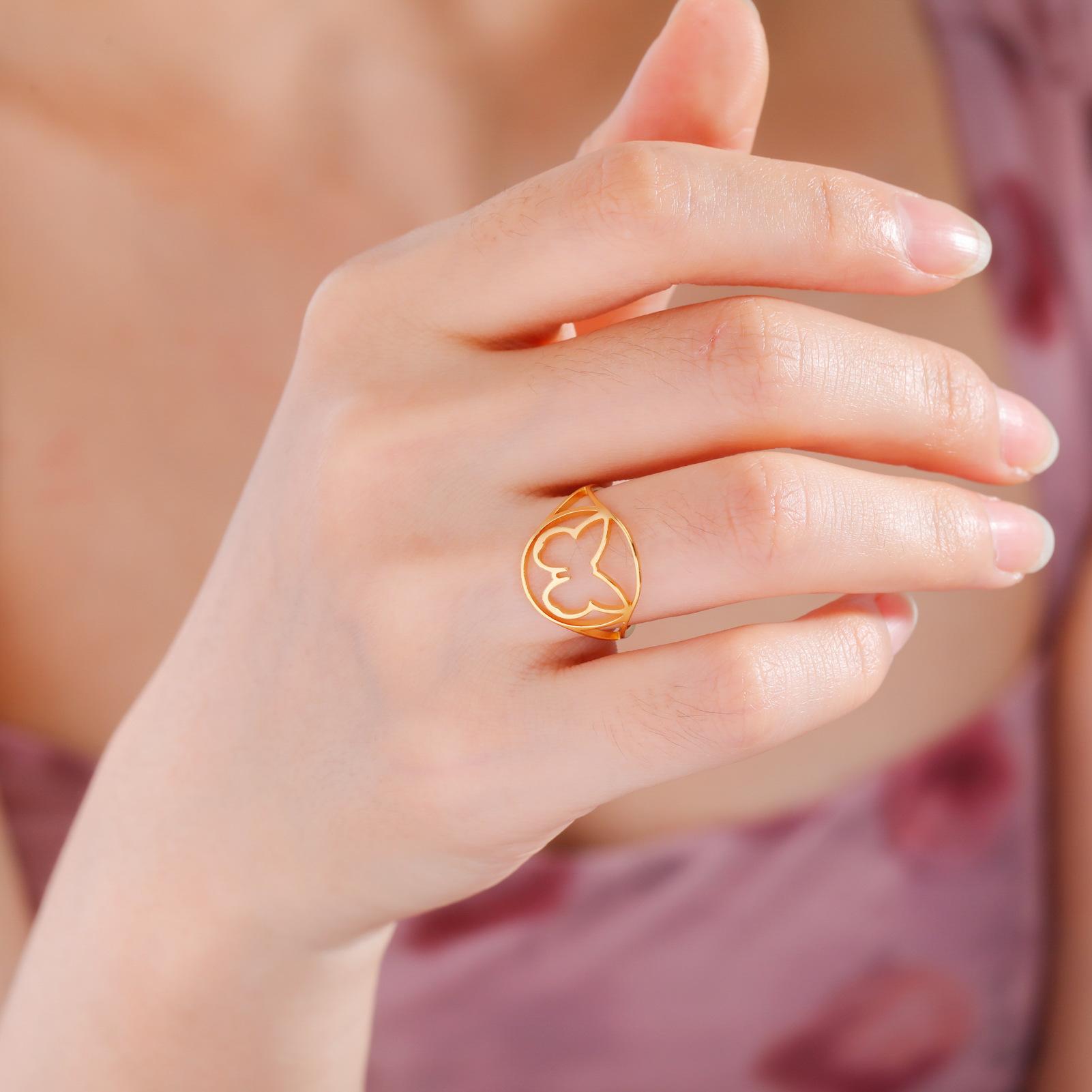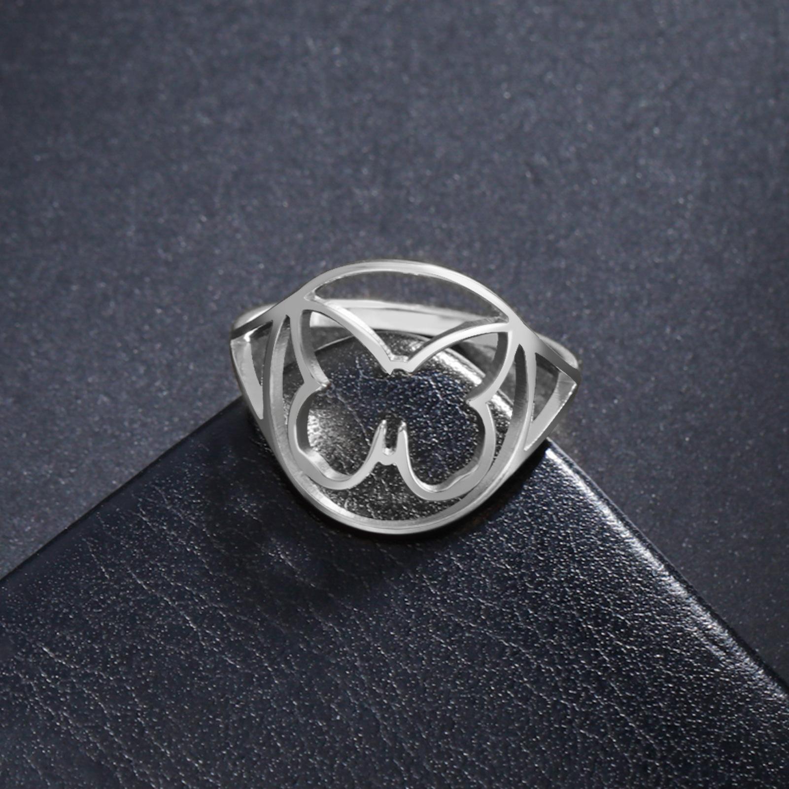 Anillo Elegante de Mariposa estilo Japonés y Coreano, nicho de estilo frío, anillo de mariposa hueco simple, anillo de acero inoxidable para mujer