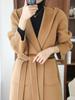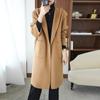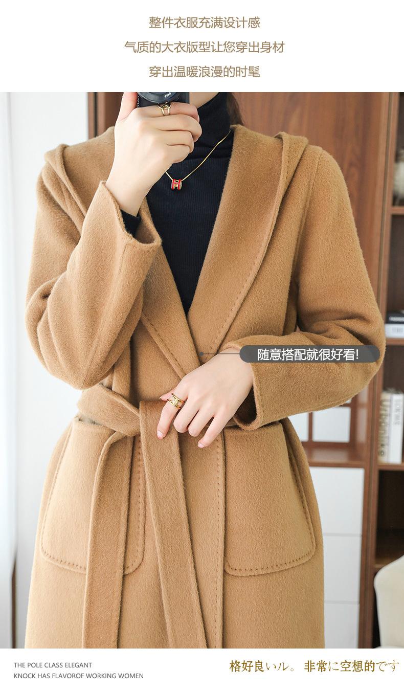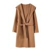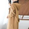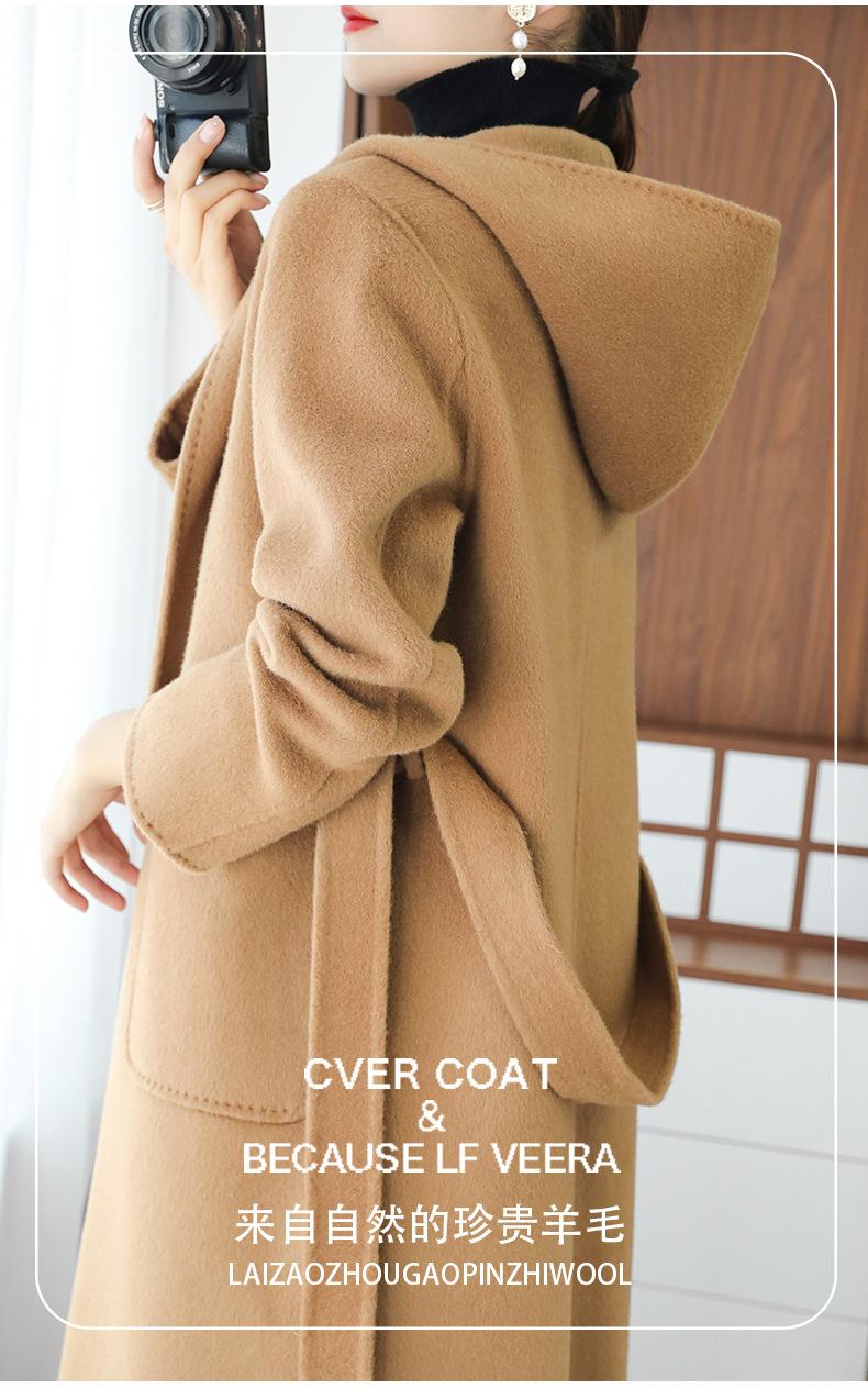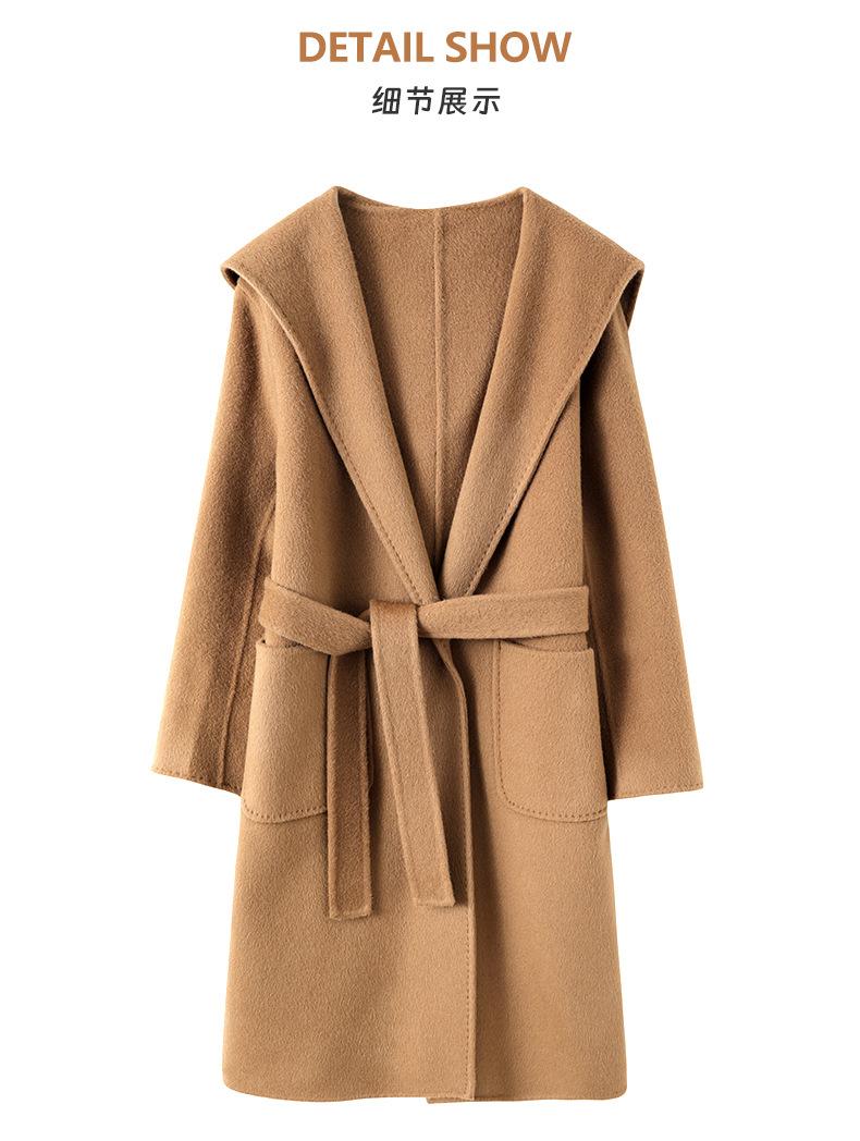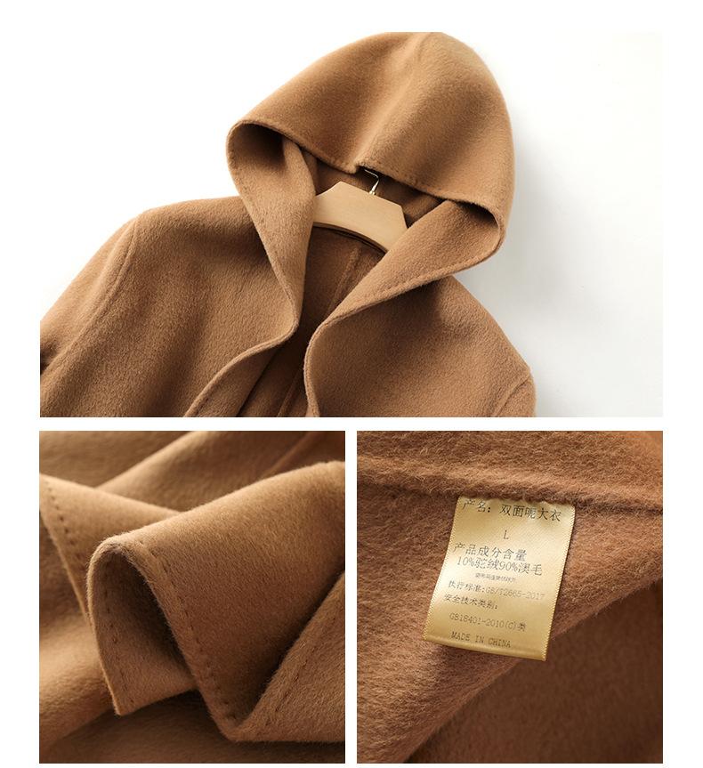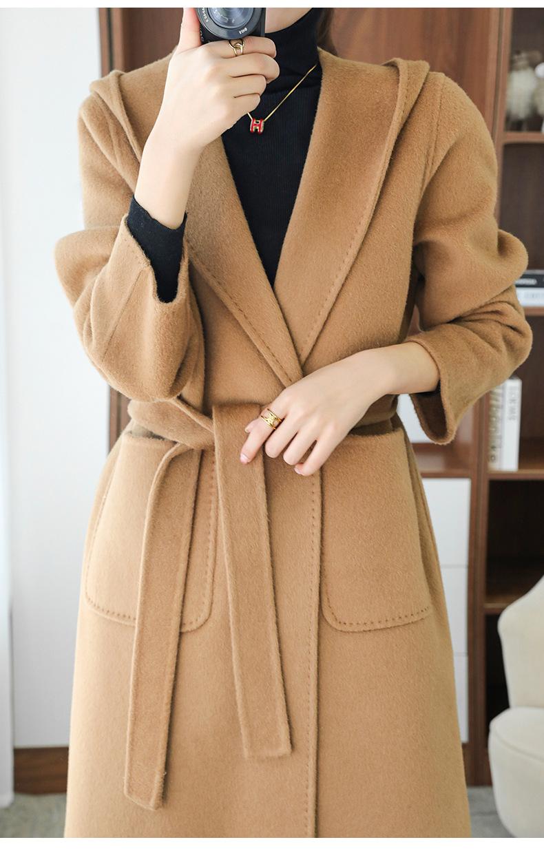 Abrigo de lana polar de doble cara para otoño e invierno, nuevo, de longitud media, con capucha, con cordones, por encima de la rodilla, elegante abrigo informal de alta gama para mujer.