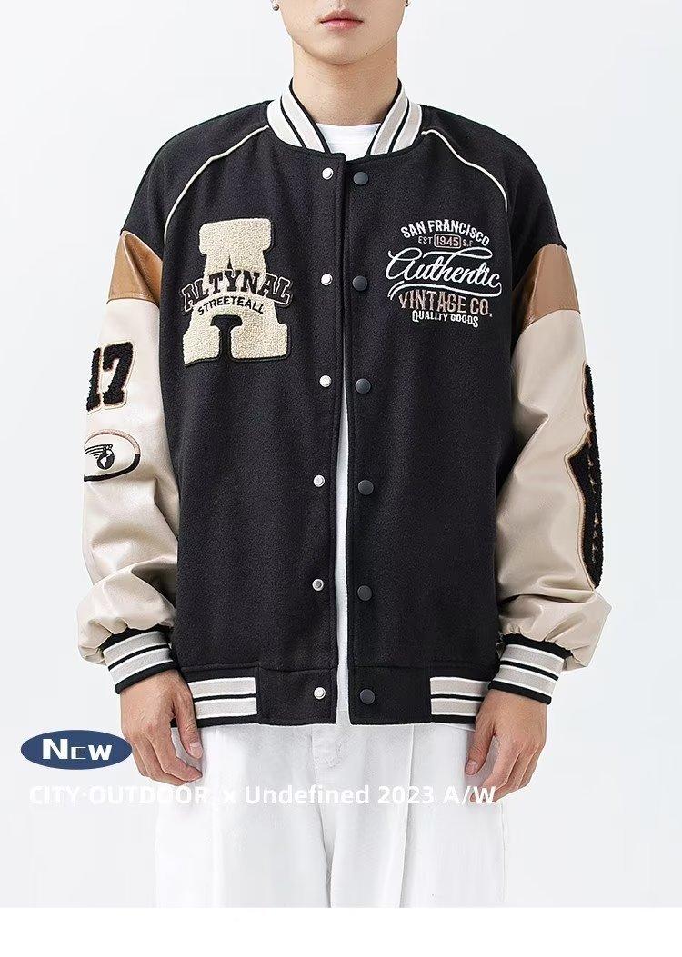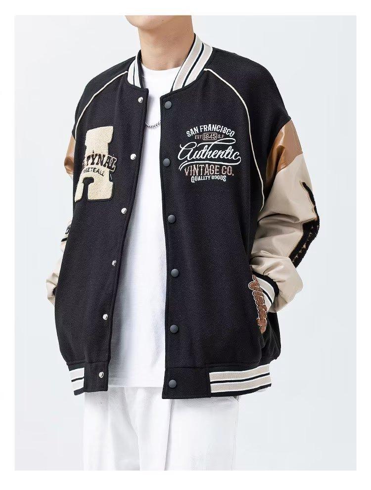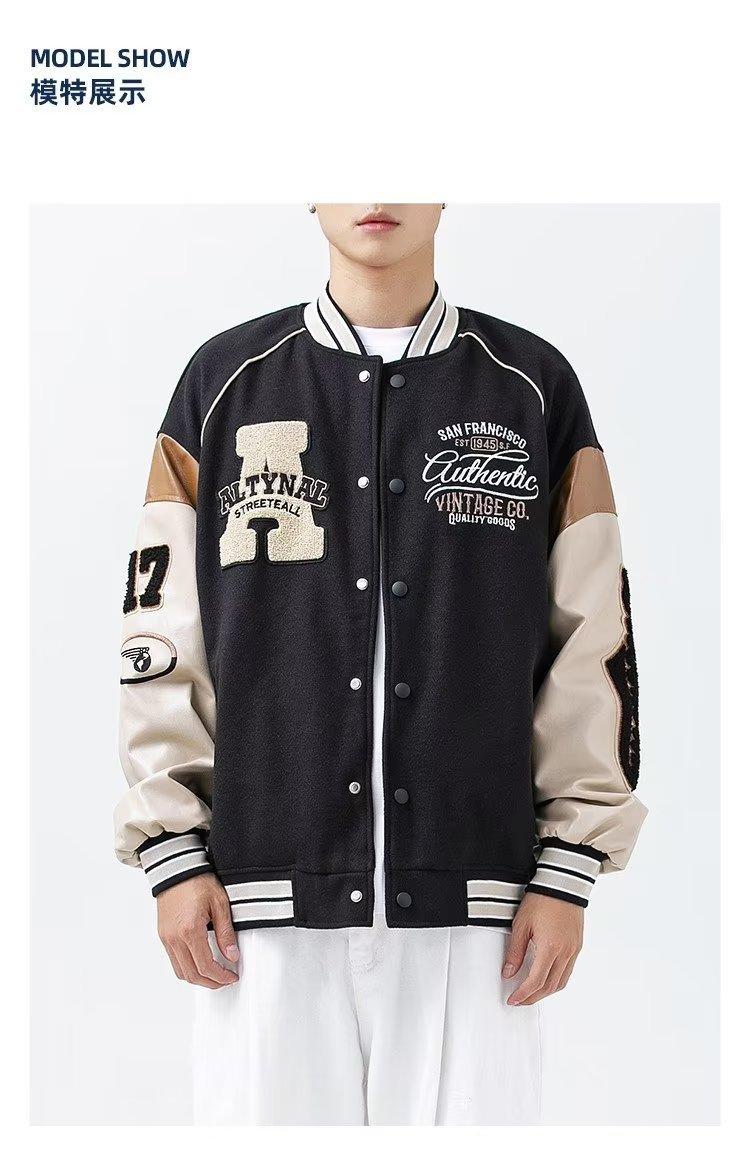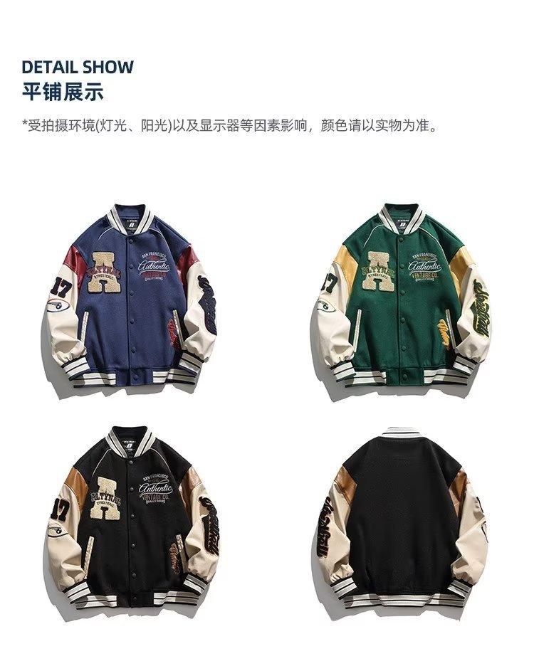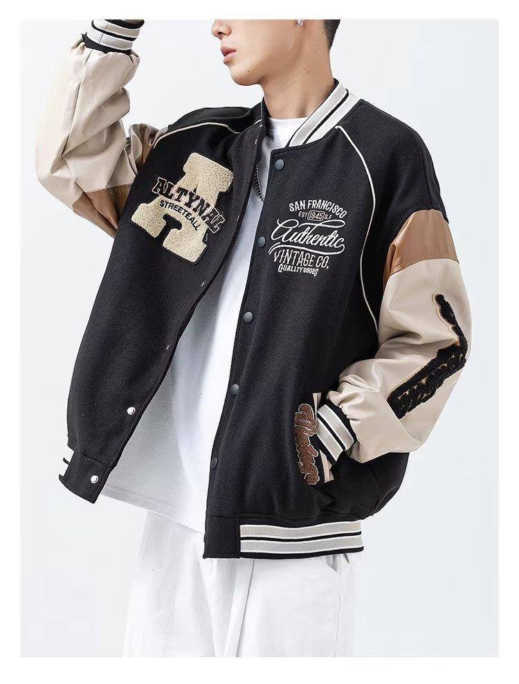 Uniforme de béisbol para hombre, primavera y otoño 2024, nuevo estilo deportivo a juego con colores callejeros, chaqueta holgada, chaqueta retro americana para hombre