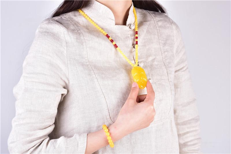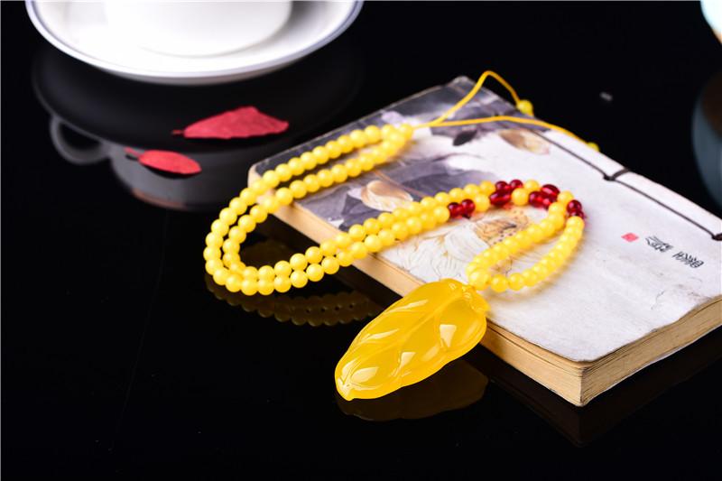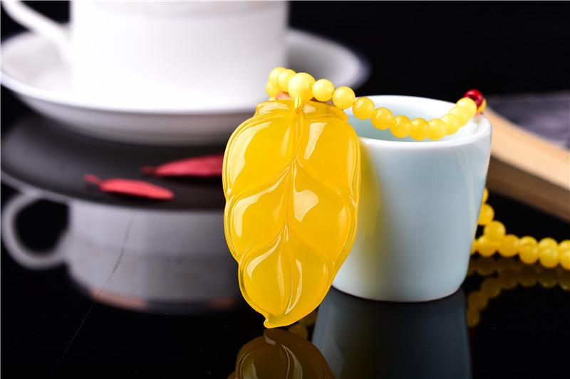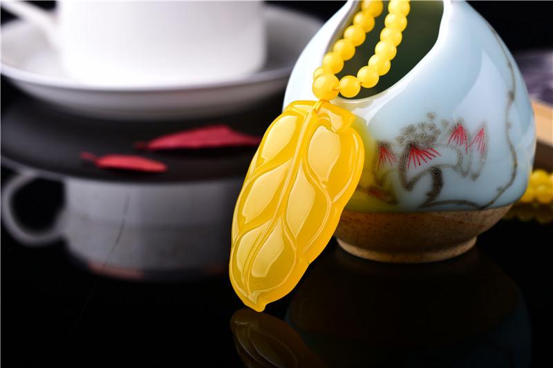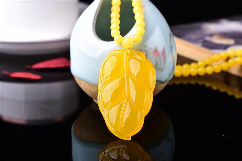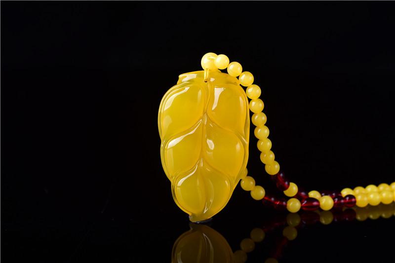Drenaje Regalo Transmisión en Vivo Exposición Fabricante Venta al por Mayor Cera de Abejas Ámbar Colgante Hoja Cadena Simple Hombres y Mujeres