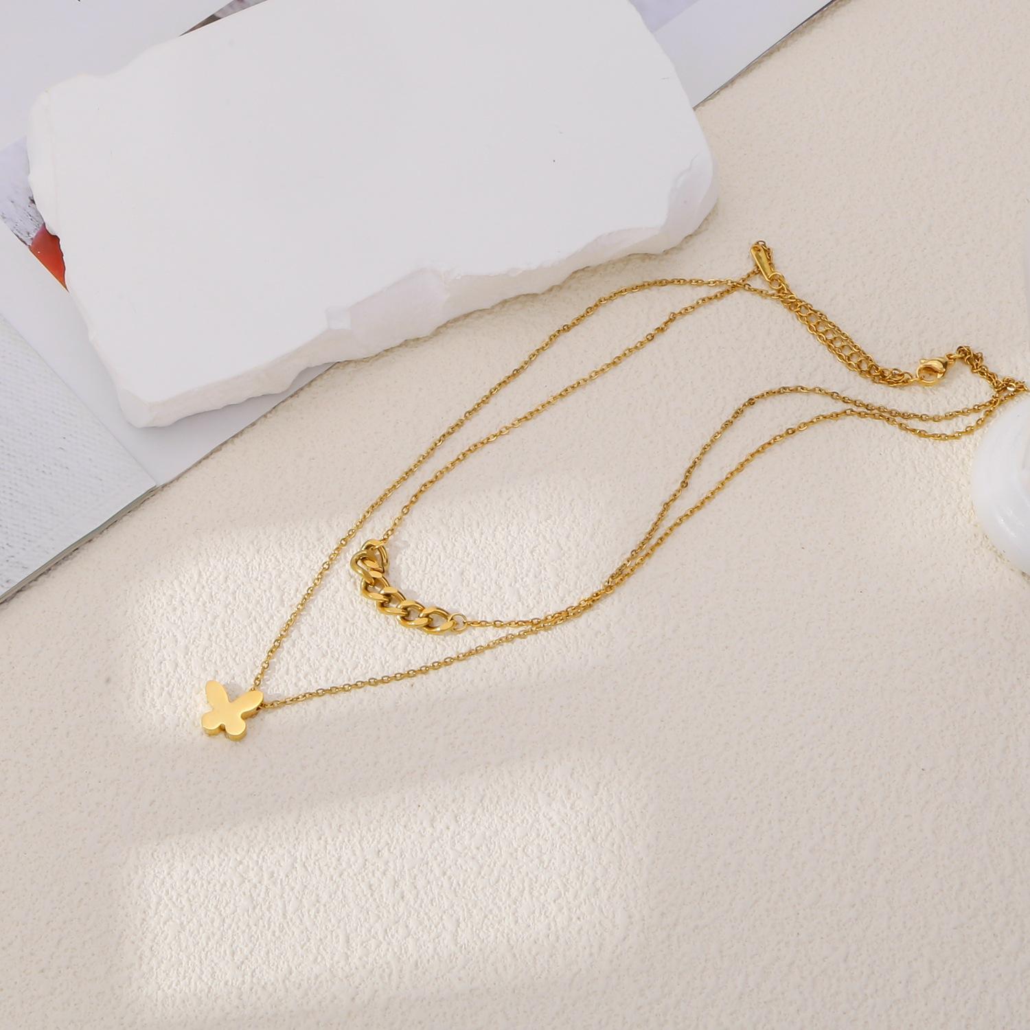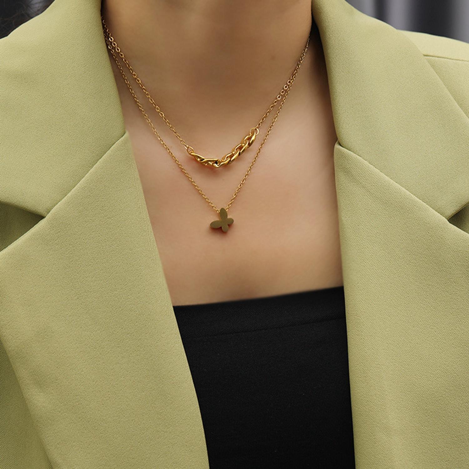 Collar de doble capa estilo europeo y americano, collar nicho con colgante de mariposa, diseño nicho, lujo ligero, collar de temperamento de socialité de alta gama