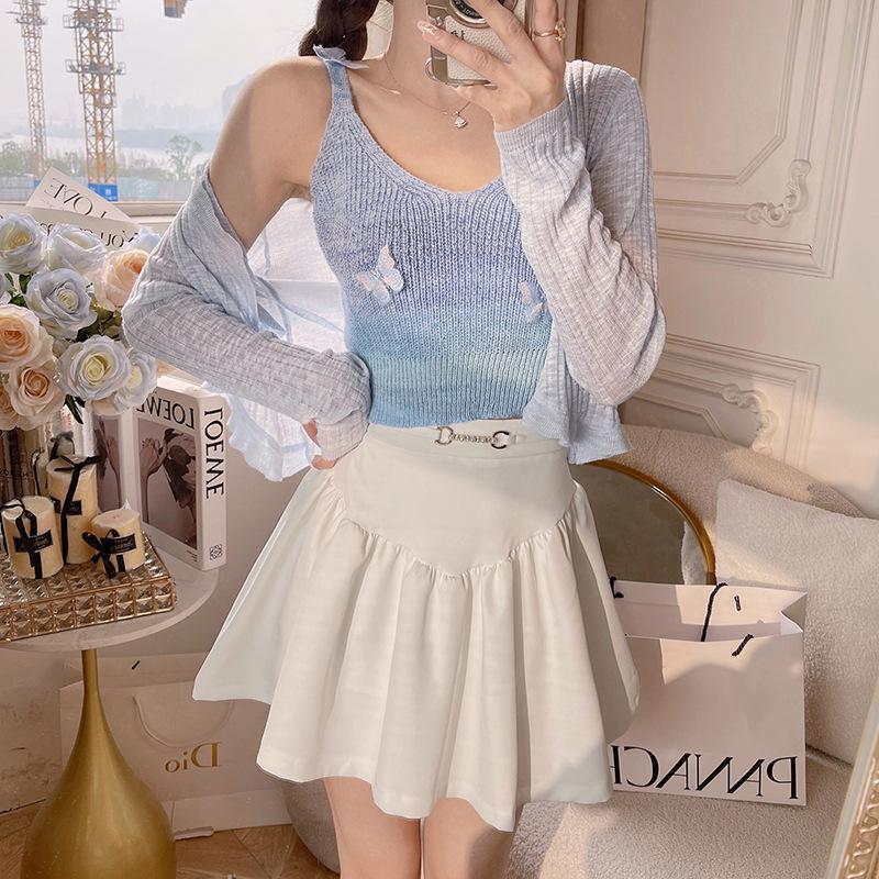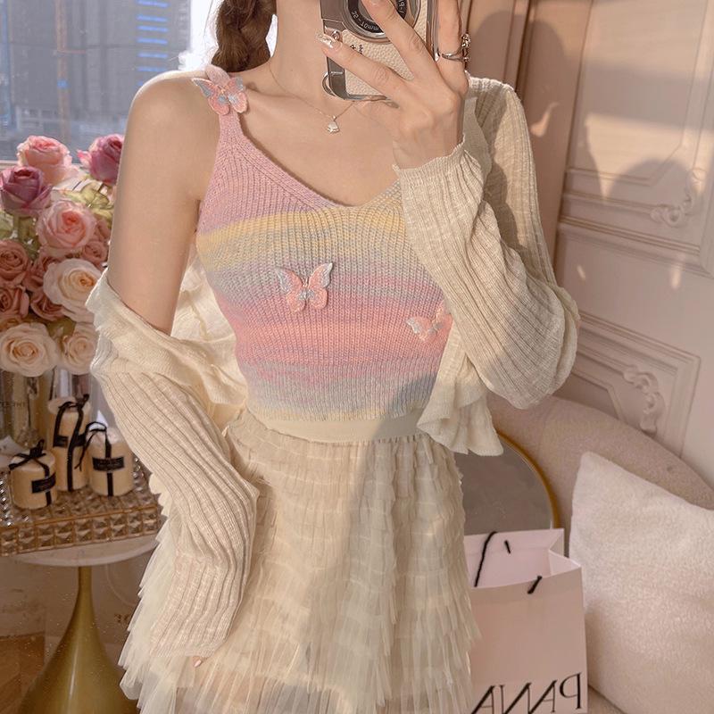 Camisola de Punto Estilo Francés Estilo Suave para Mujer Ropa Interior y Exterior 2023 Verano Nuevo Estilo