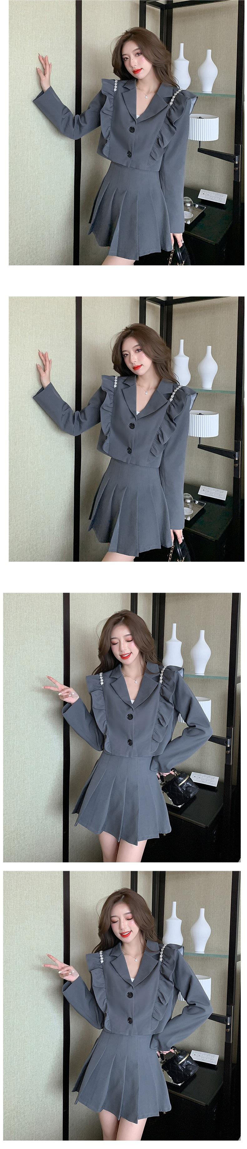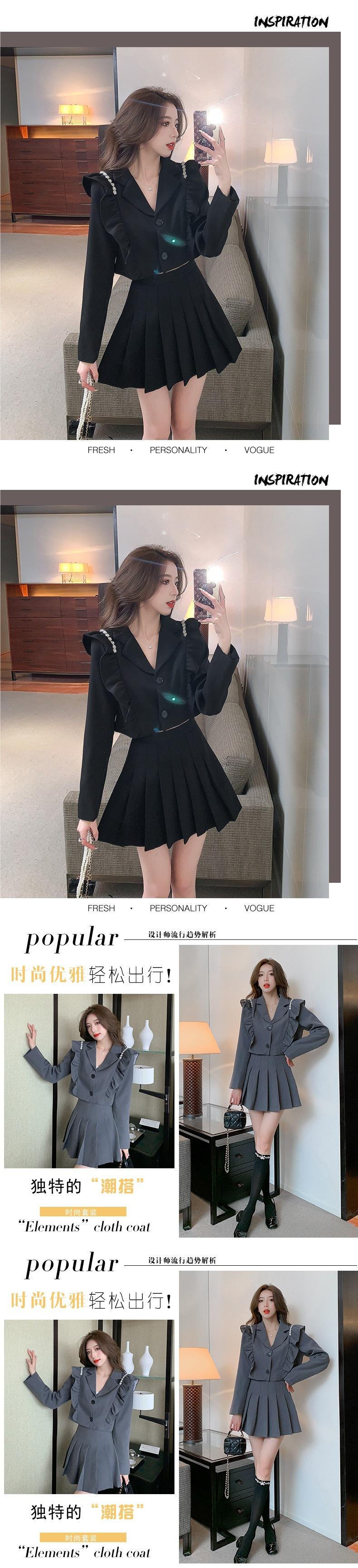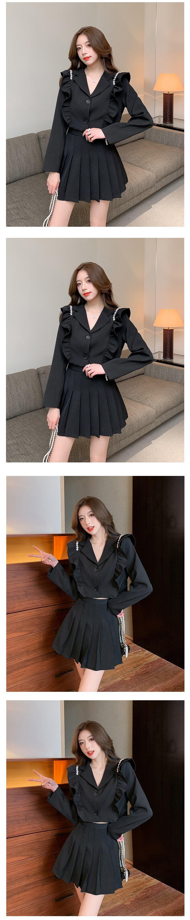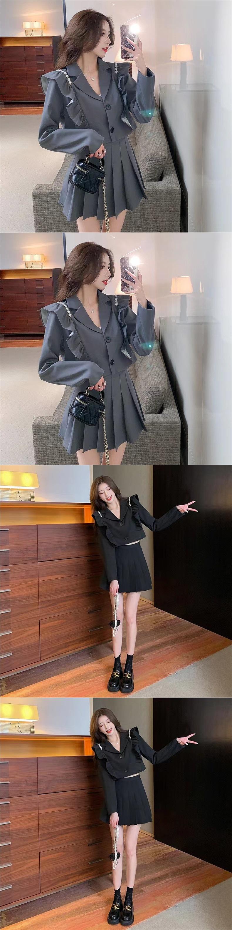 Nueva Toma Real 2025 Nueva Moda Chaqueta Corta Adelgazante Ajustada Falda Plisada de Cintura Alta Conjunto de Dos Piezas