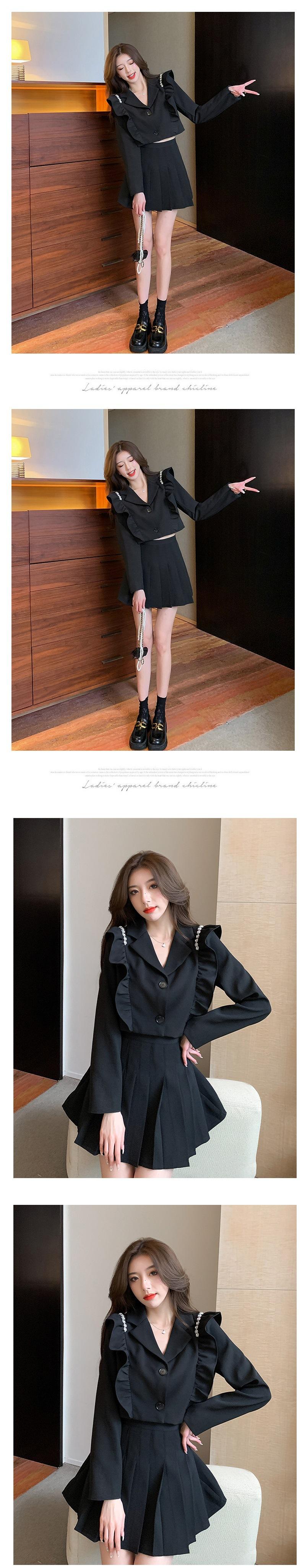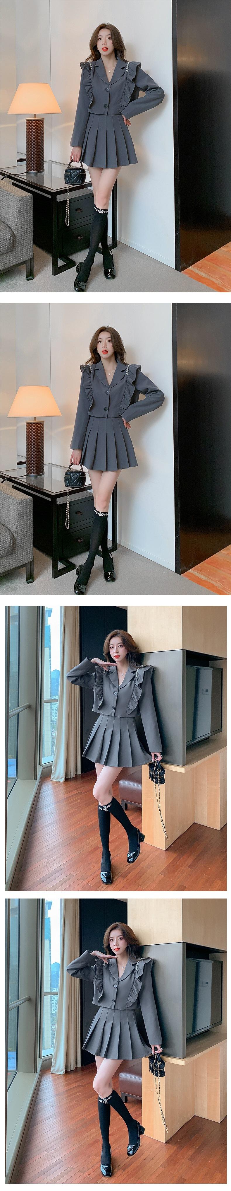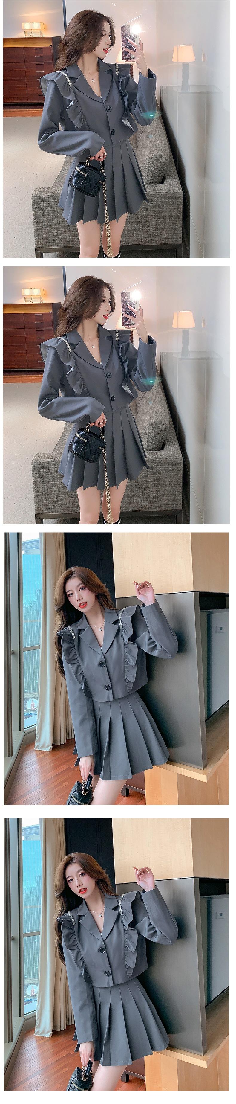 Nueva Toma Real 2025 Nueva Moda Chaqueta Corta Adelgazante Ajustada Falda Plisada de Cintura Alta Conjunto de Dos Piezas