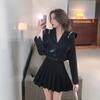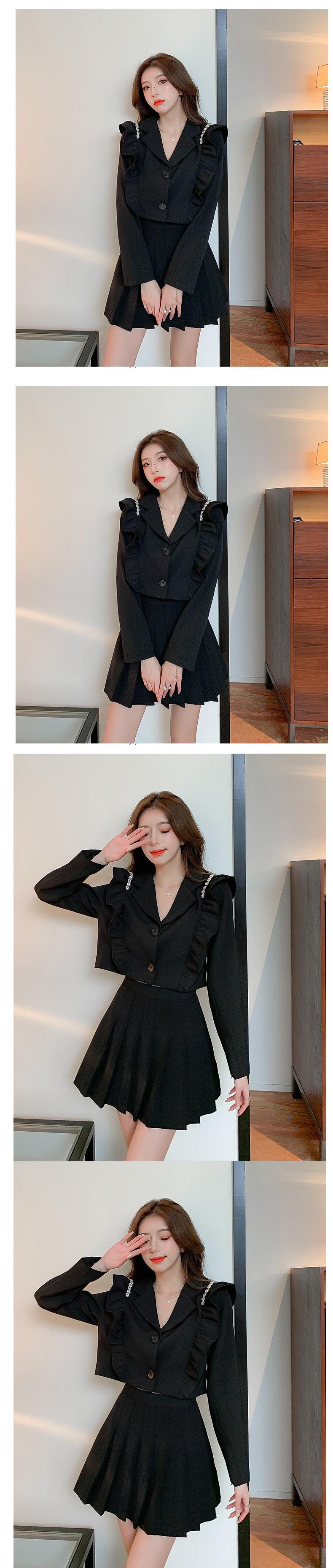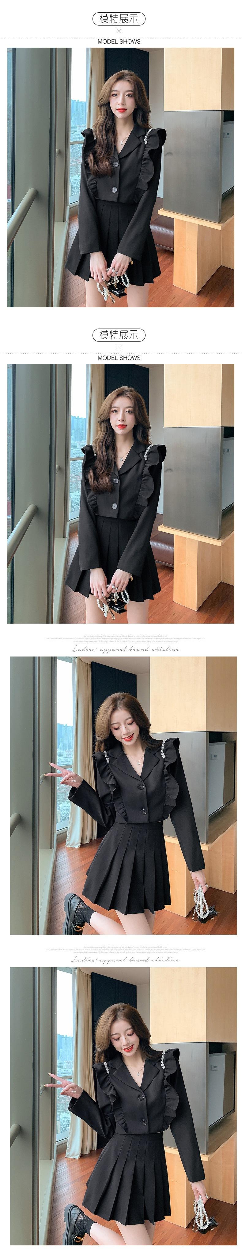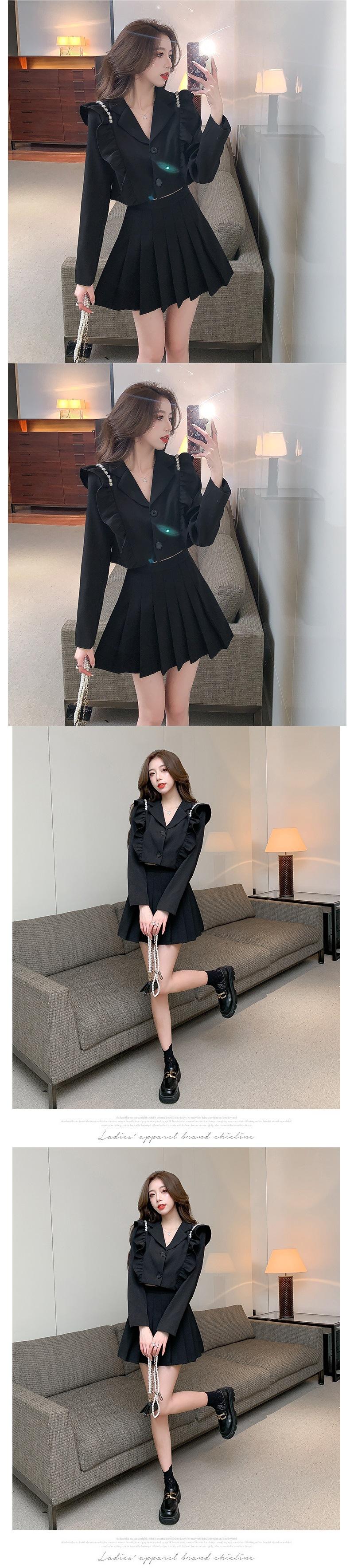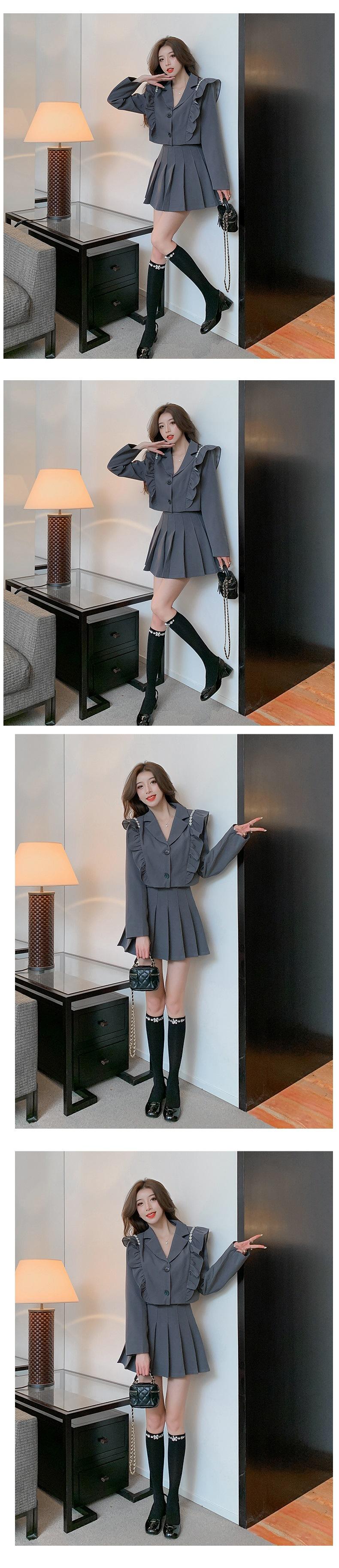Nueva Toma Real 2025 Nueva Moda Chaqueta Corta Adelgazante Ajustada Falda Plisada de Cintura Alta Conjunto de Dos Piezas