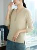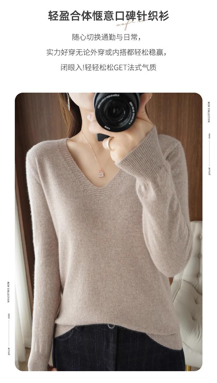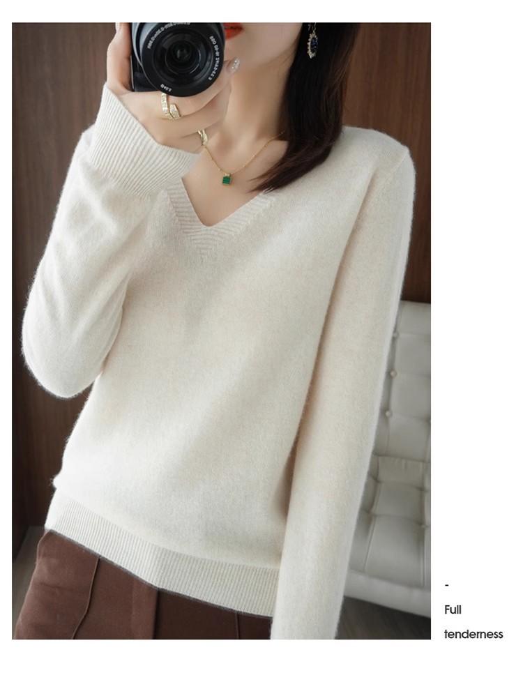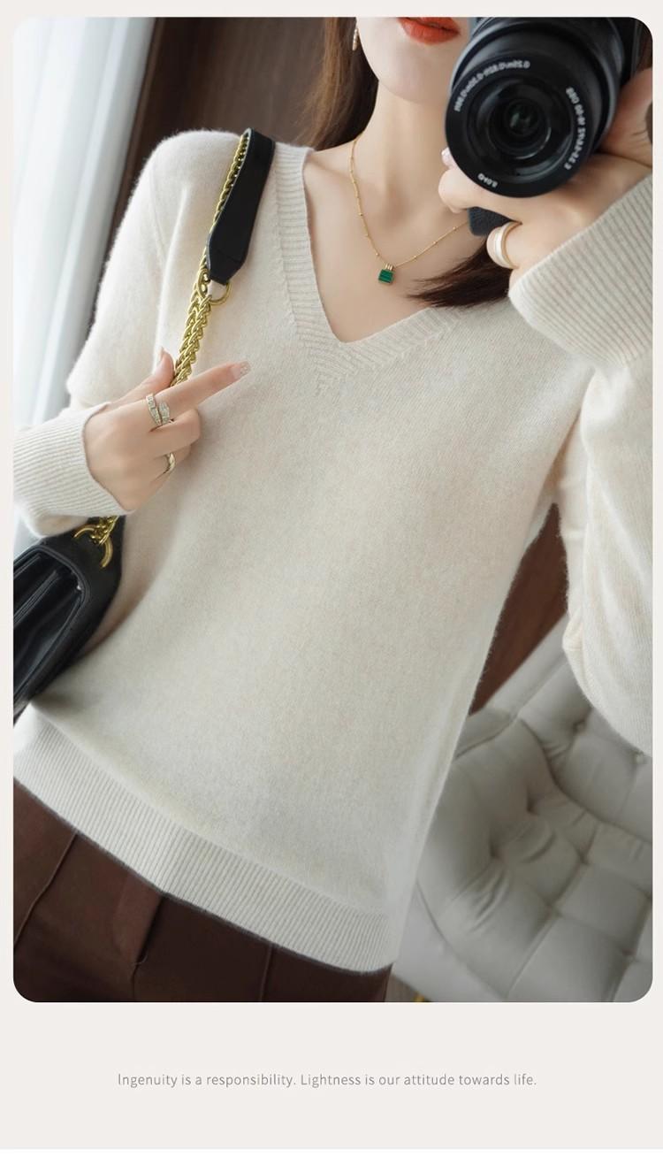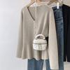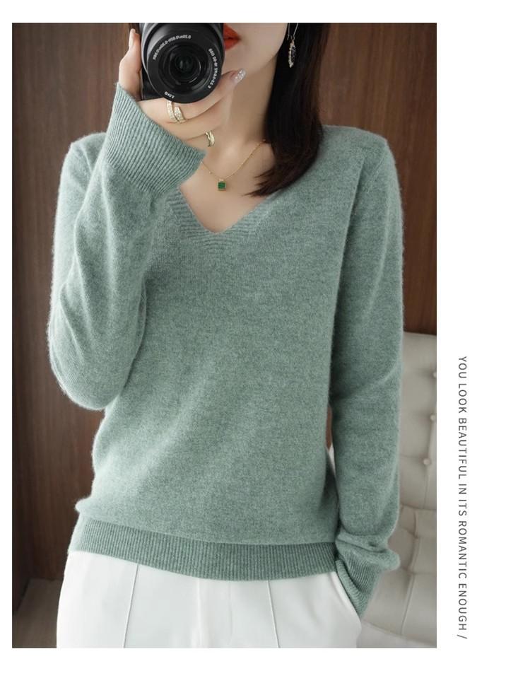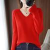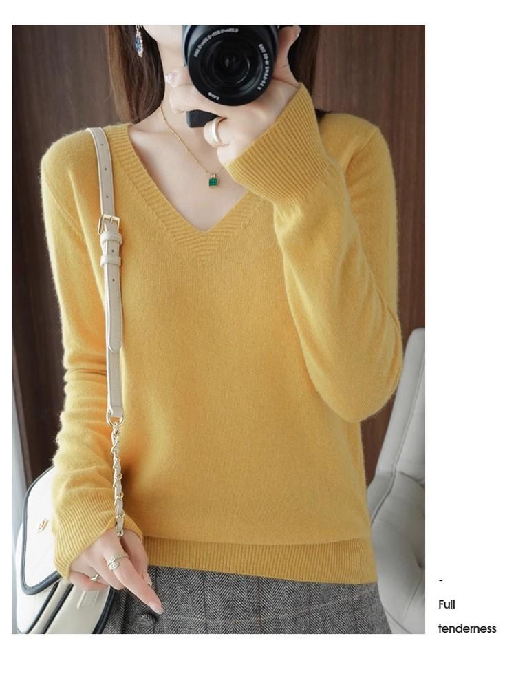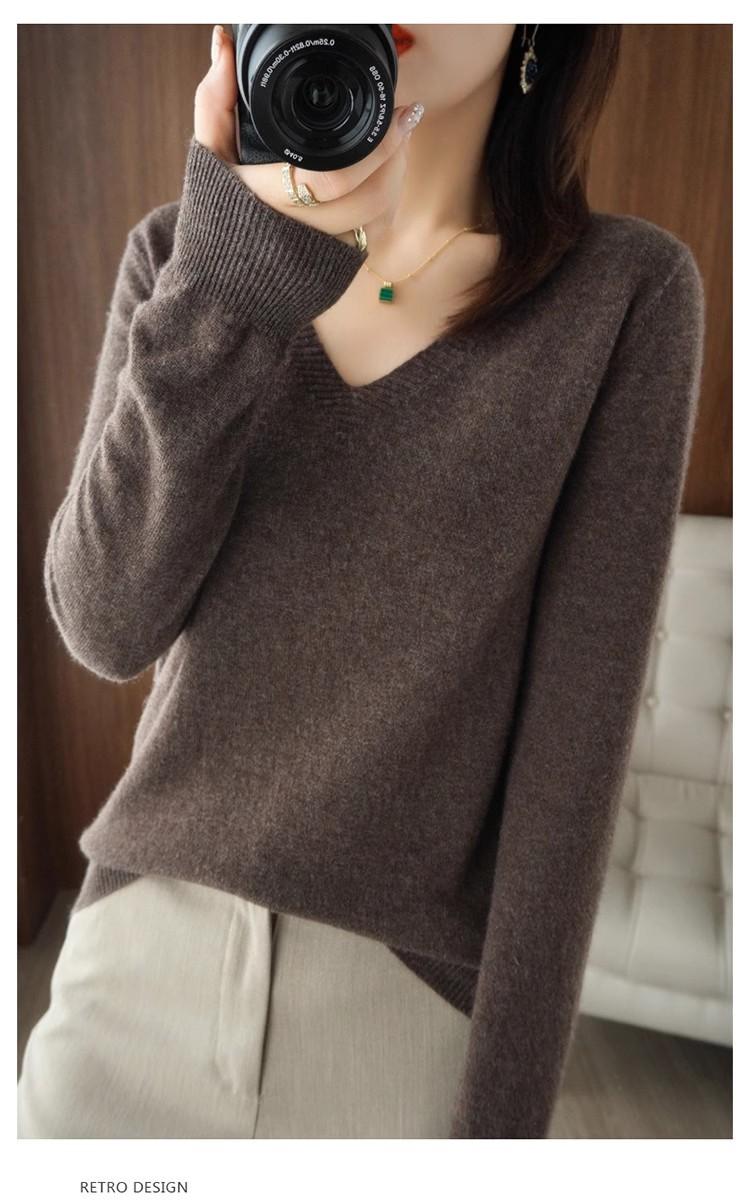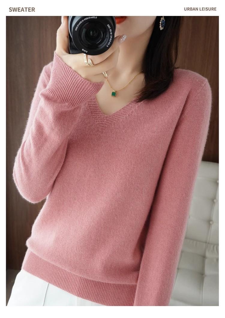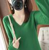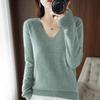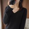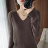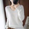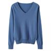 Suéter de punto con cuello en V para mujer, jersey corto holgado de color liso, manga larga, combinable, primavera y otoño de 2024