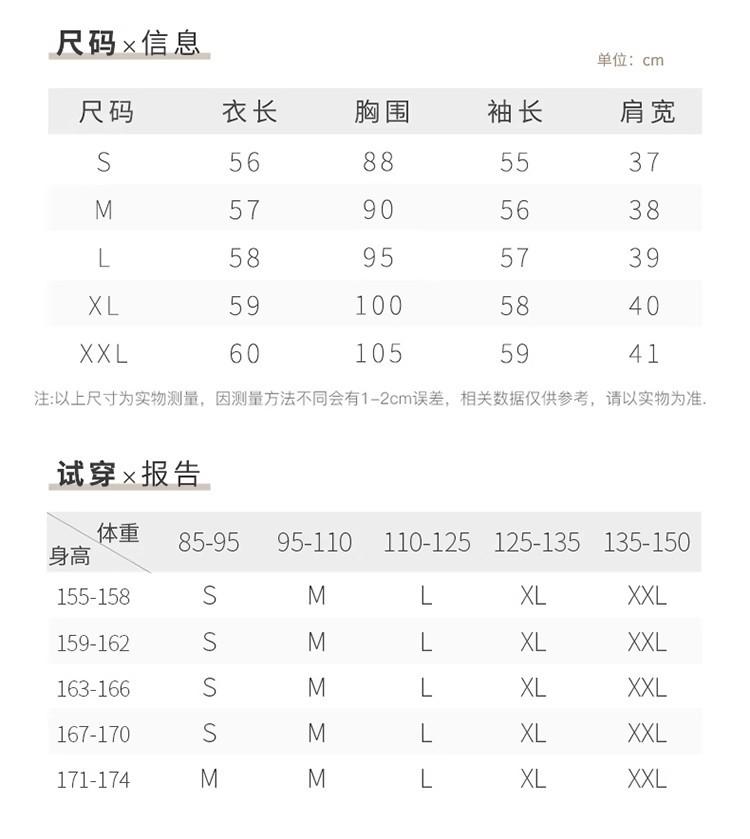 S 40.00 kg-50.00 kg, M 50.00 kg-55.00 kg, L 55.00 kg-60.00 kg, XL 60.00 kg-65.00 kg, XXL 65.00 kg-80.00 kg