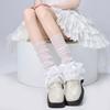 Calcetines con cordones para chica sexy, medias largas por encima de la rodilla con vendaje en blanco y negro, calcetines de Lolita para mujer, calcetines finos a rayas