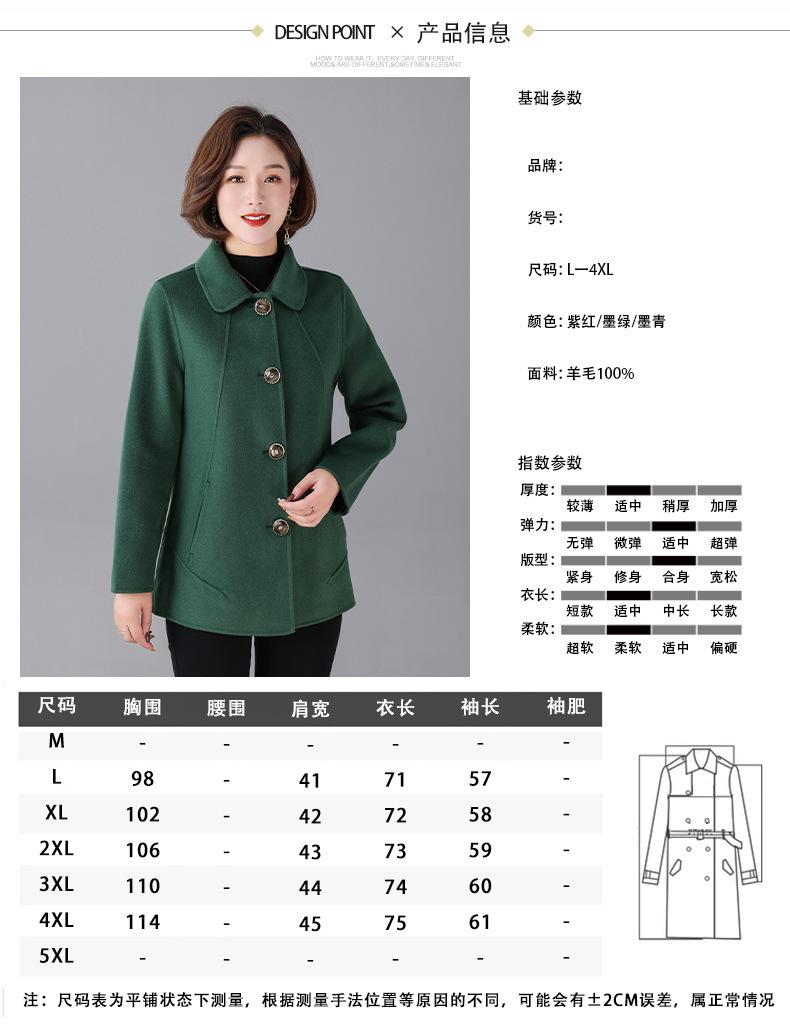 Abrigo de lana de cachemira de doble cara, abrigo corto de lana para mujer para mamás de mediana edad, talla grande, estilo occidental, nuevo otoño e invierno 2022