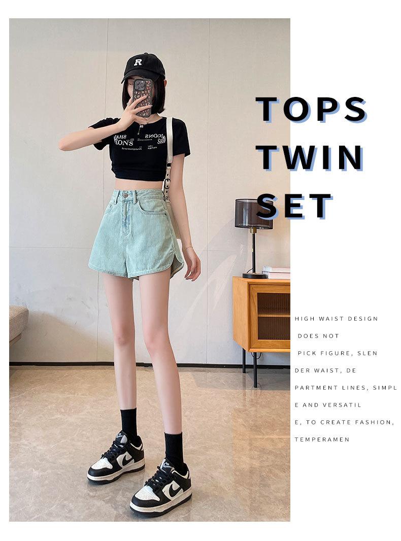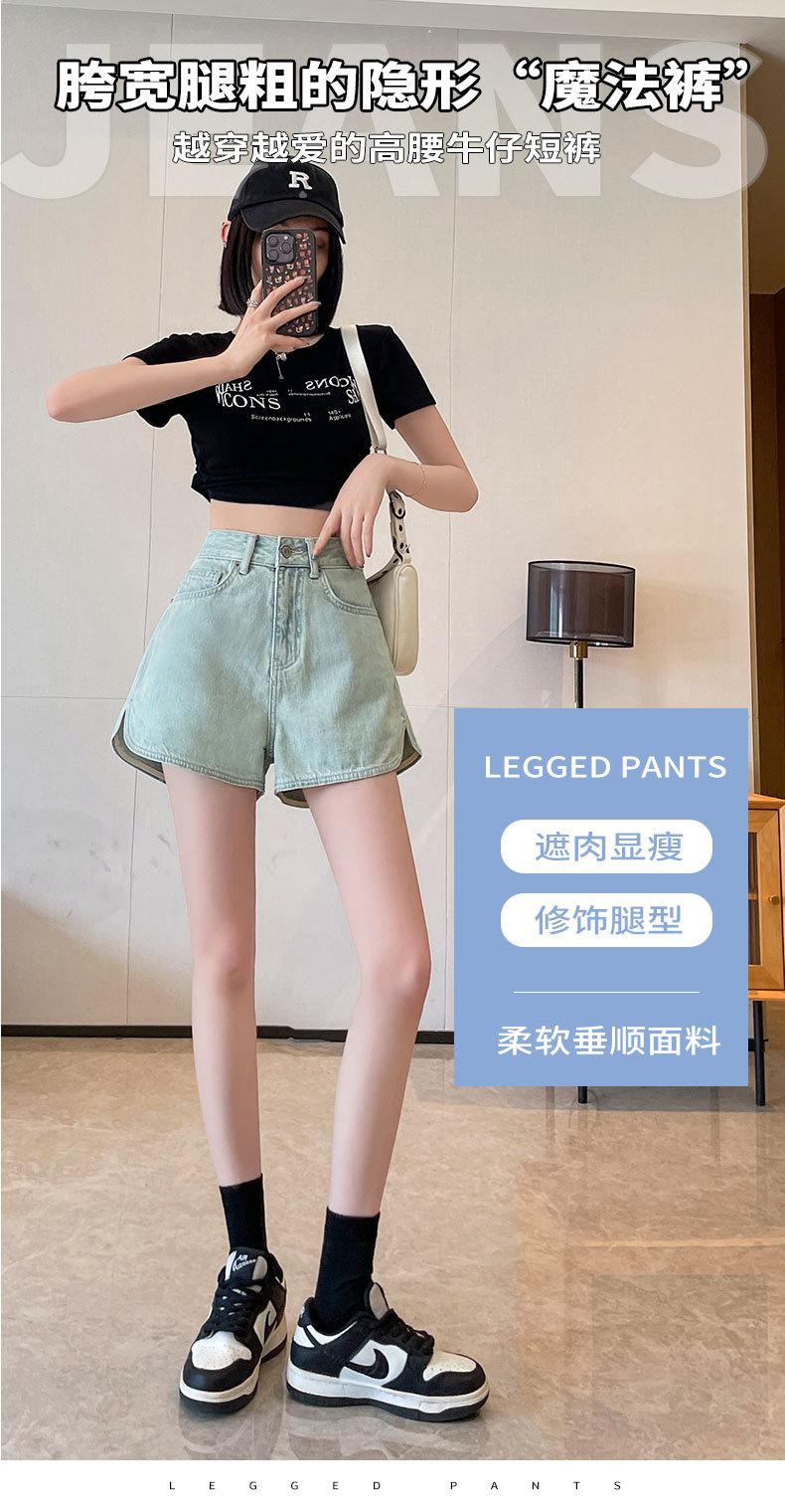 Shorts de Verano para Mujer Trasero Grande Cintura Alta Línea A Ajustados Cubre Muslos Mezclilla Pantalones de Pierna Ancha Sueltos Pantalones de Tres Minutos para Chica Hot Delgados