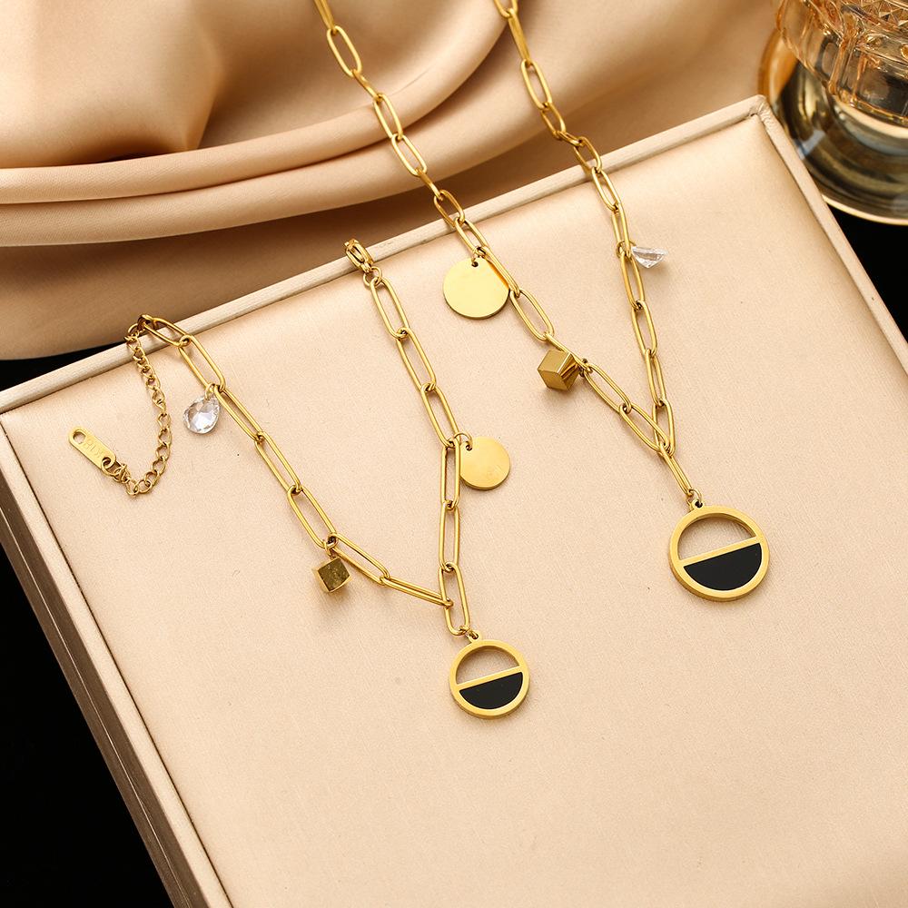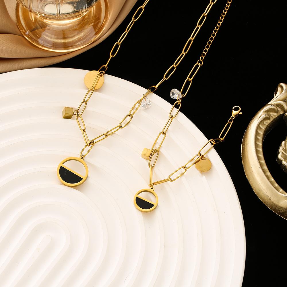 Collar de piedra personalizado retro, sencillo, combinable con todo, estilo europeo y americano, con nicho de acero de titanio chapado en 18 quilates, pulsera de cadena de clavícula de metal, venta al por mayor