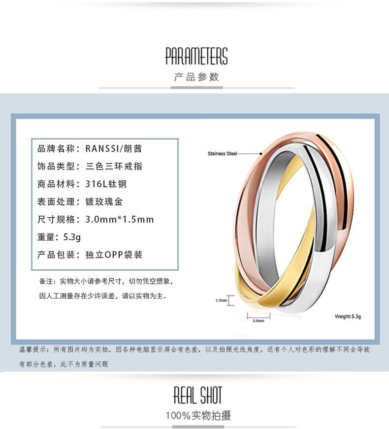 Comercio Exterior Joyería Europea y Americana Moda Creativa Anillo de Tres Aros para Mujer Anillo de Acero Inoxidable Joyería Anillo de Möbius