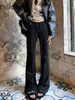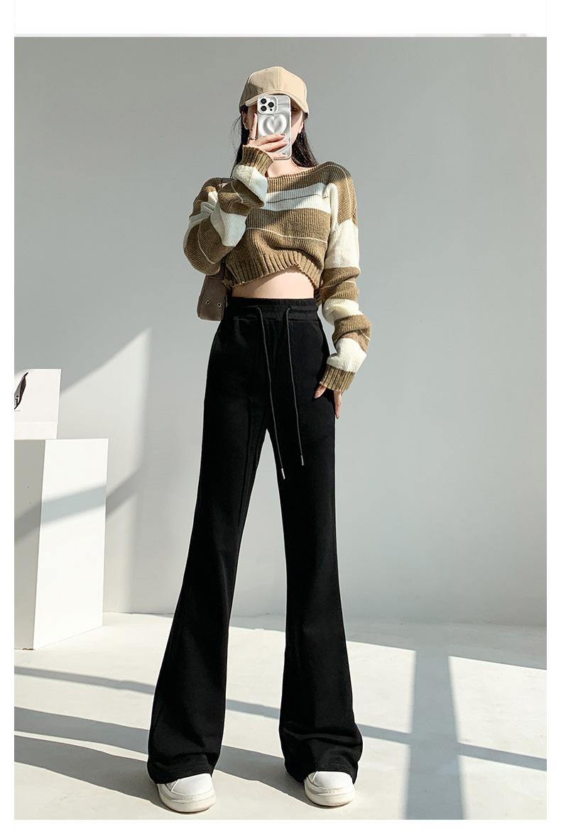 Pantalones de yoga estilo americano para mujer, nuevos de primavera y otoño, cintura alta casual, pantalones de herradura alargados para altas, pantalones deportivos acampanados