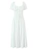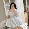 Vestido elegante de verano con mangas abullonadas y cuello cuadrado, elegante y suave, con estampado floral y cintura alta, de encaje adelgazante.