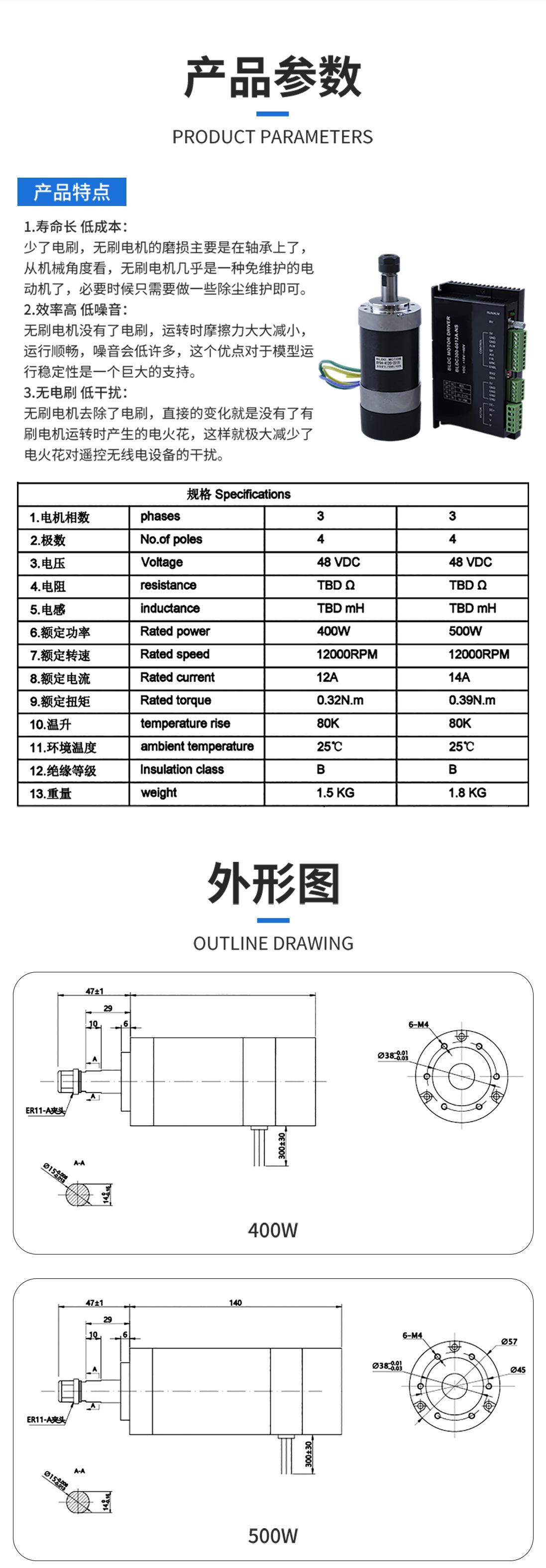 Ventas Directas de Fábrica Juego de Motor de Husillo Sin Escobillas 57 Alta Velocidad 12000 a 400/500W Juego Sin Escobillas de CC