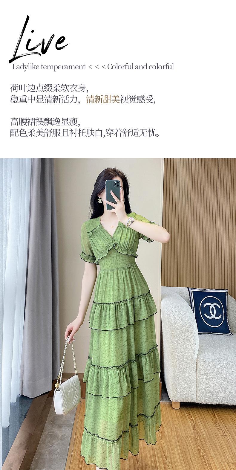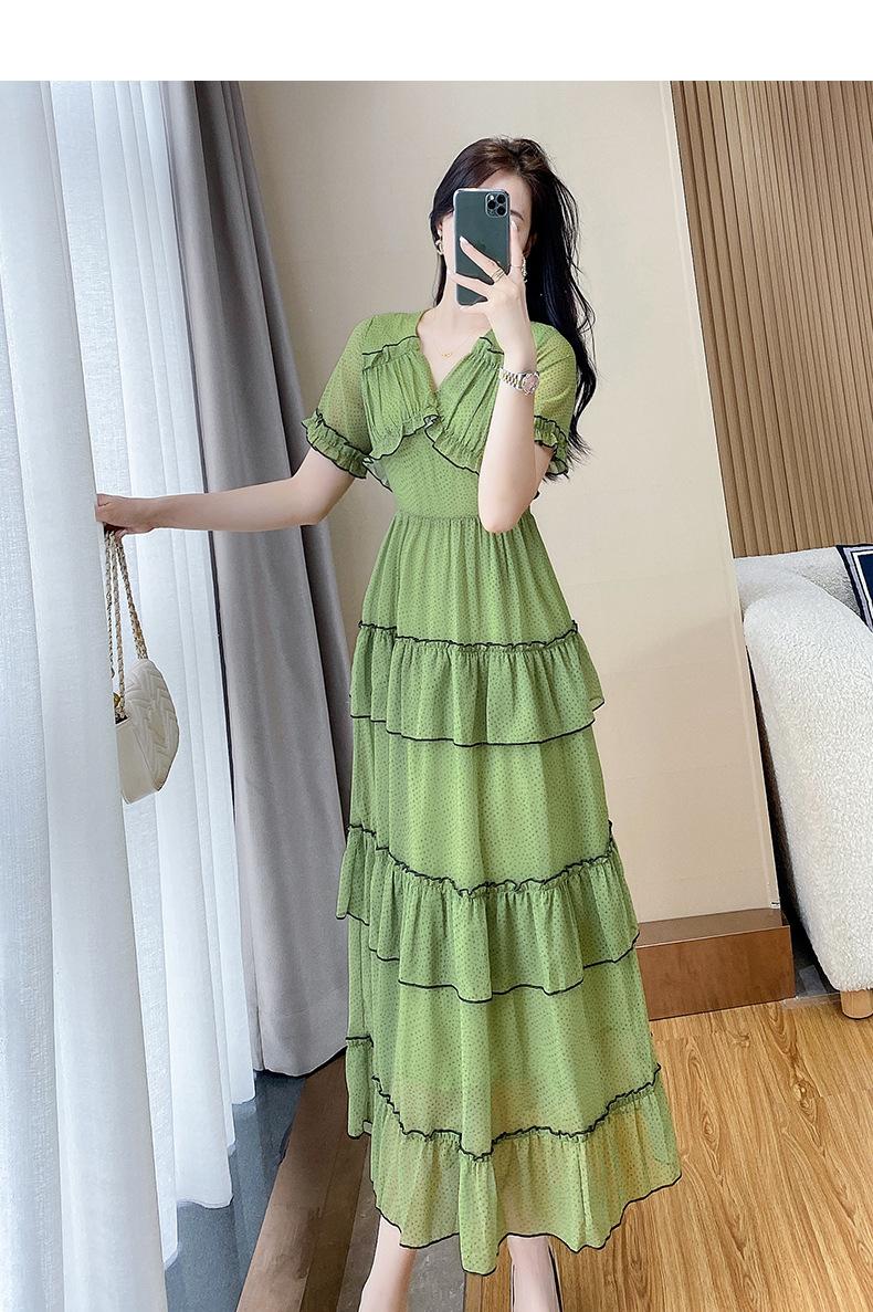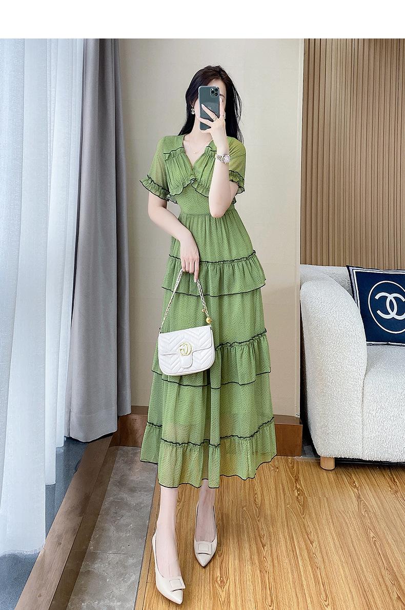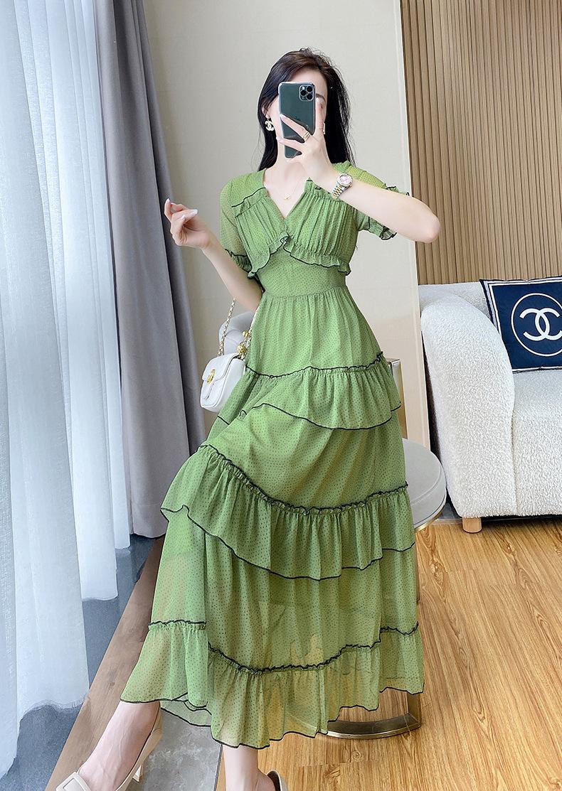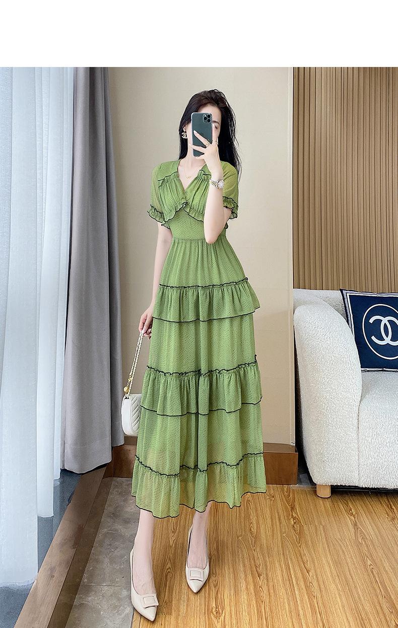 Vestido ajustado estilo francés para mujer, verano 2023, con cintura alta, cubre vientre, volantes y largo medio, para romper el té.