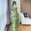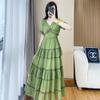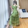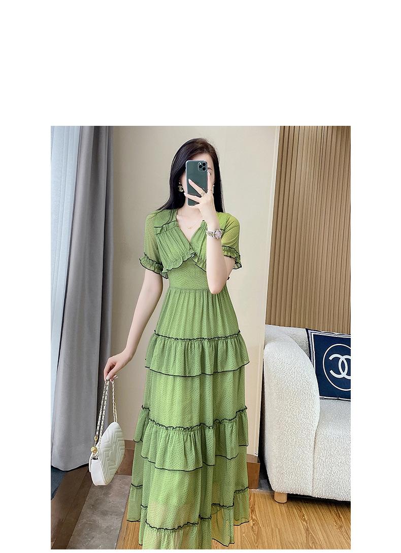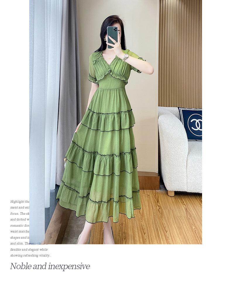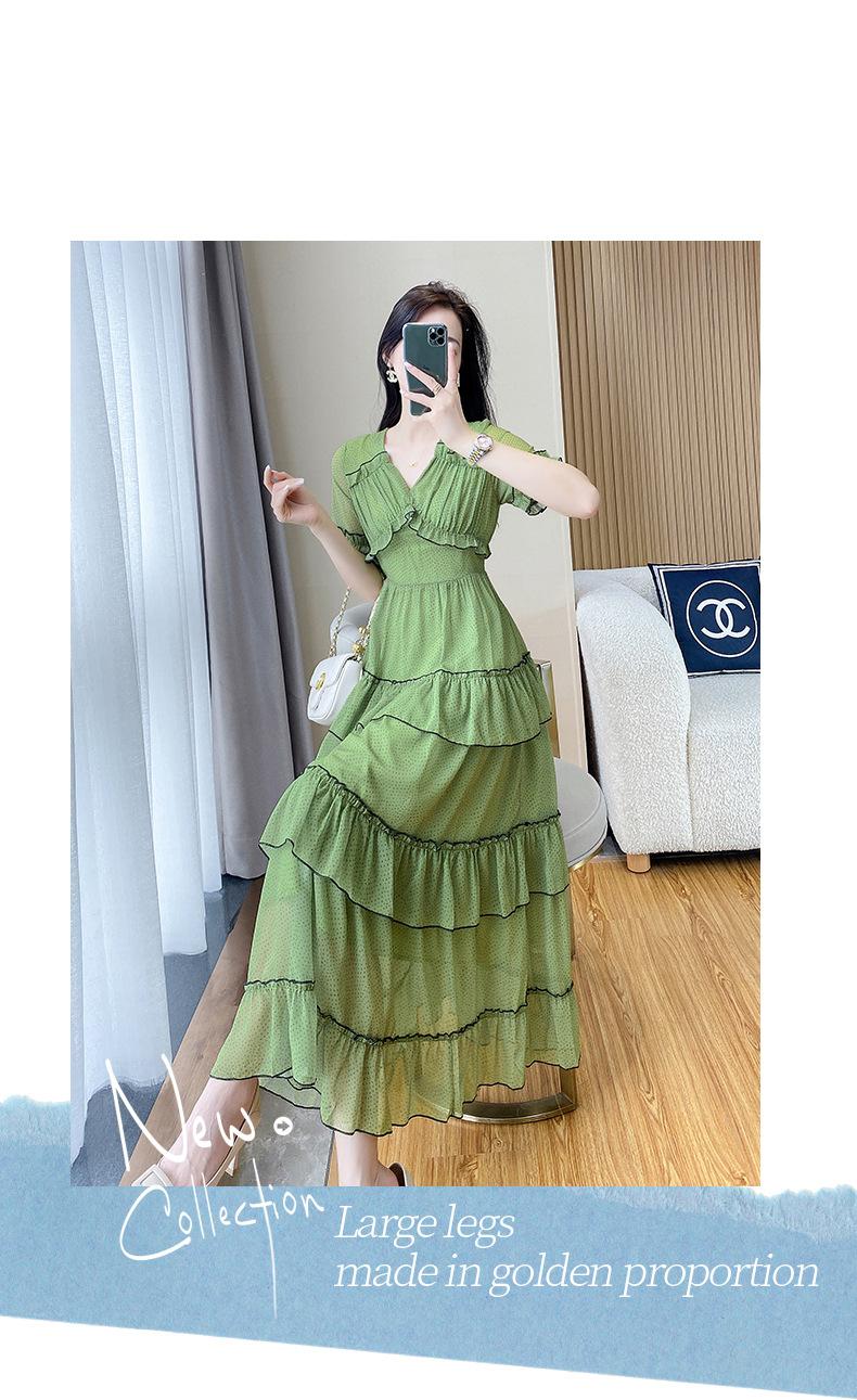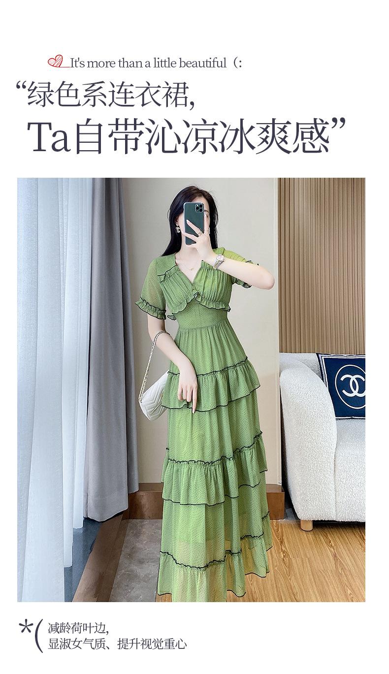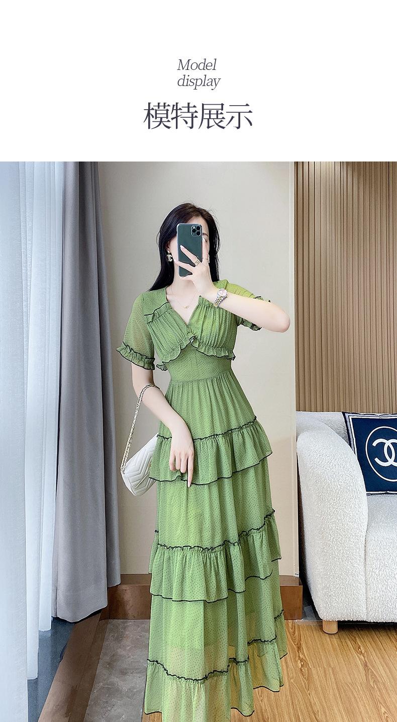 Vestido ajustado estilo francés para mujer, verano 2023, con cintura alta, cubre vientre, volantes y largo medio, para romper el té.