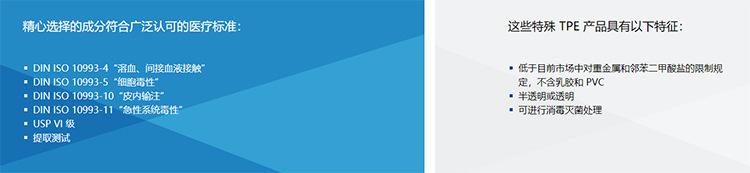 Los TPE para las industrias médica y farmacéutica están certificados según ISO 10993-4, -5, -10, -11 y USP Clase VI.