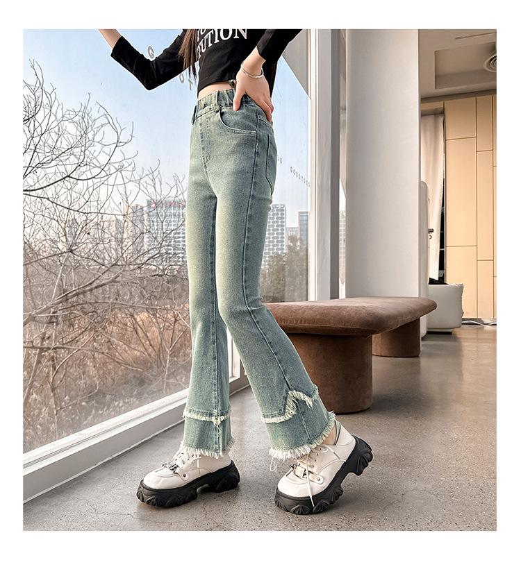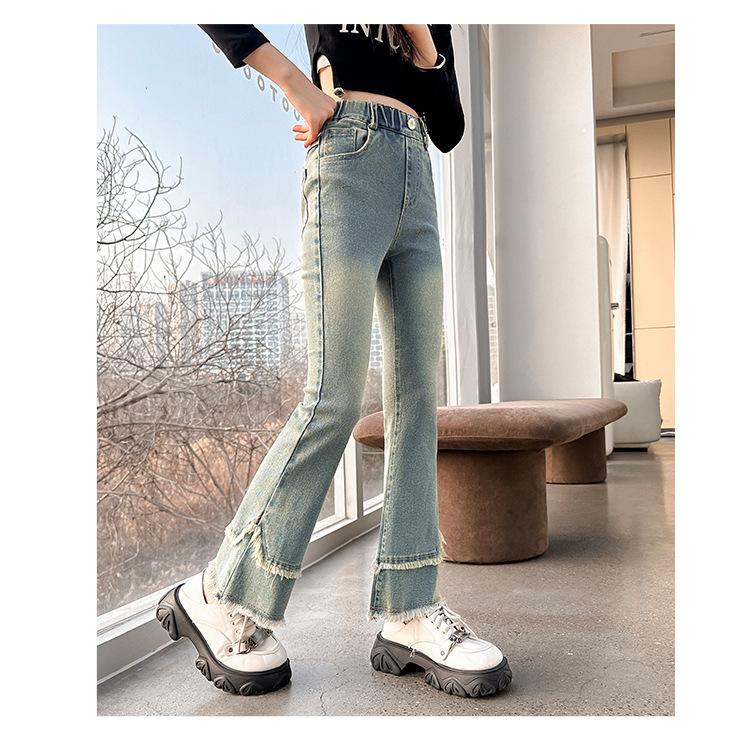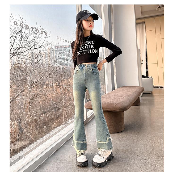Pantalones acampanados para niñas Primavera y otoño 2024 Nuevos jeans para niñas Pantalones ajustados de moda para niñas