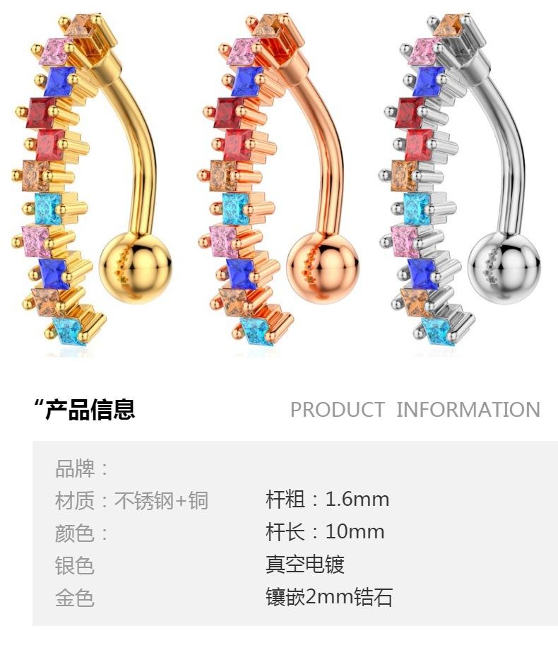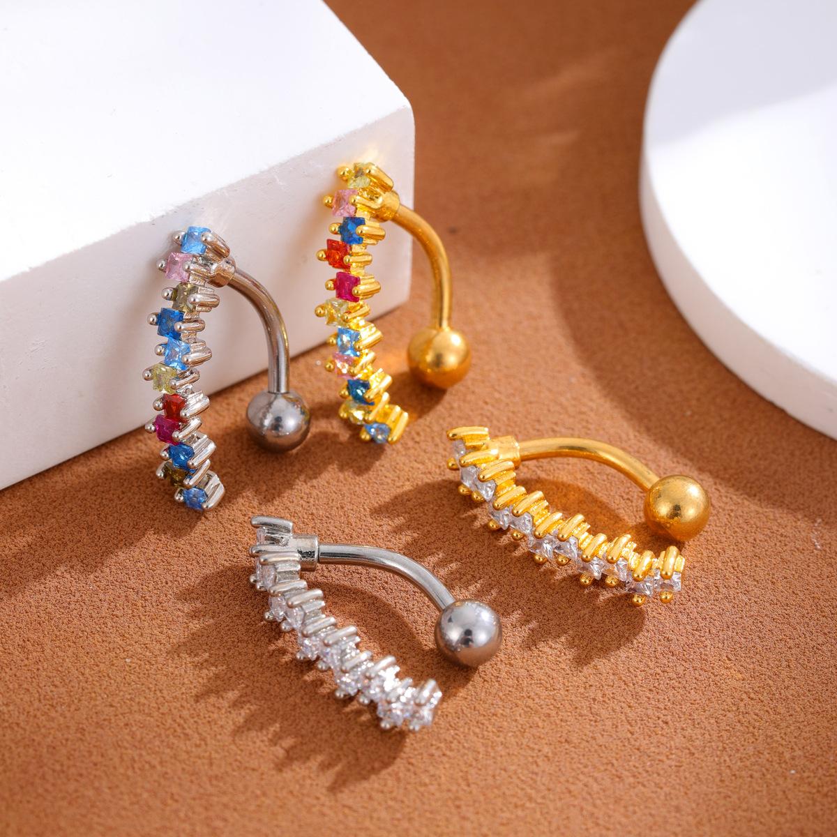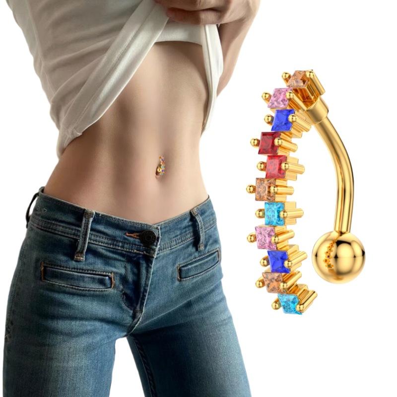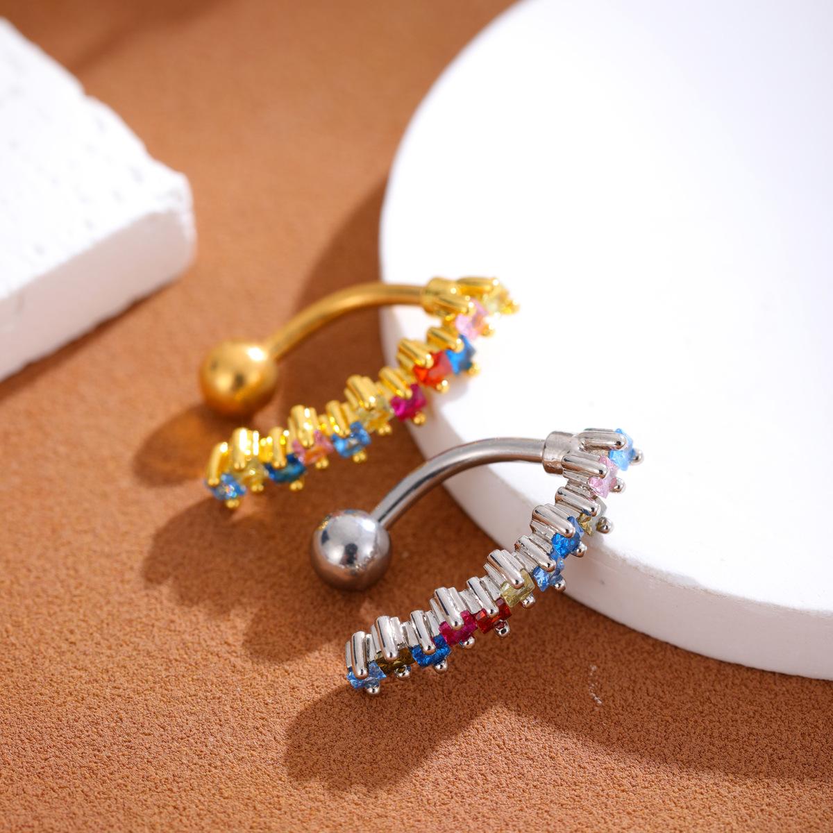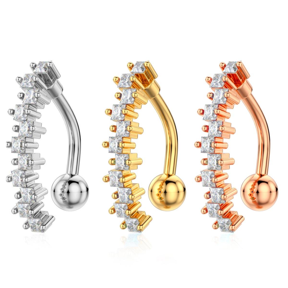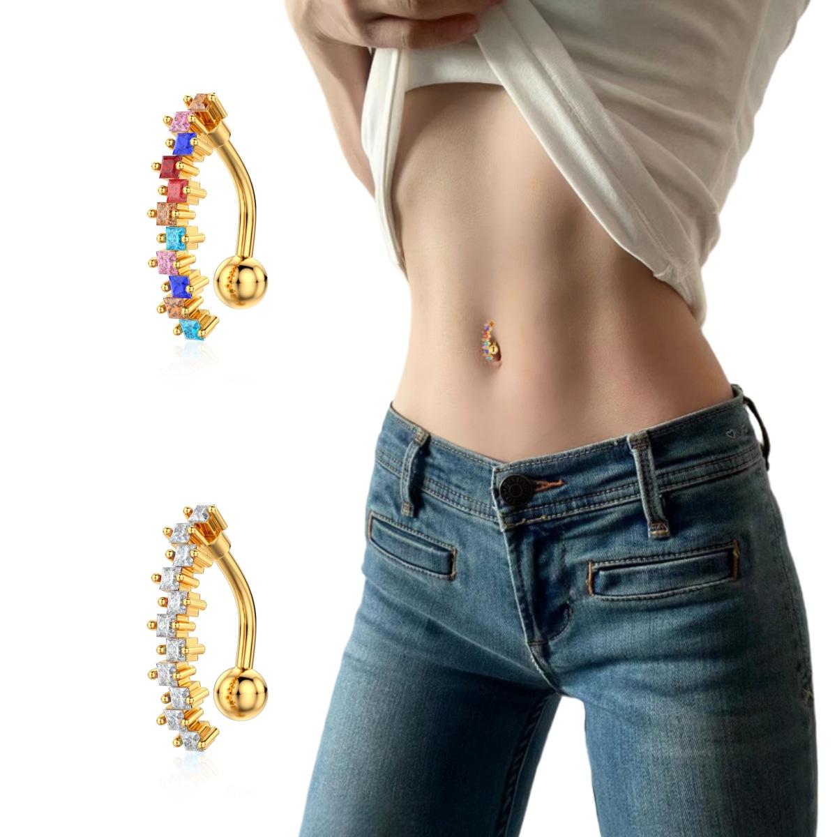 Piercing para el ombligo de acero inoxidable con incrustaciones de cobre y circonitas, joyería para el ombligo, sexy, para Europa y Estados Unidos, venta al por mayor