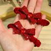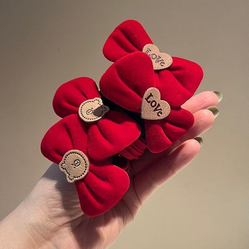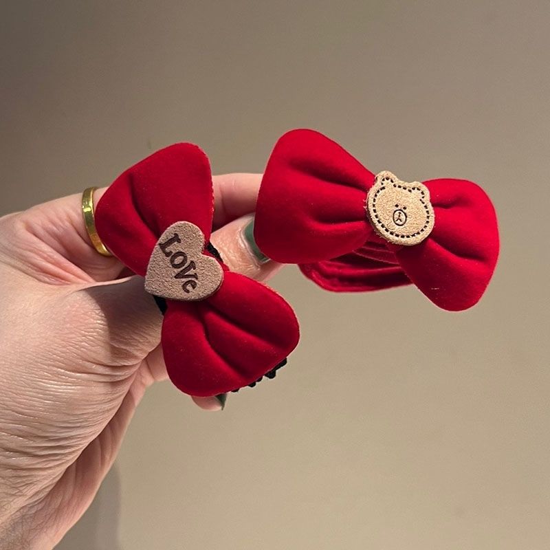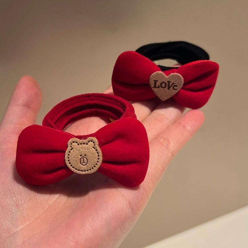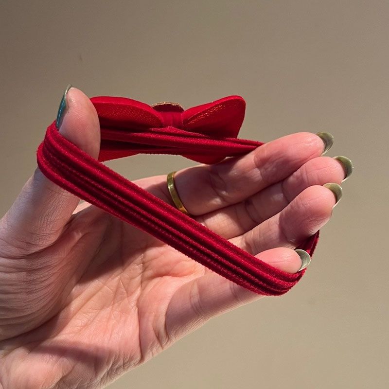 Diadema de Lazo de Terciopelo Rojo Vino de Año Nuevo con Banda Elástica para el Cabello en la Parte Posterior de la Cabeza, Accesorio para el Cabello Festivo Rojo Atmosférico y Popular