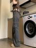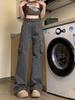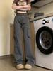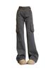 Pantalones Micro-La Casual Cares Grises para Mujer Otoño 2023 Nuevo Estilo Americano Cintura Alta Adelgazantes Multi-Bolsillo Acampanados