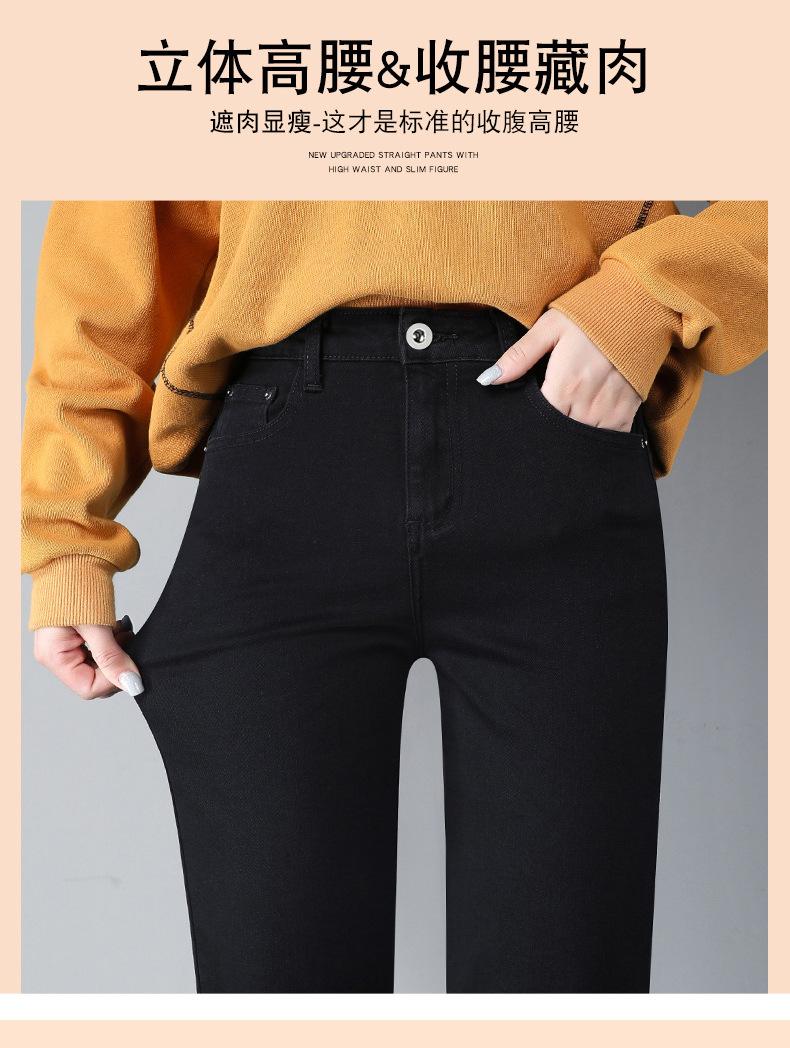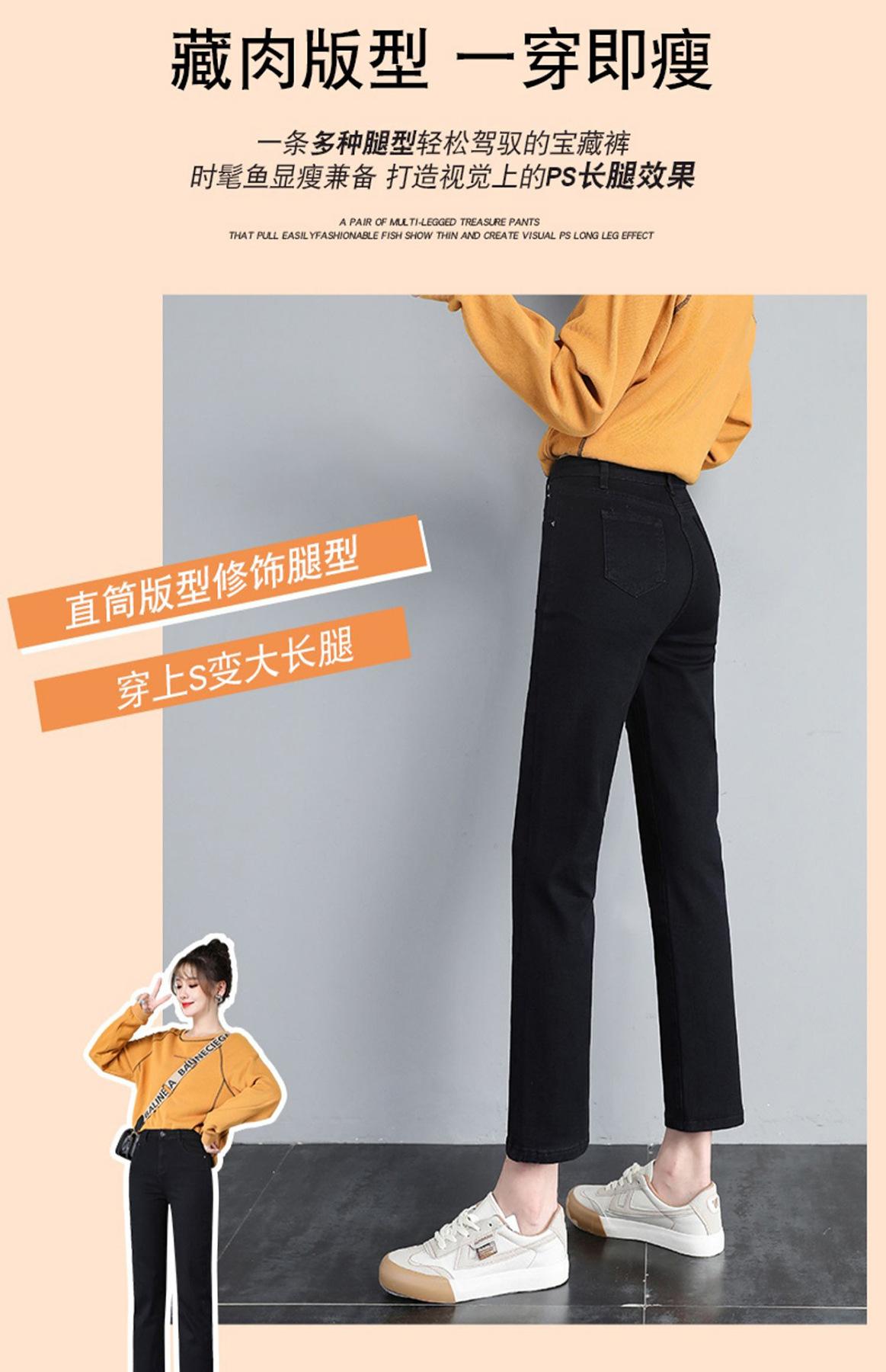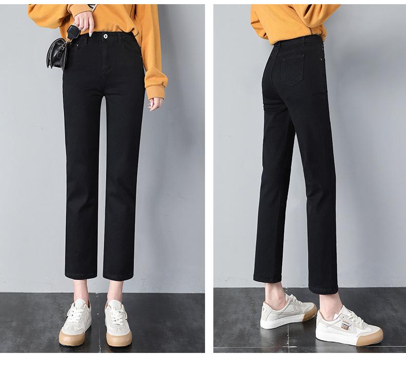 Pantalones vaqueros negros de cintura alta para mujer, pantalones adelgazantes para mujer, nuevos pantalones cortos rectos de tubo para primavera para mujer