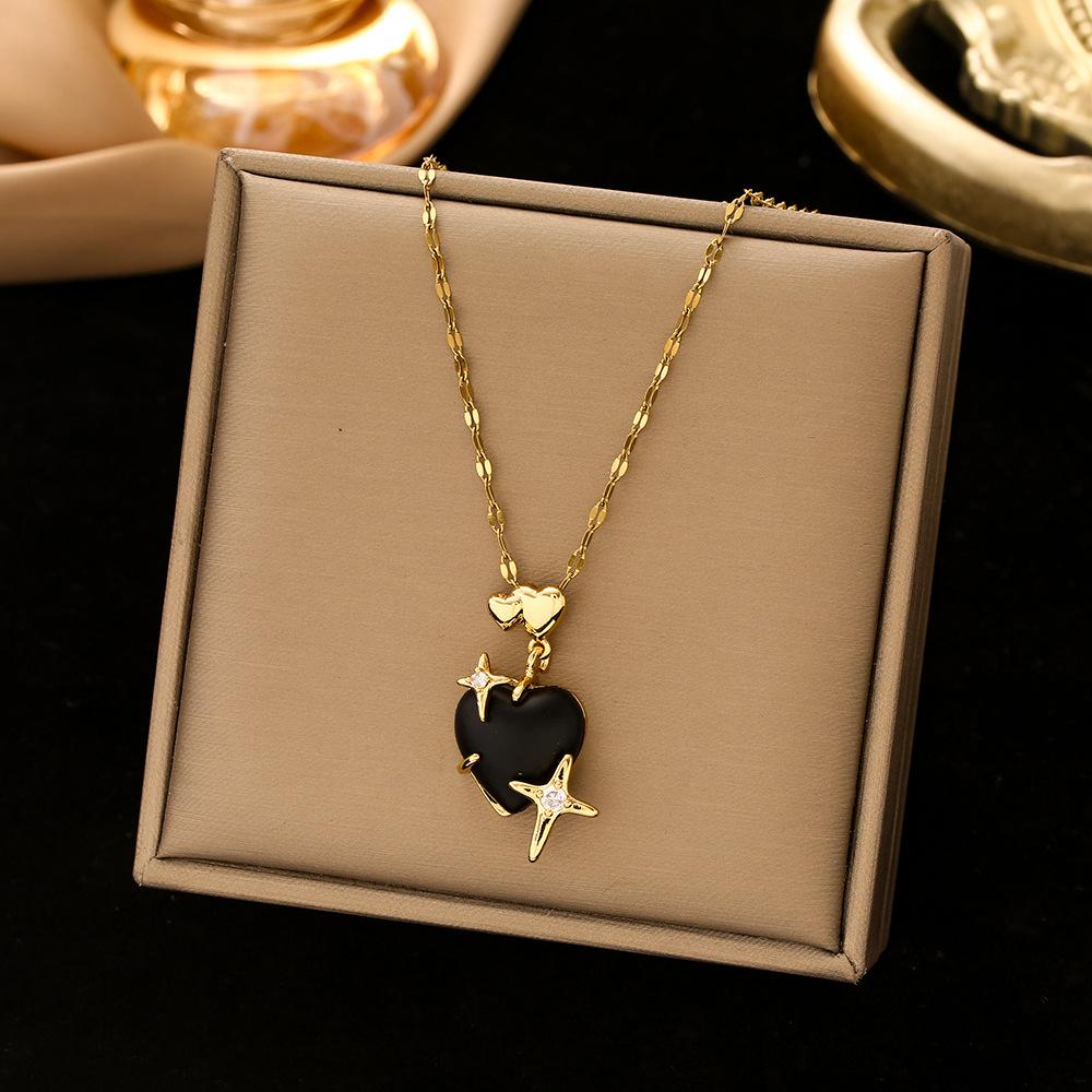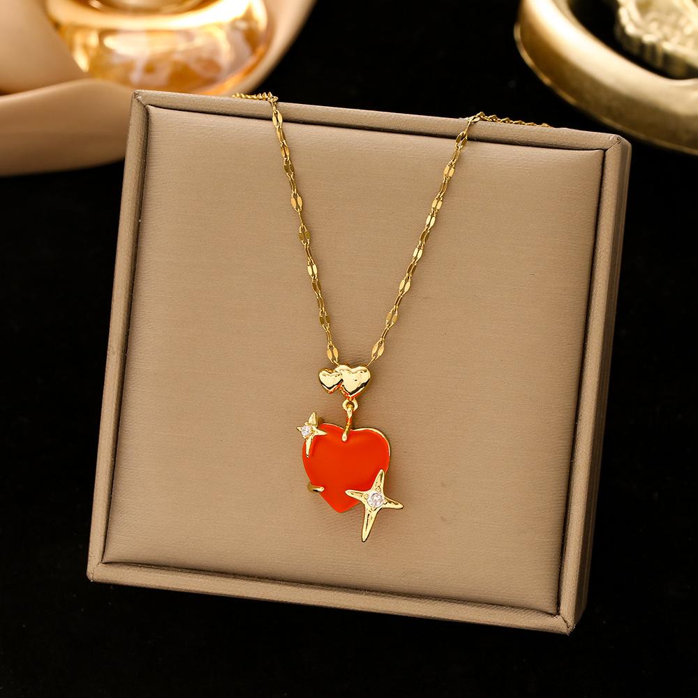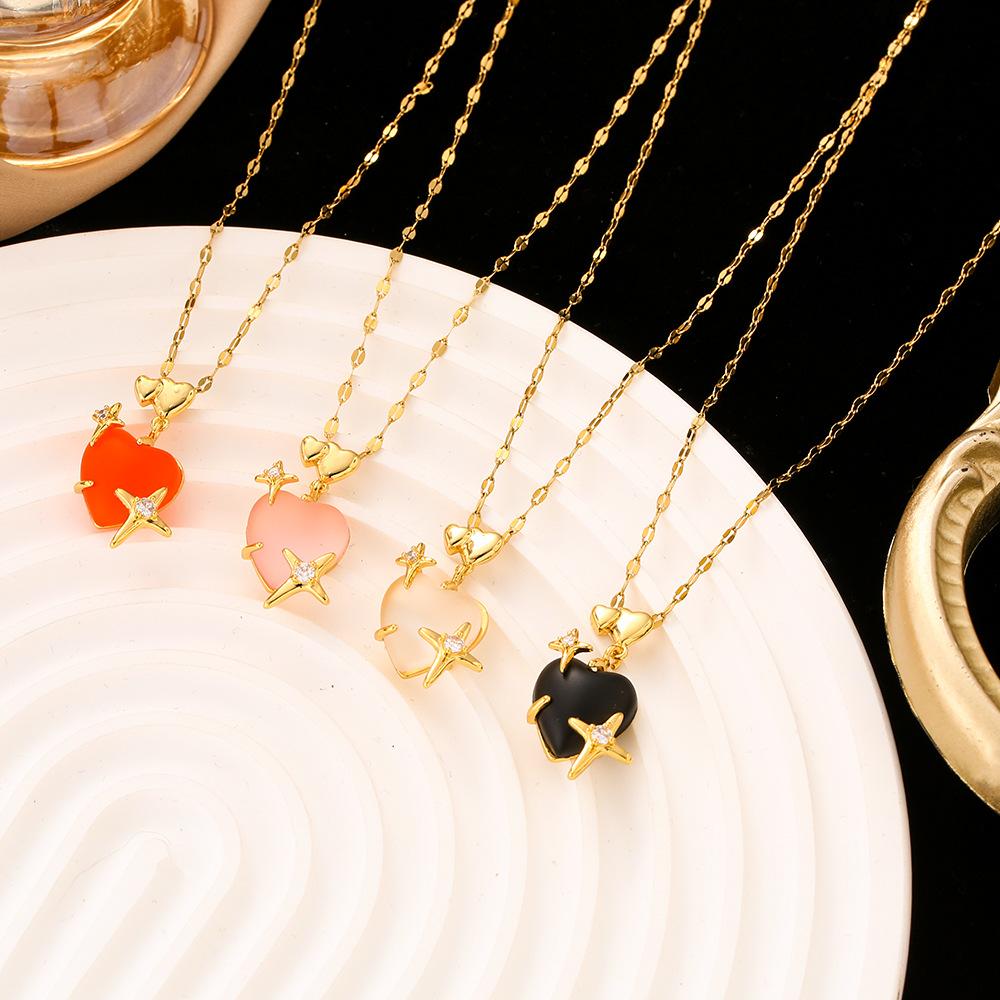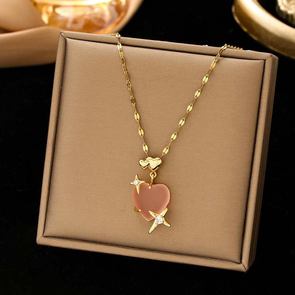 304 peach heart hip hop necklace-gold Black, 304 peach heart hip hop necklace-Gold Pink, 304 peach heart hip h...