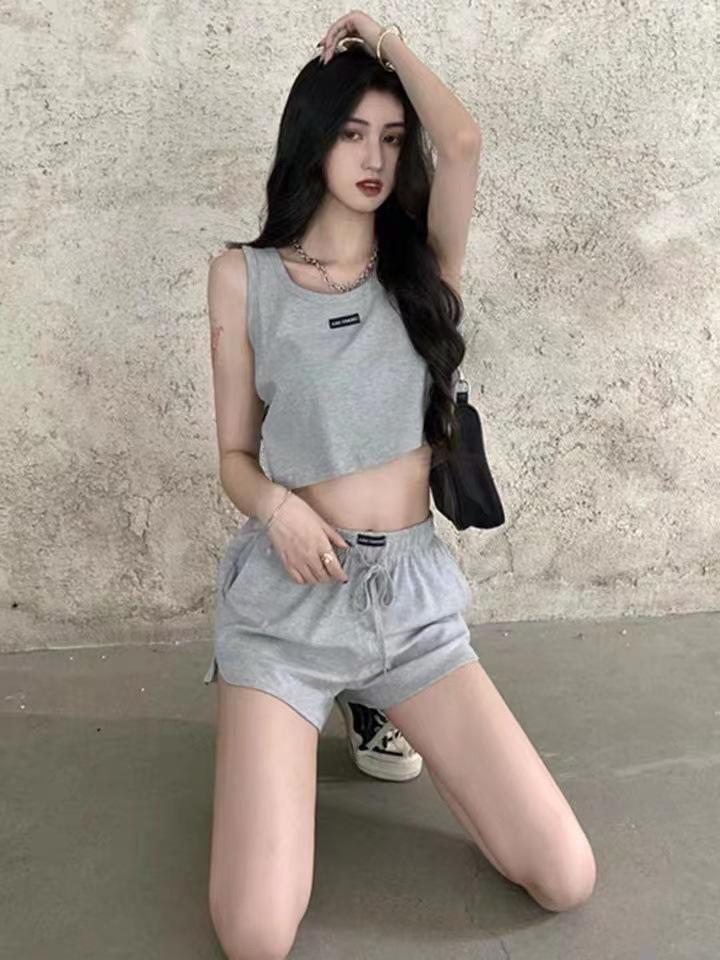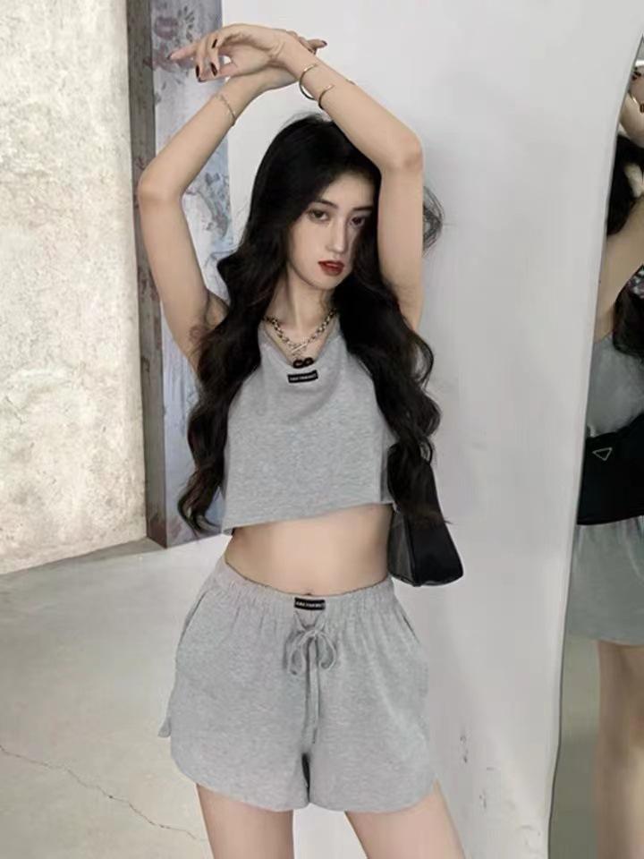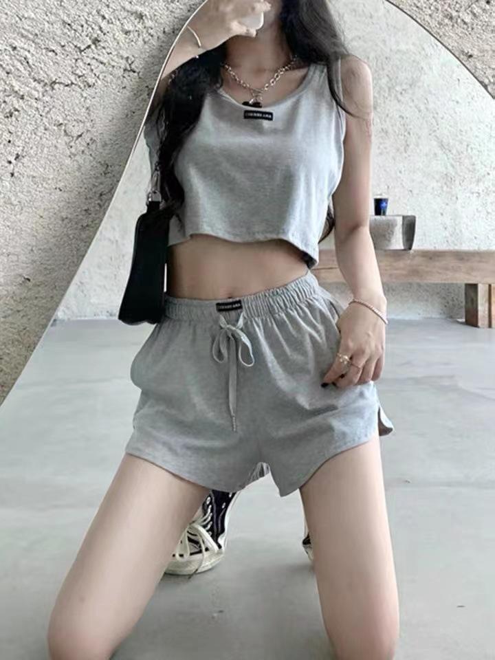 Traje informal de verano 2024 para mujer, ropa deportiva holgada y adelgazante, pantalones cortos, camisola universal, conjunto de dos piezas a la moda