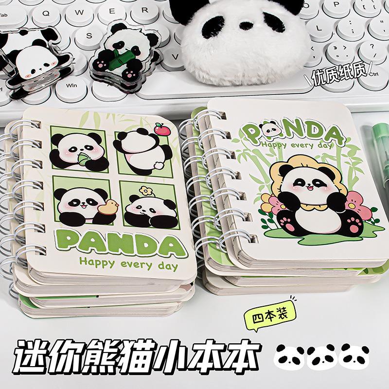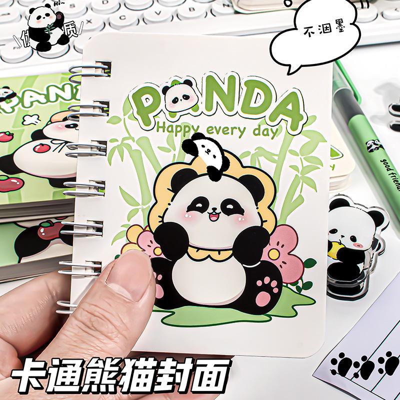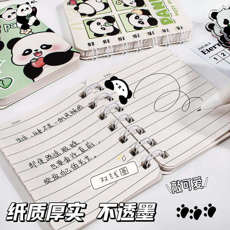 Libreta de Bobina de Dibujos Animados para Estudiantes de Primaria, Libreta de Panda Linda, Libreta de Pantalones con Bolsillo de Solapa, Diario Portátil de Lote de Aspecto Elevado