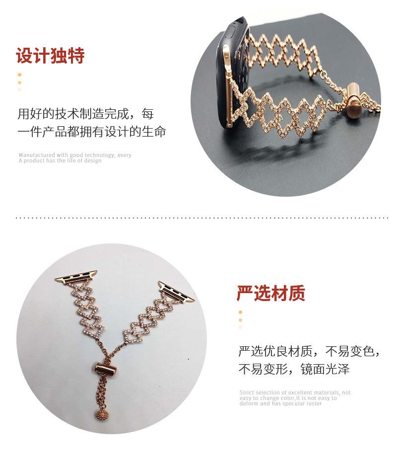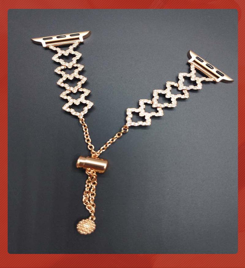 Adecuado para Correa de Reloj Inteligente Apple iWatch Diseño de Corazón de Amor con Diamantes Metal Oro Rosa Correa iwatch