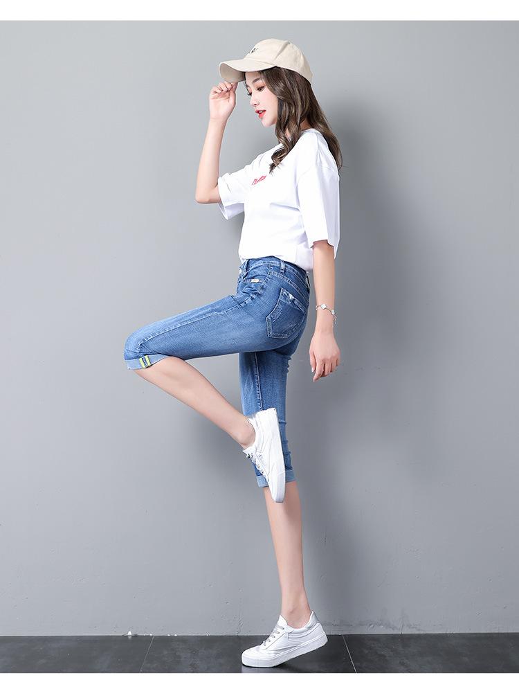 Pantalones vaqueros finos de verano para mujer, de cintura alta, elásticos, ajustados y adelgazantes.