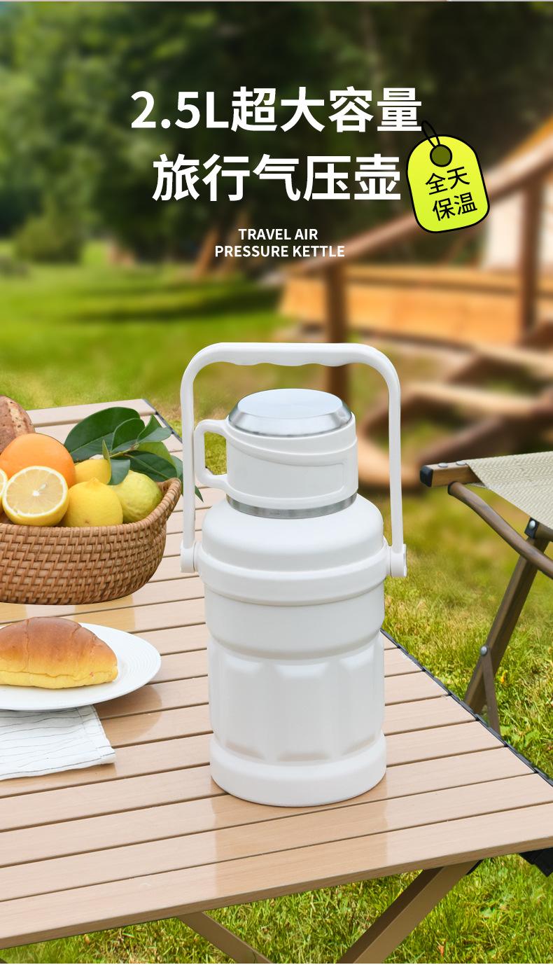 Termo portátil de gran capacidad para exteriores, nuevo estilo, hervidor de presión de aire para el hogar con asa.