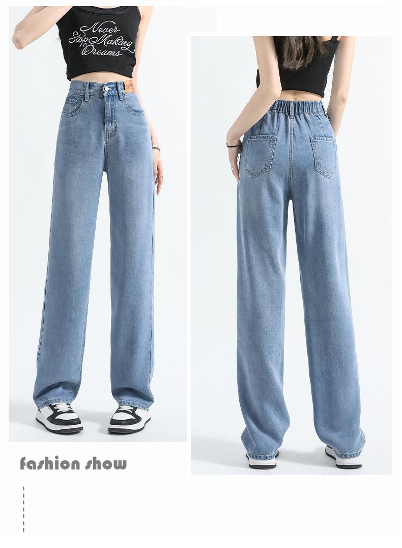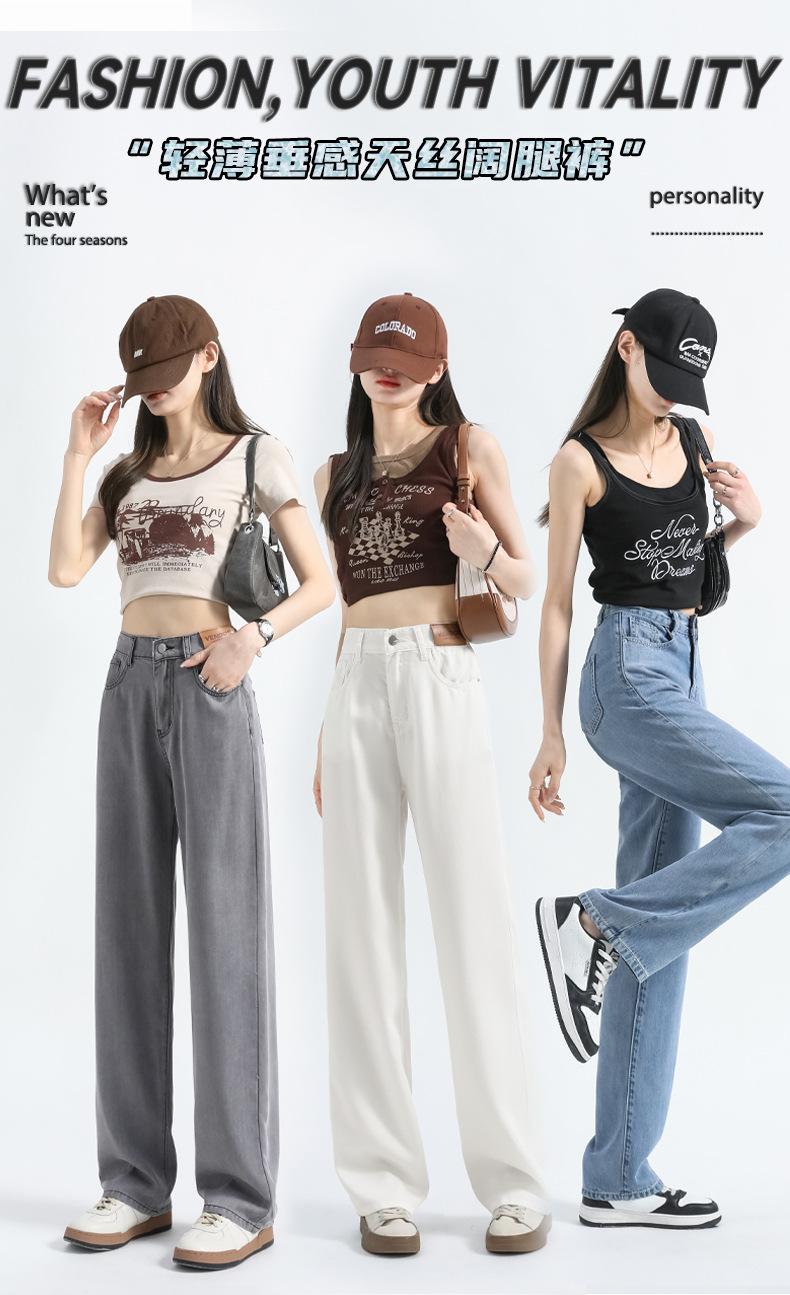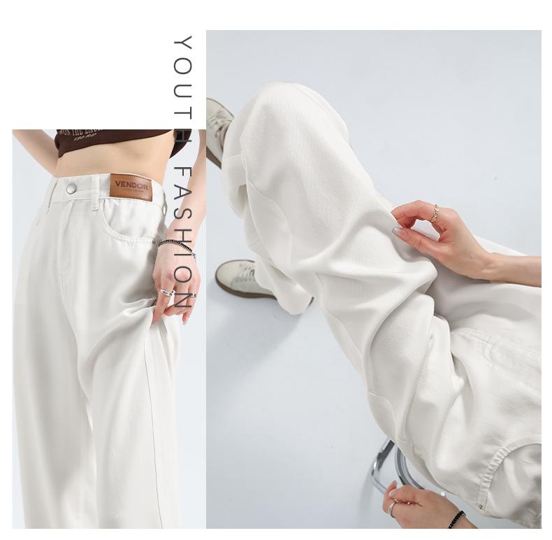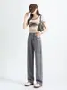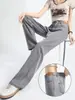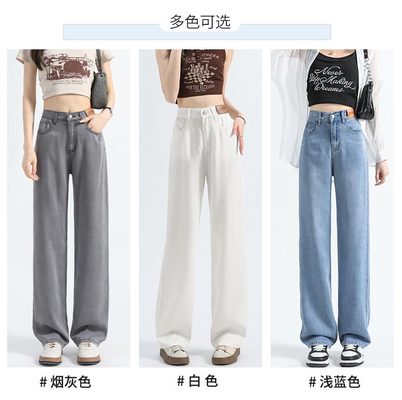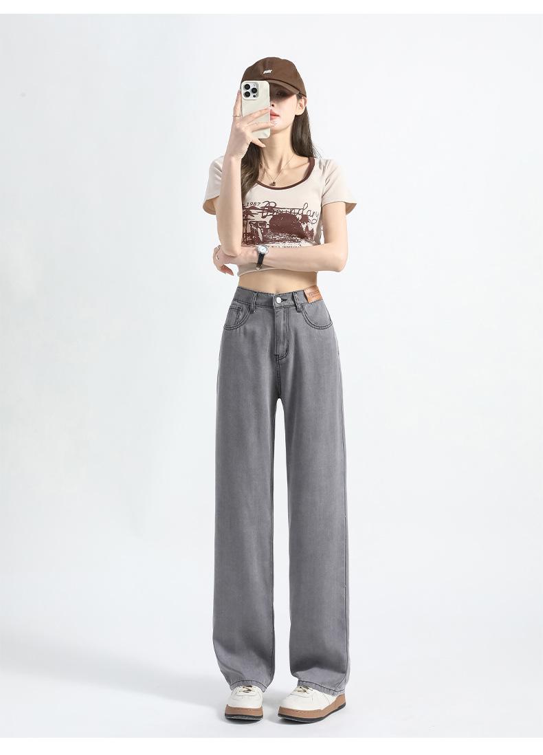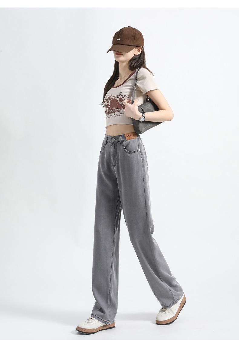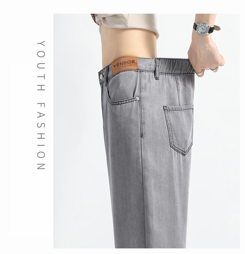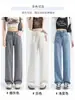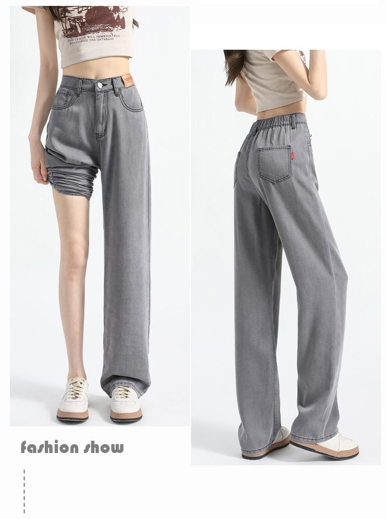 Pantalones vaqueros Tencel gris ahumado para mujer, de verano 2024, finos, de cintura alta, rectos, de seda helada, ligeros, con pernera ancha.