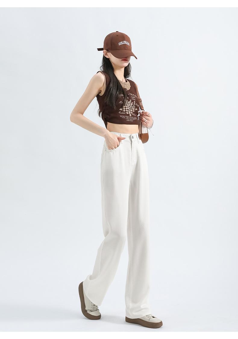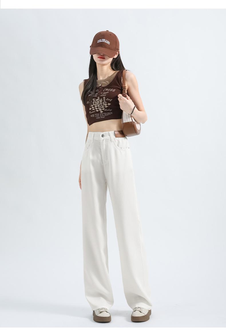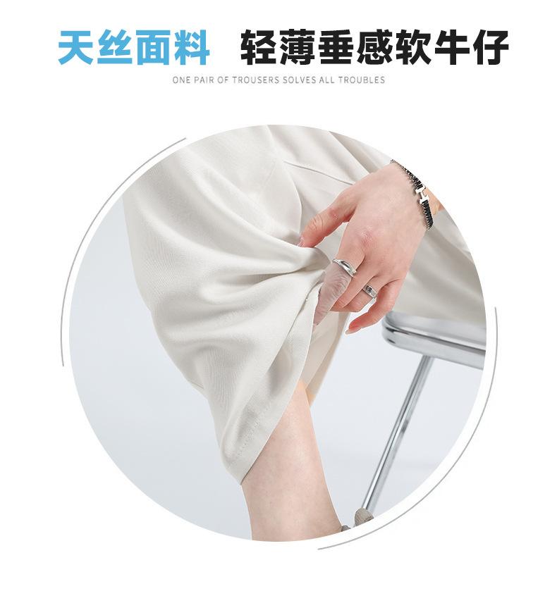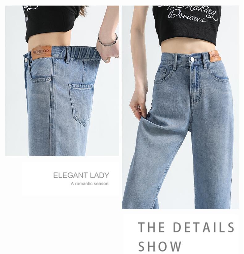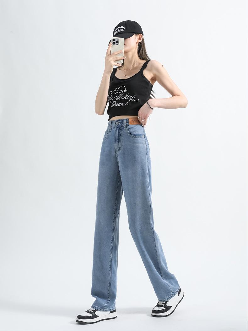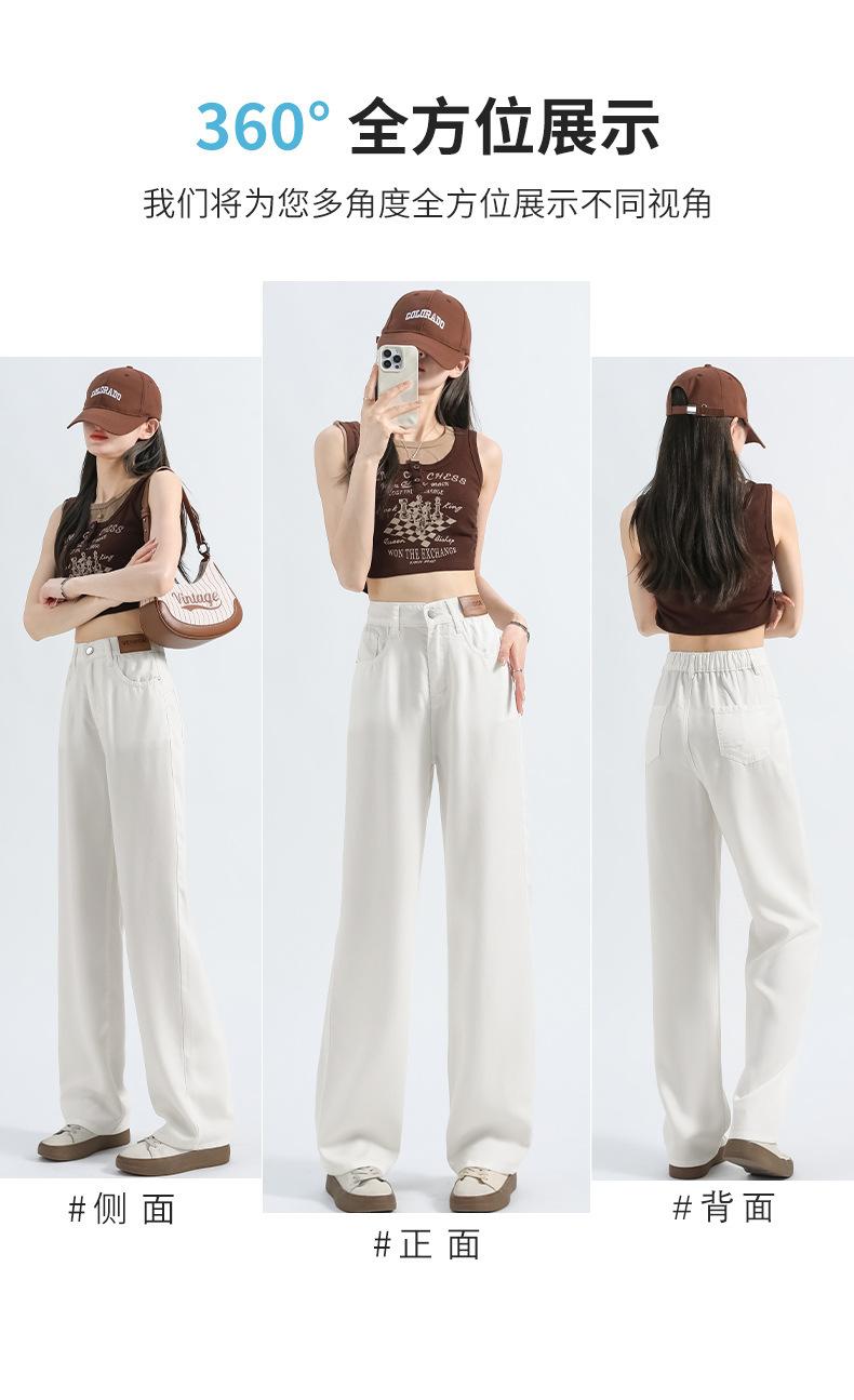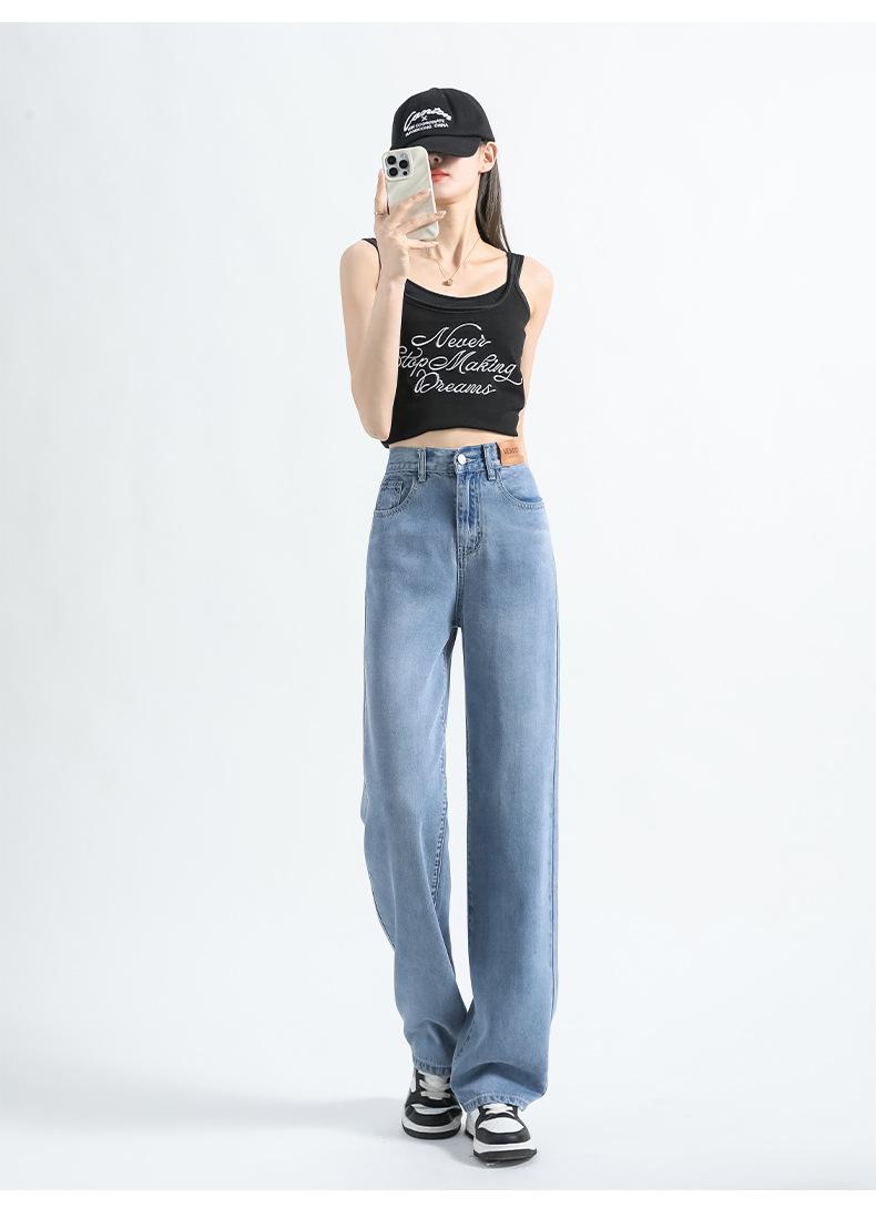 Pantalones vaqueros Tencel gris ahumado para mujer, de verano 2024, finos, de cintura alta, rectos, de seda helada, ligeros, con pernera ancha.