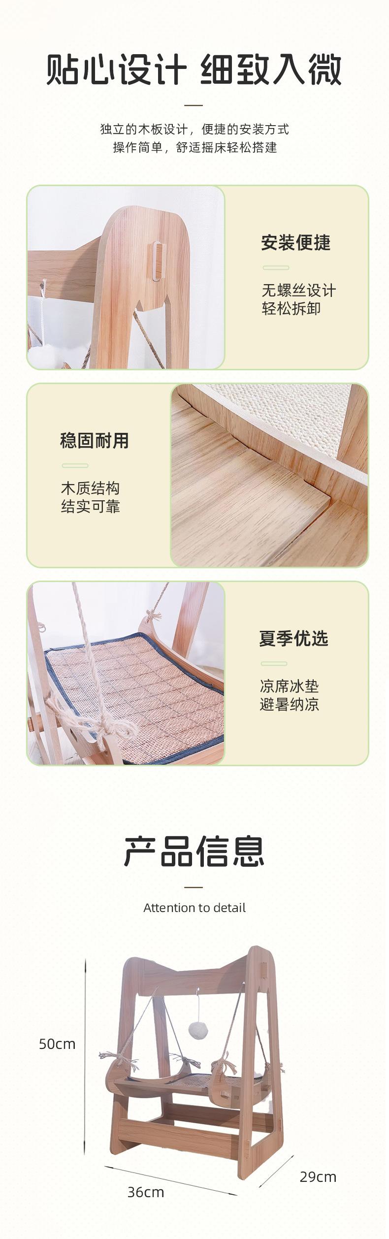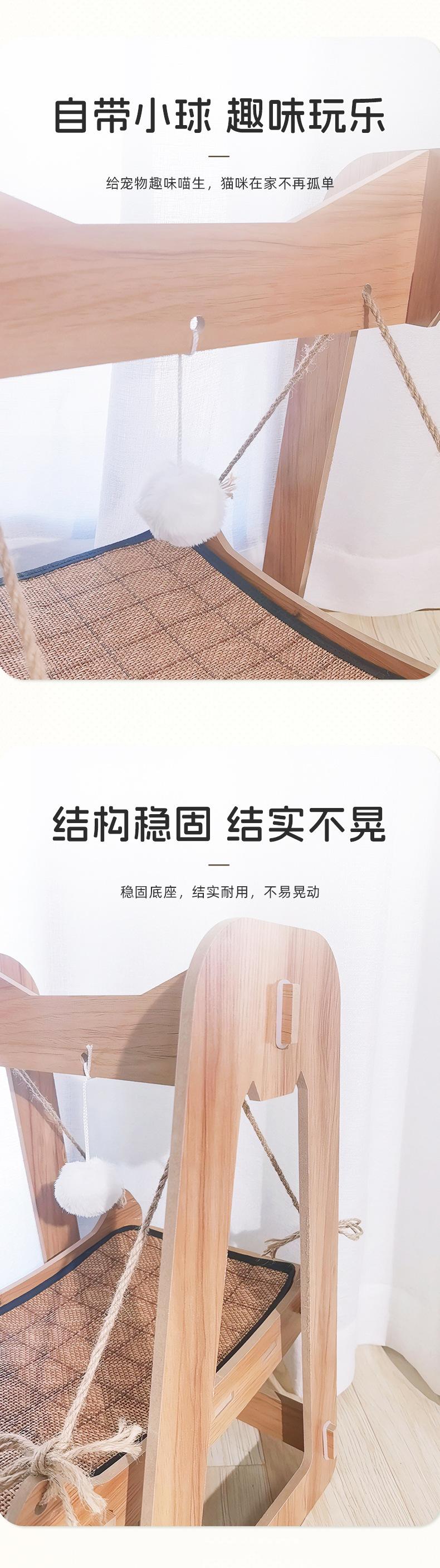 Columpio para gatos de madera maciza, nido universal para gatos de cuatro estaciones, hamaca para gatos, mecedora para mascotas, cesta colgante con adornos.