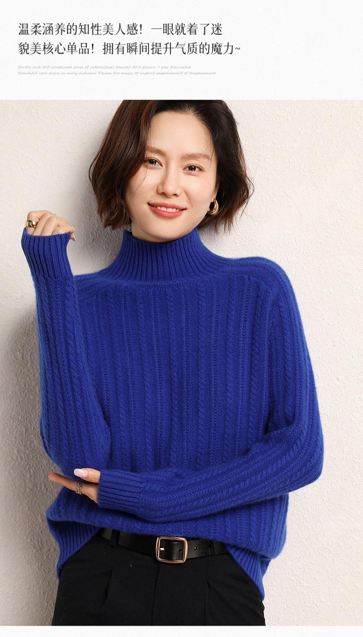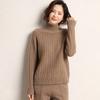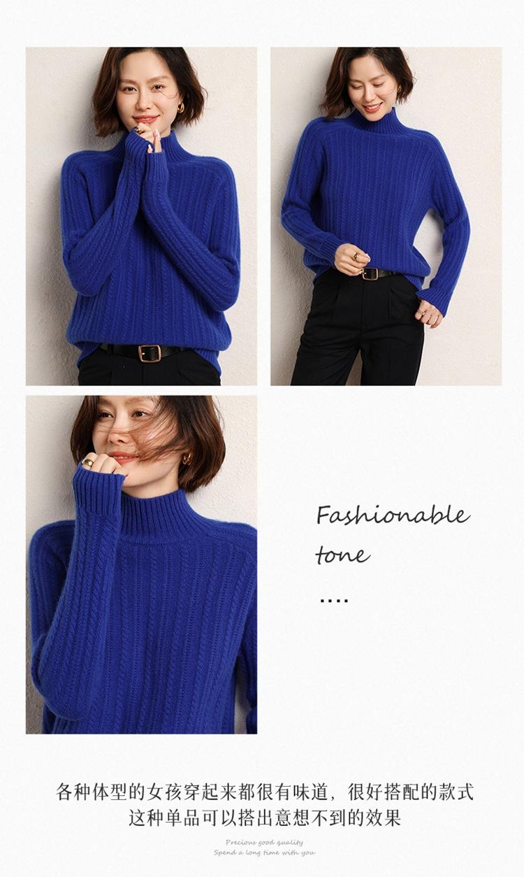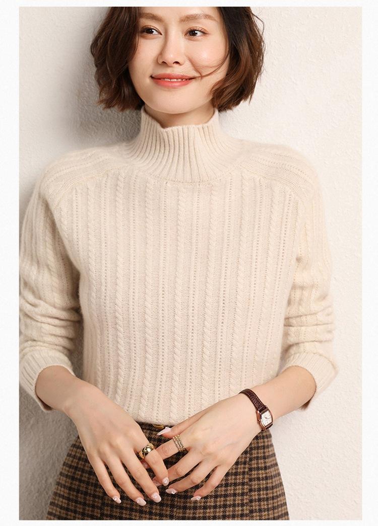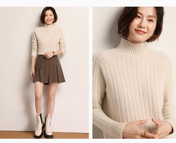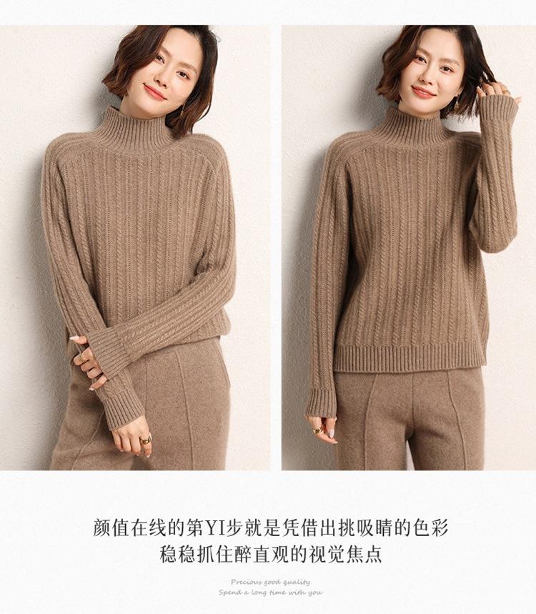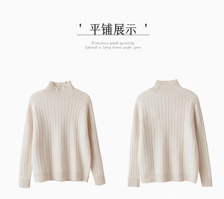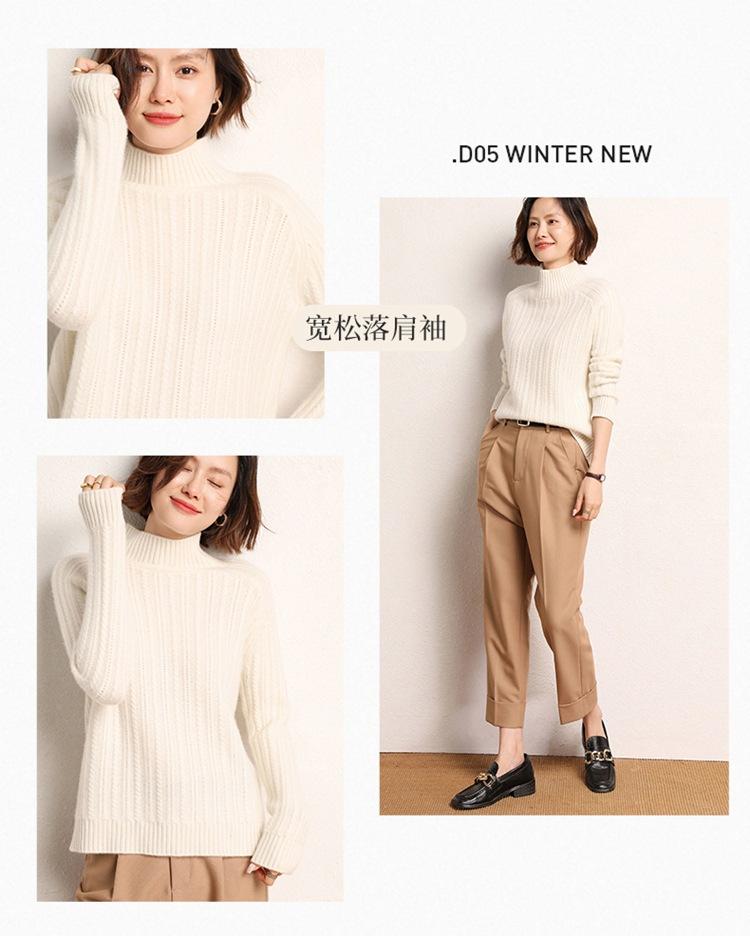 Otoño e invierno, nueva camisa de punto de cachemira para mujer, cuello alto medio, color sólido, cachemira, suéter suelto adelgazante, ropa interior