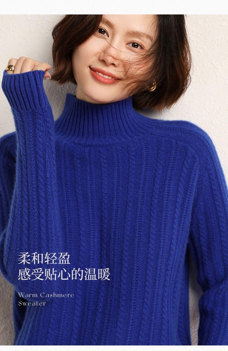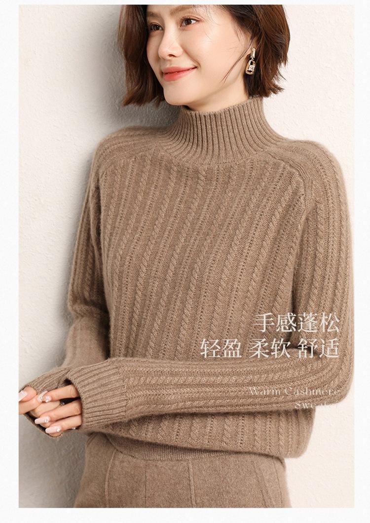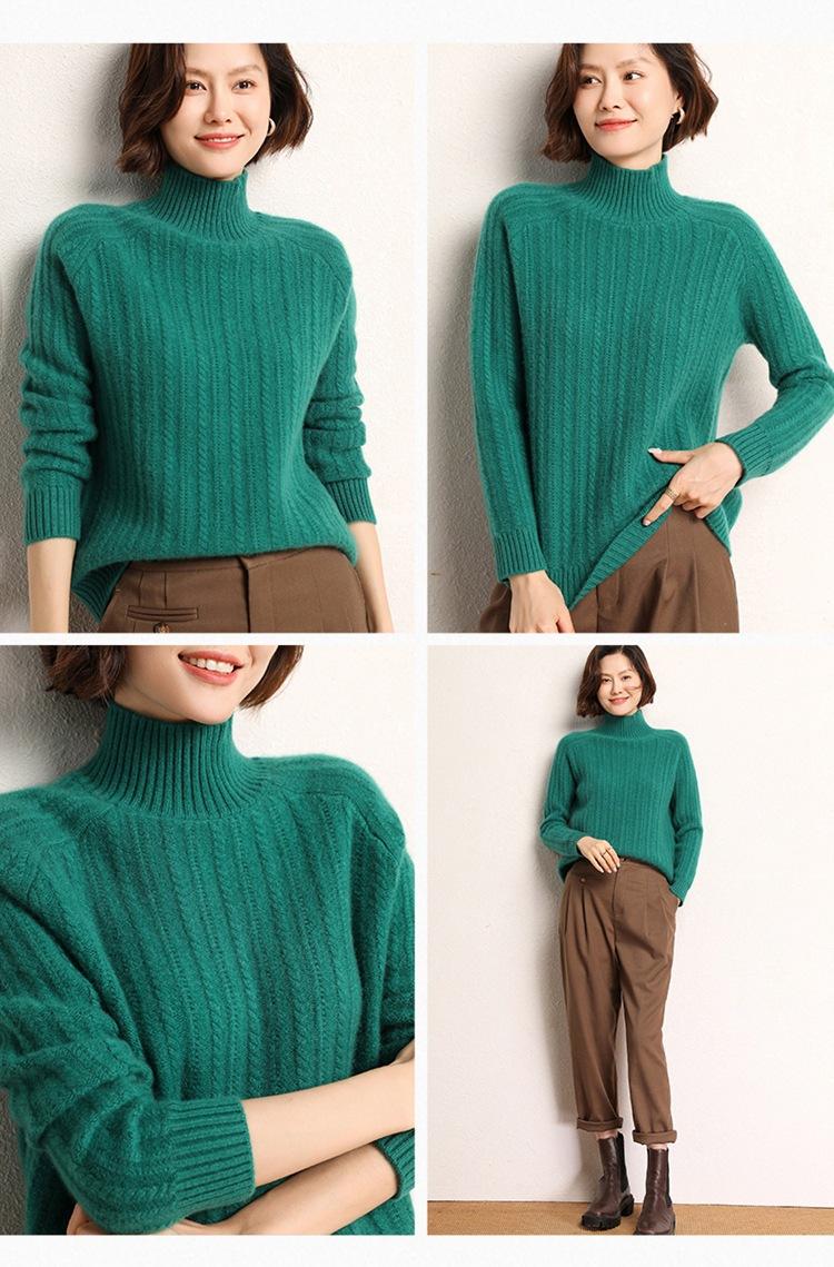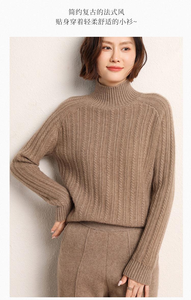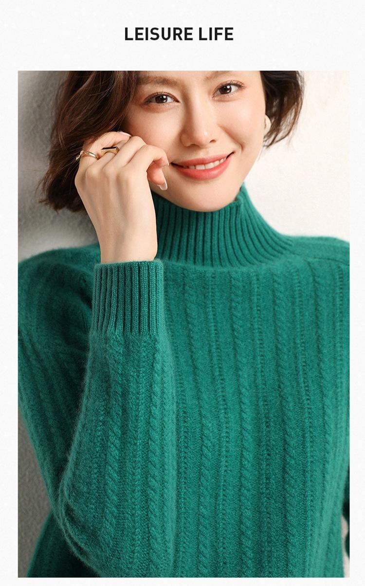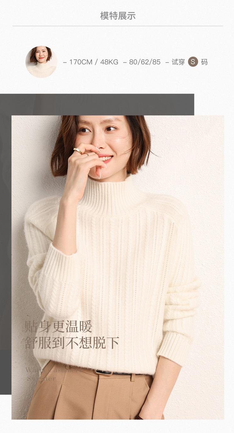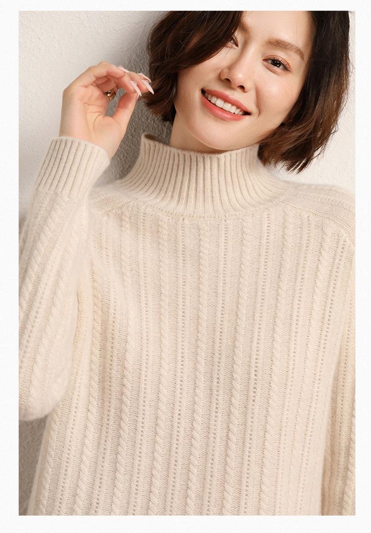 Otoño e invierno, nueva camisa de punto de cachemira para mujer, cuello alto medio, color sólido, cachemira, suéter suelto adelgazante, ropa interior