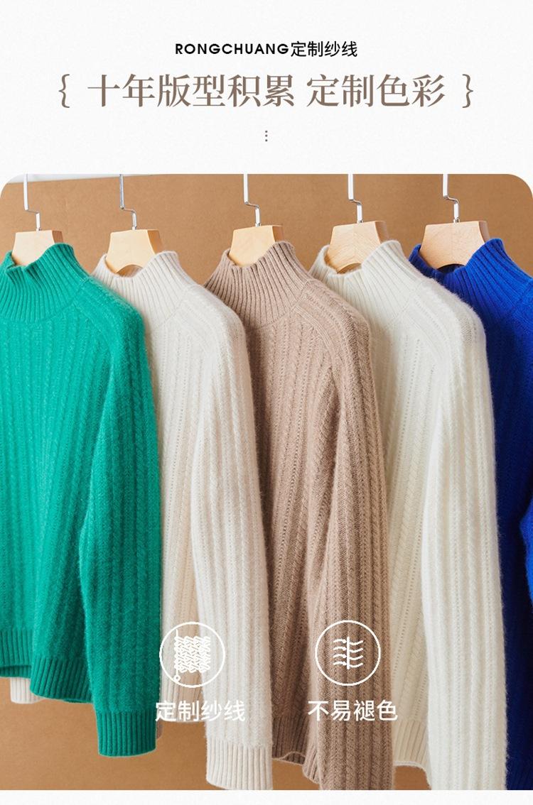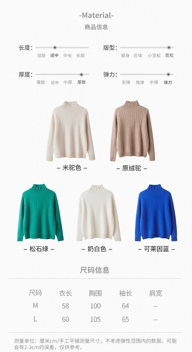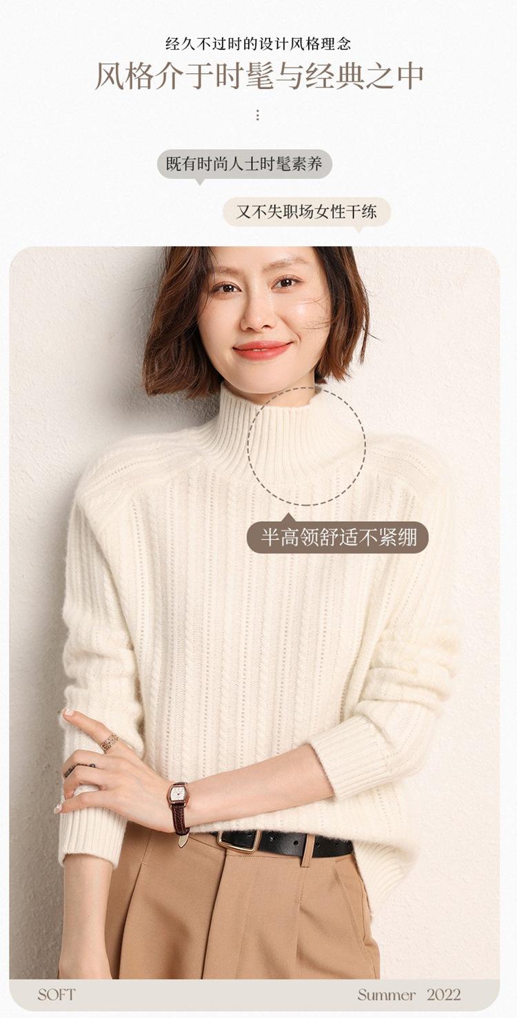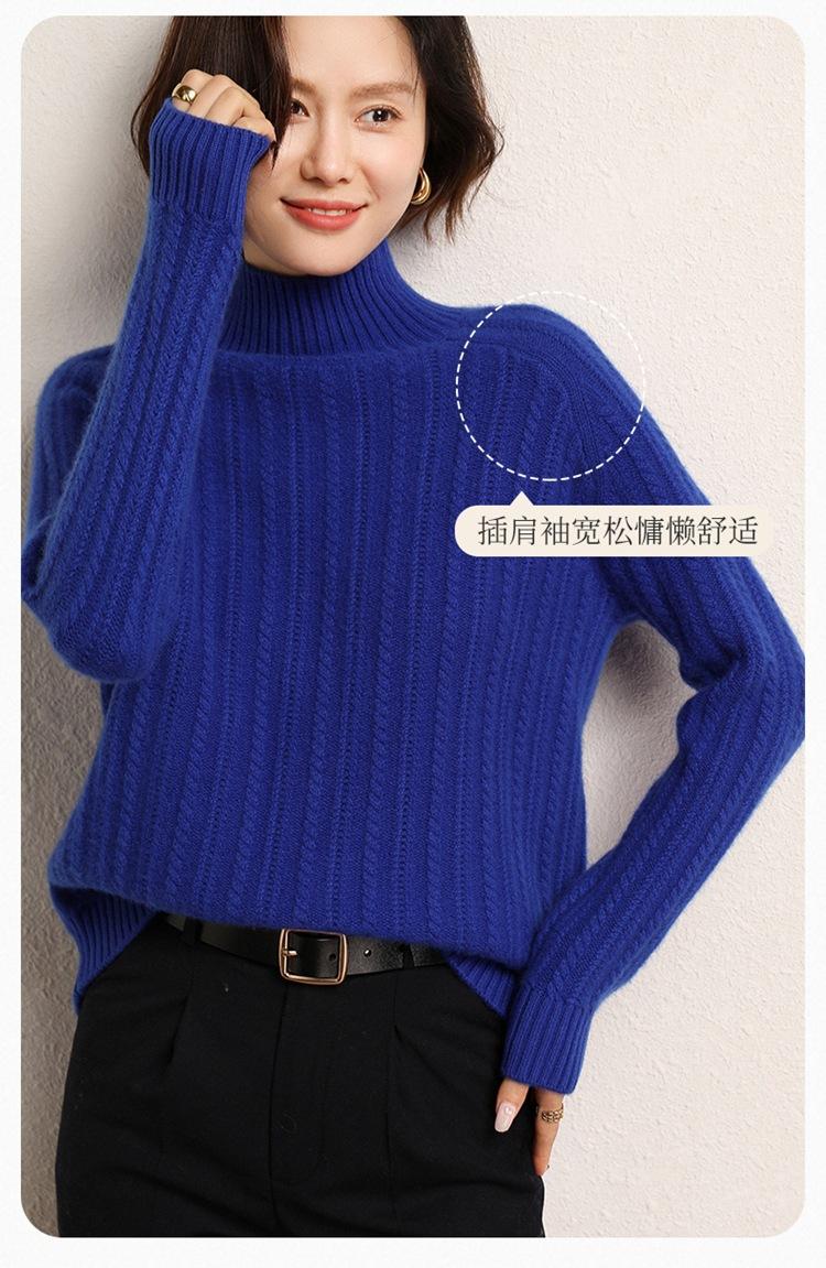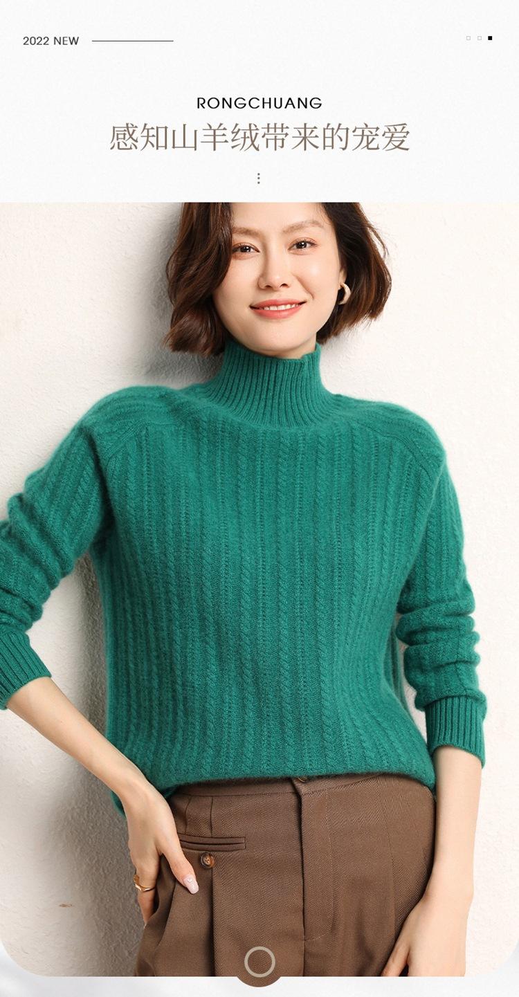 Otoño e invierno, nueva camisa de punto de cachemira para mujer, cuello alto medio, color sólido, cachemira, suéter suelto adelgazante, ropa interior