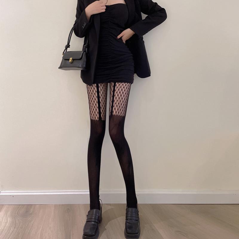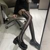 Medias de seda para mujer, medias de rejilla con rayas en forma de corazón, ropa exterior sexy, medias de seda negras huecas para primavera y verano.